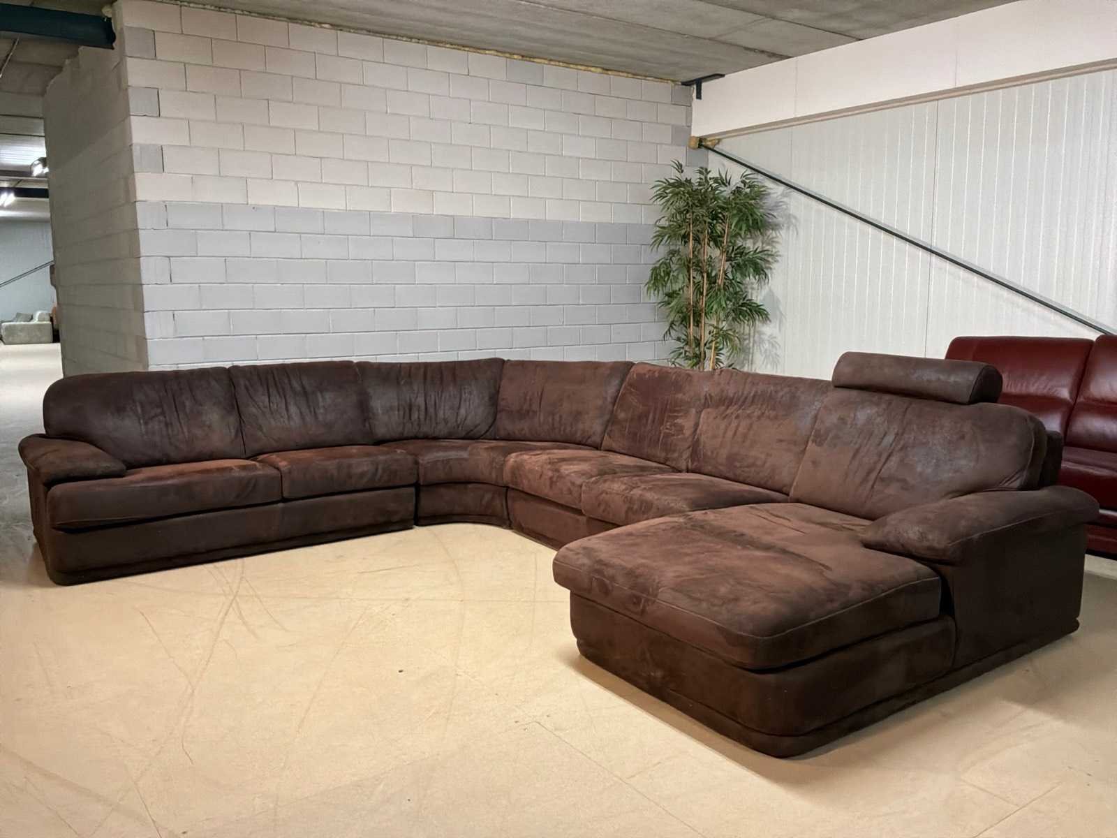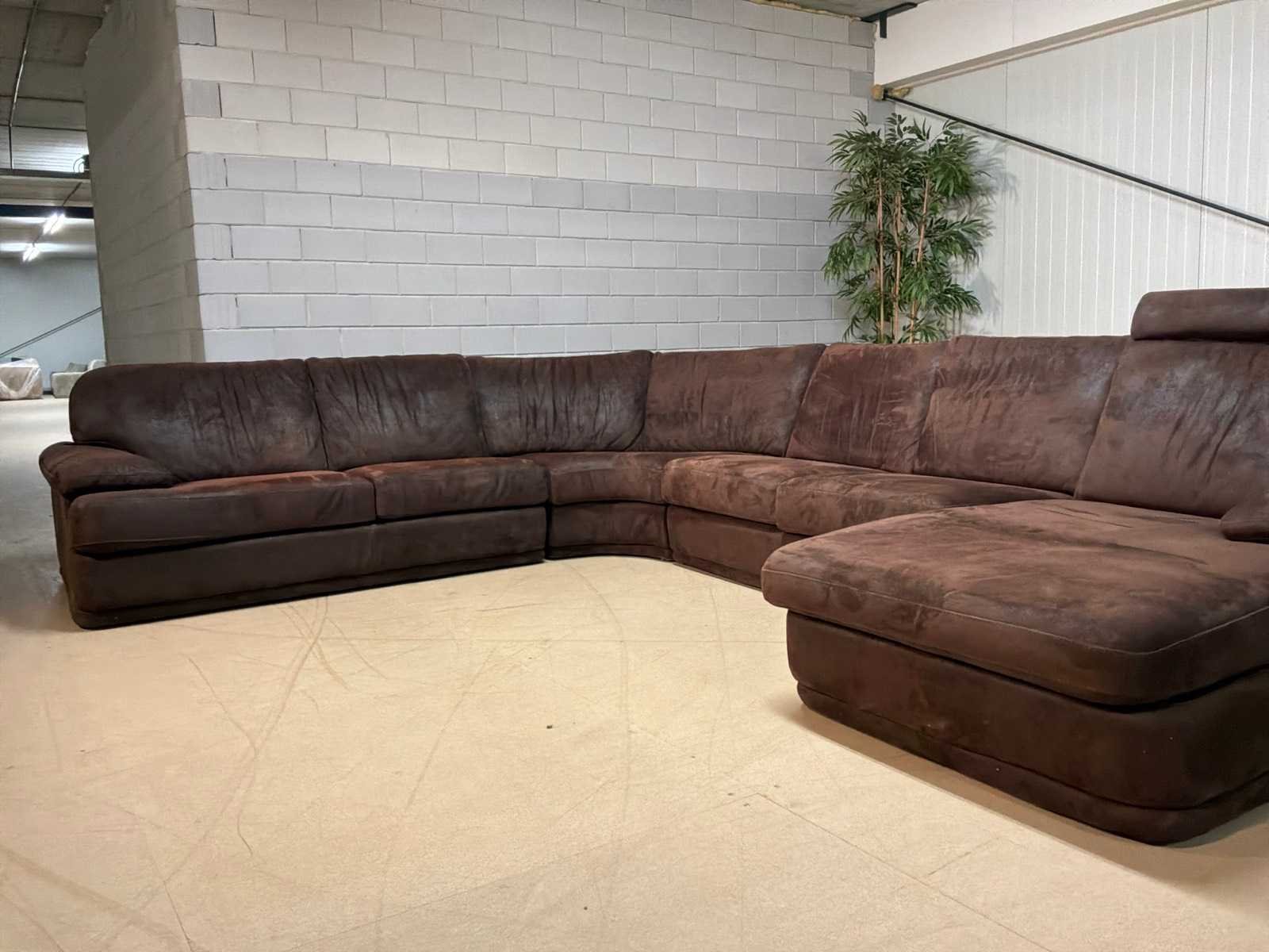Bankstel is 4-delig. Model: Winx Kleur: Bruin Lengte: 290cm Breedte: 360cm Hoogte: 73cm Zithoogte: 42cm Diepte: 55cm Materiaal: Geborsteld leer