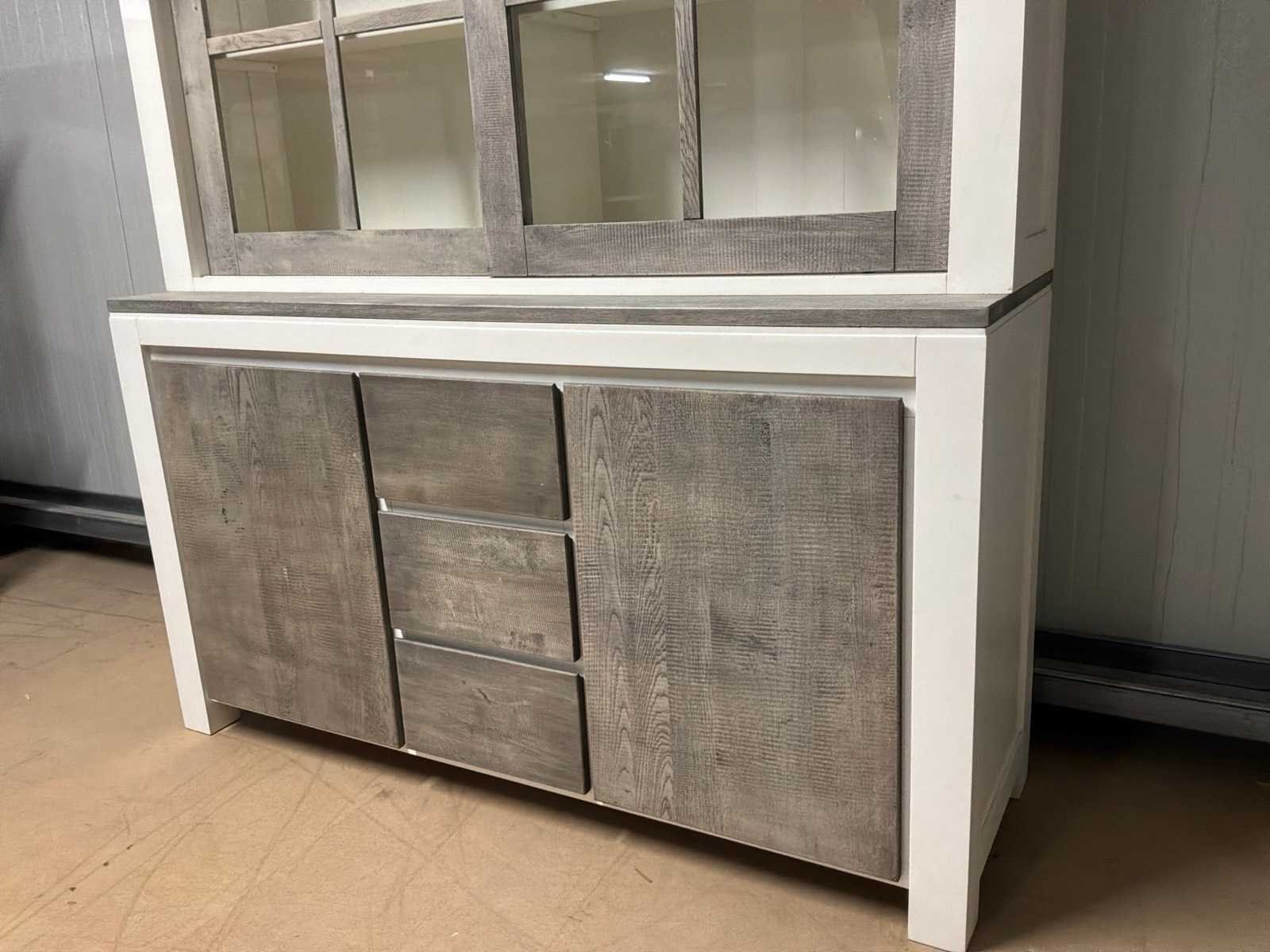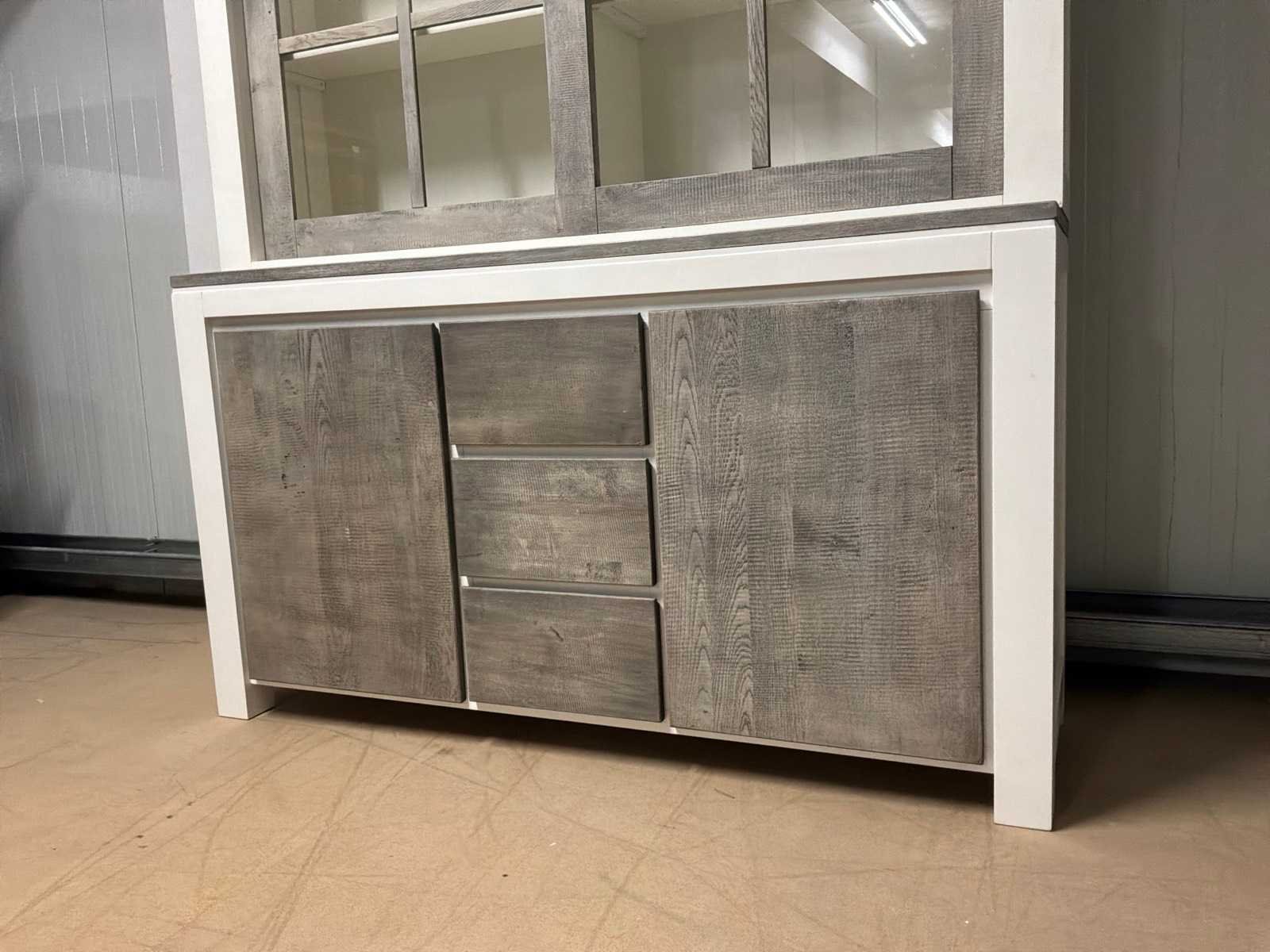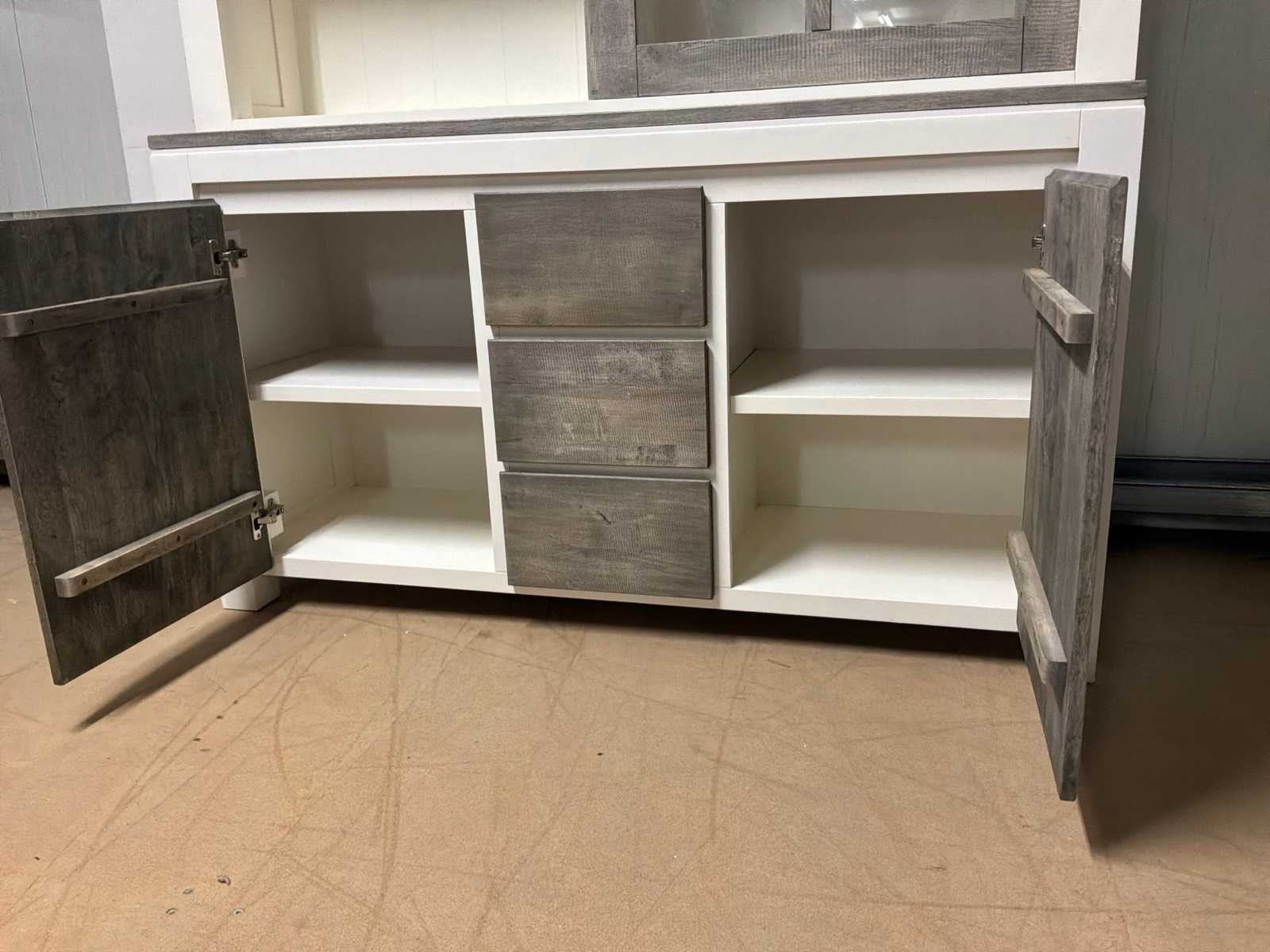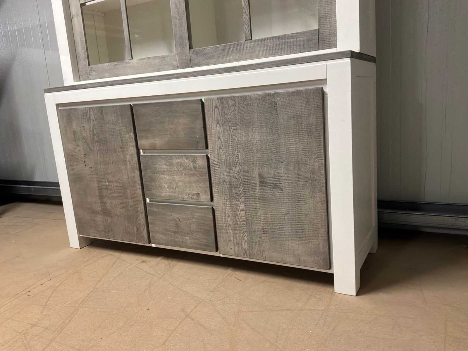 Buffetkast is 2-delig. Linkerschuifdeur dient nagekeken te worden. Deur schuift niet soepel. Model: Creta Lengte: 50cm Breedte: 160cm Hoogte: 219cm