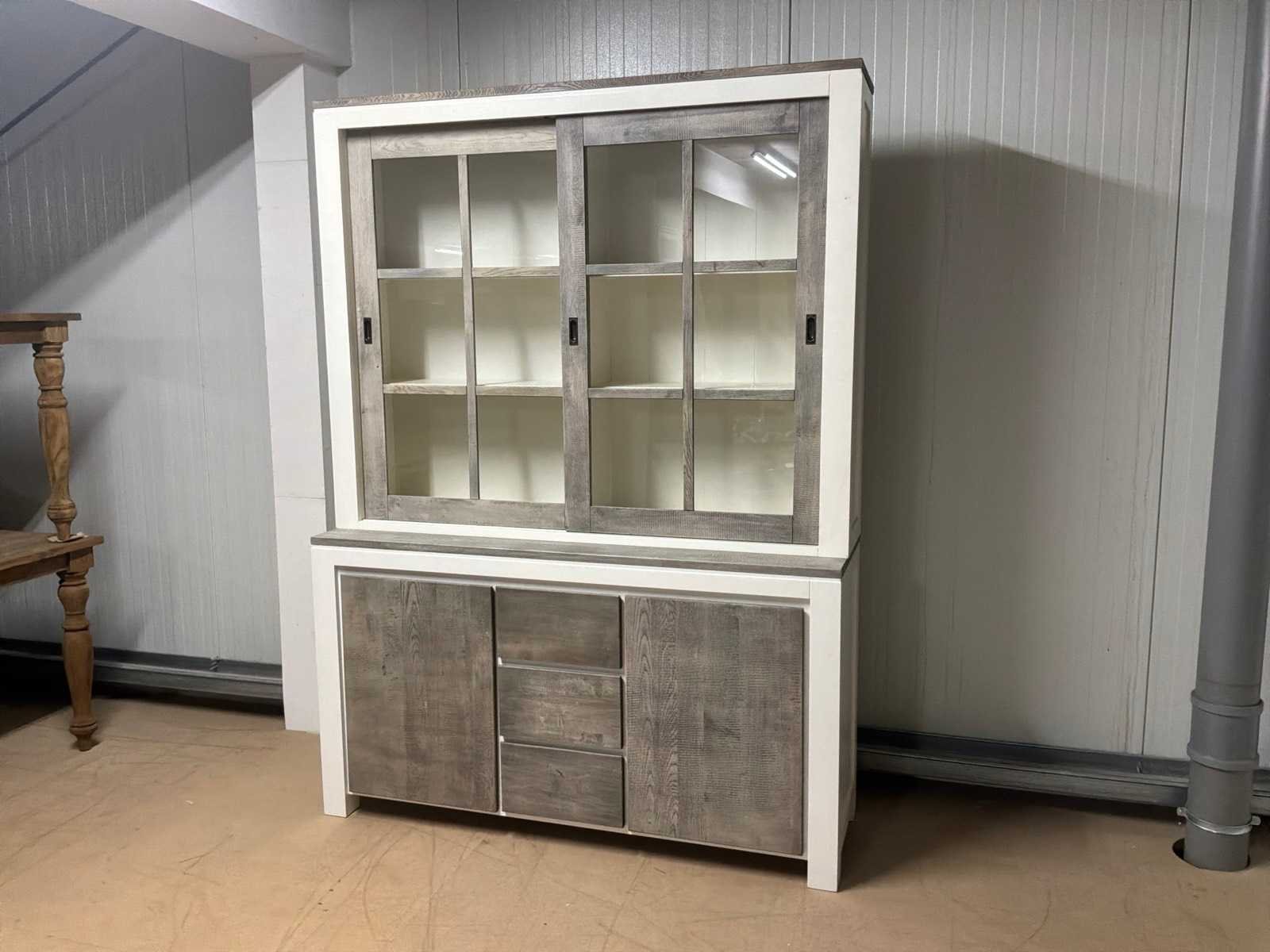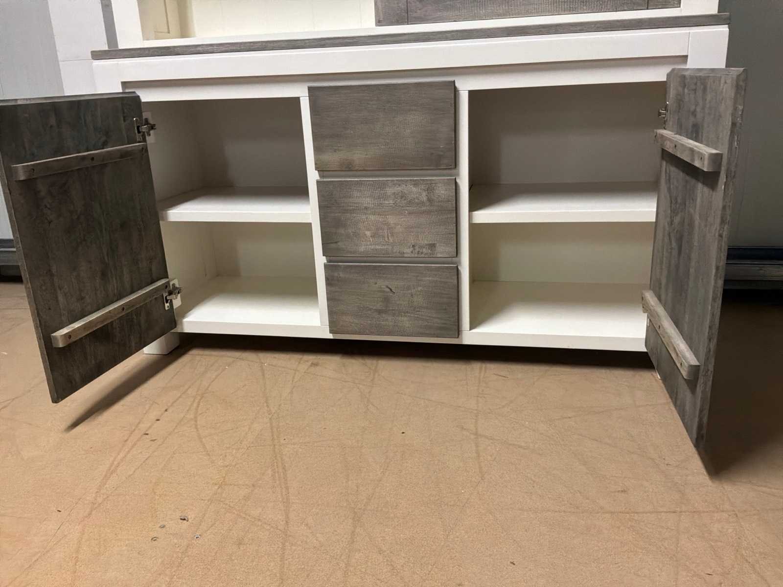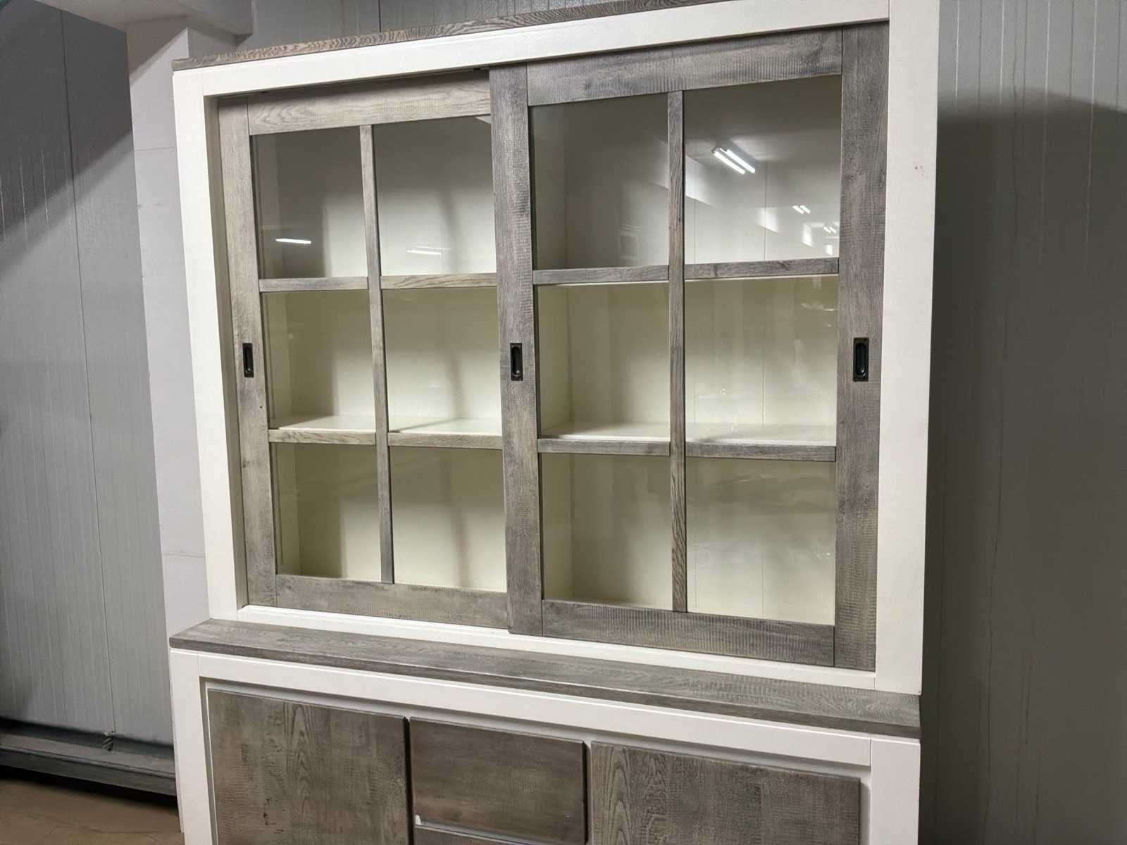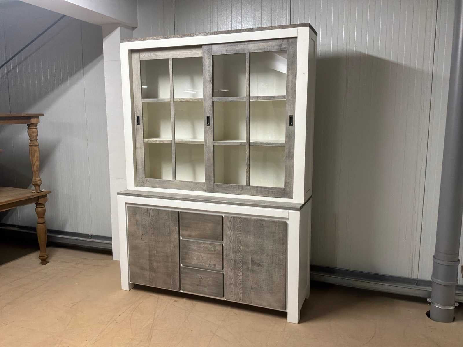 Buffetkast is 2-delig. Linkerschuifdeur dient nagekeken te worden. Deur schuift niet soepel. Model: Creta Lengte: 50cm Breedte: 160cm Hoogte: 219cm