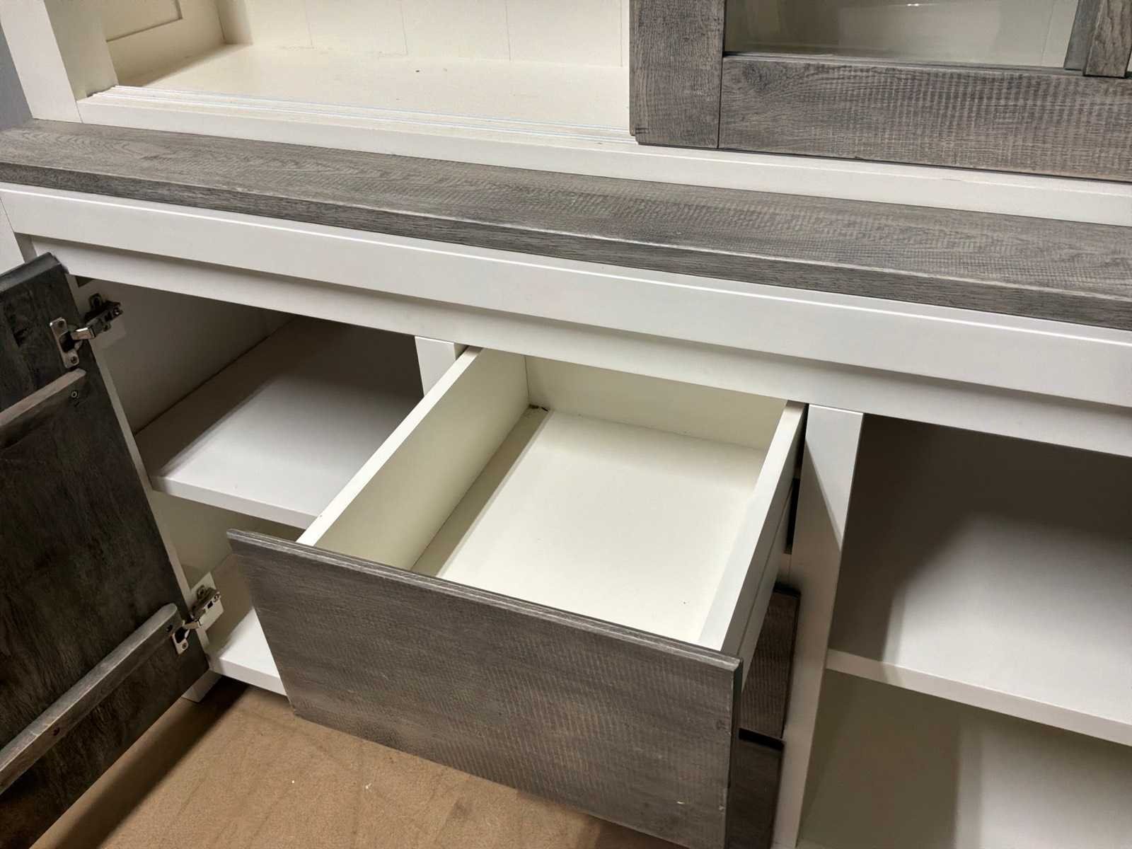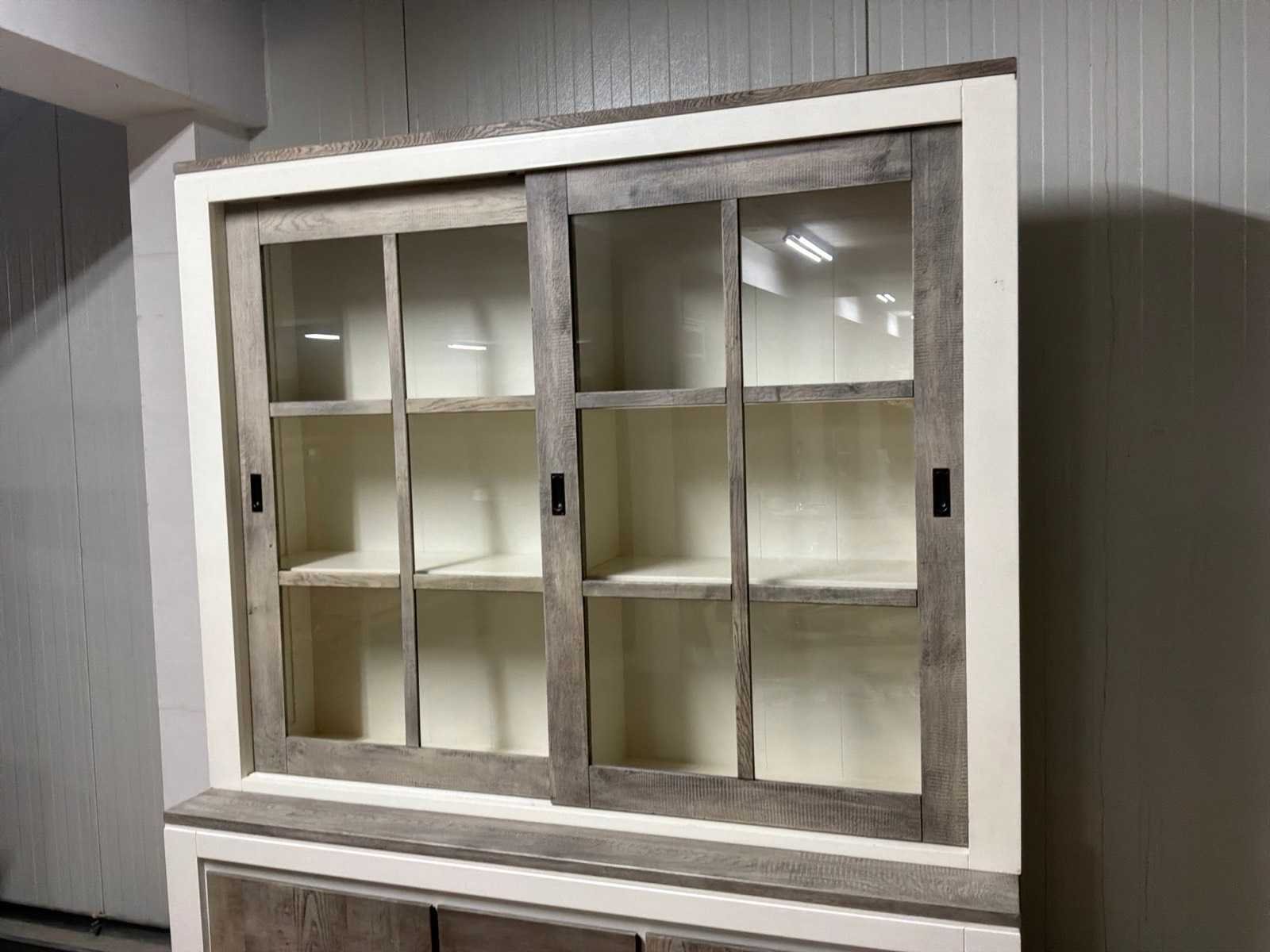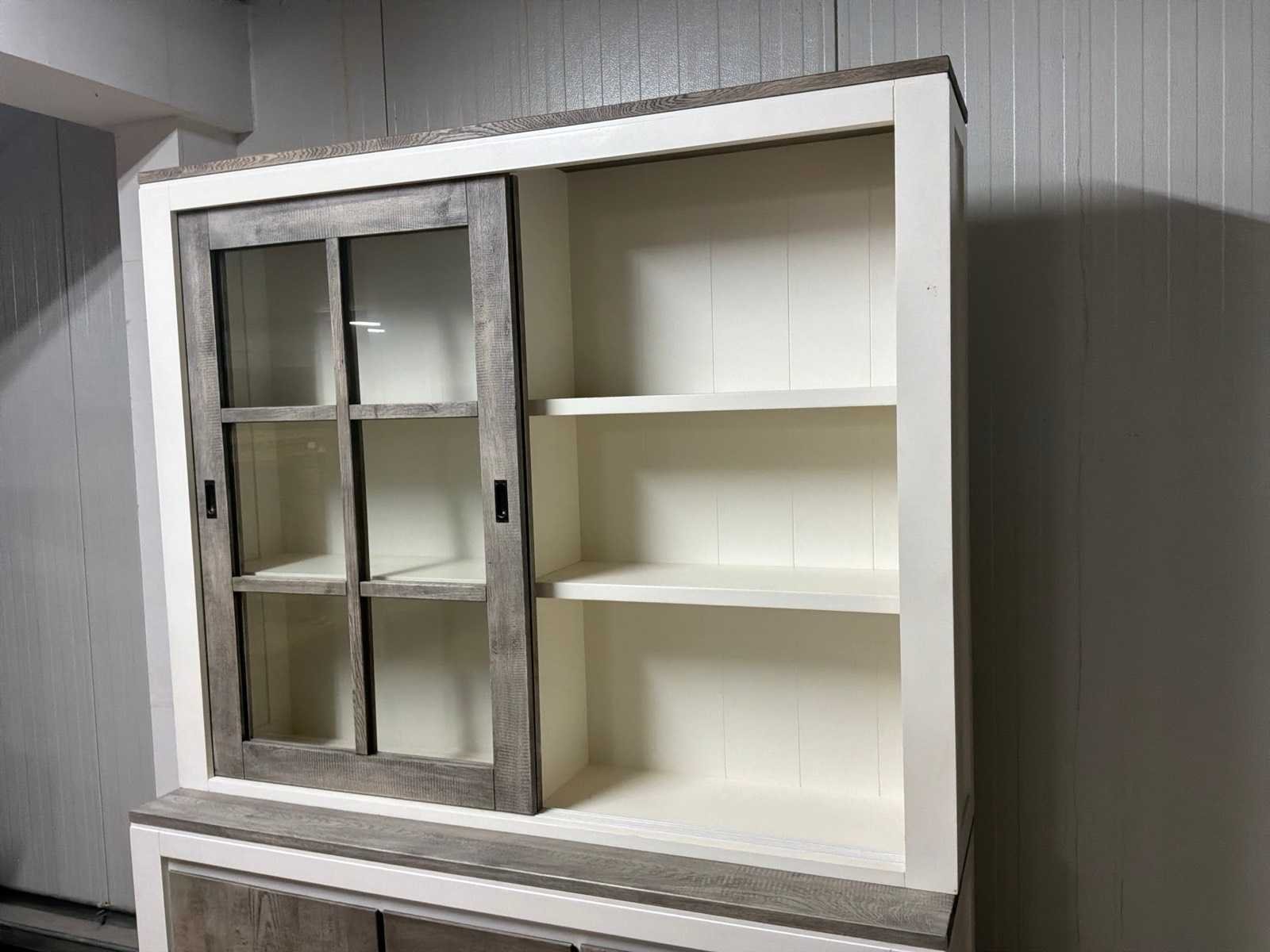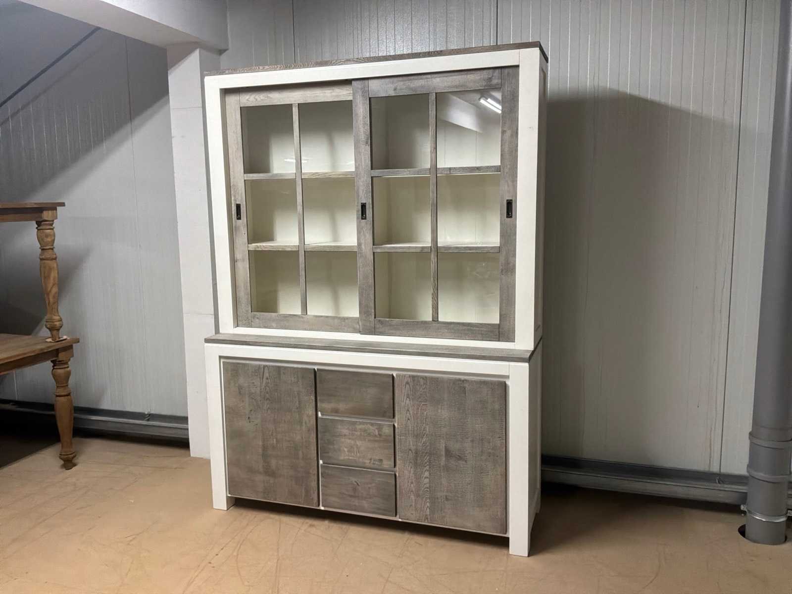 Buffetkast is 2-delig. Linkerschuifdeur dient nagekeken te worden. Deur schuift niet soepel. Model: Creta Lengte: 50cm Breedte: 160cm Hoogte: 219cm