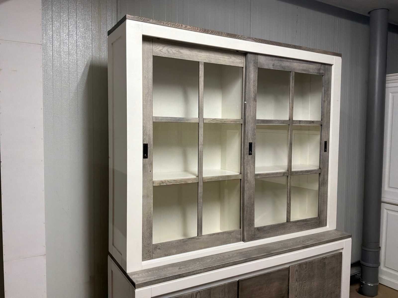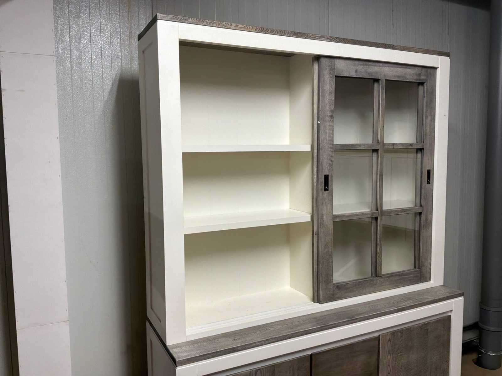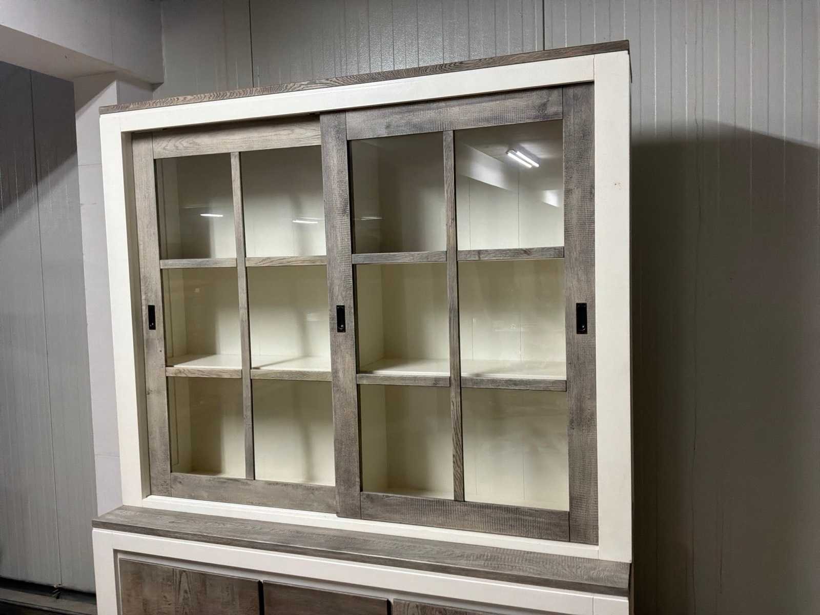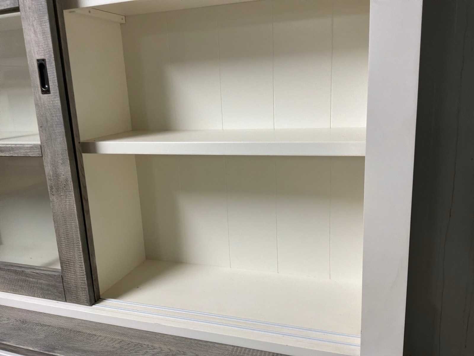 Buffetkast is 2-delig. Linkerschuifdeur dient nagekeken te worden. Deur schuift niet soepel. Model: Creta Lengte: 50cm Breedte: 160cm Hoogte: 219cm