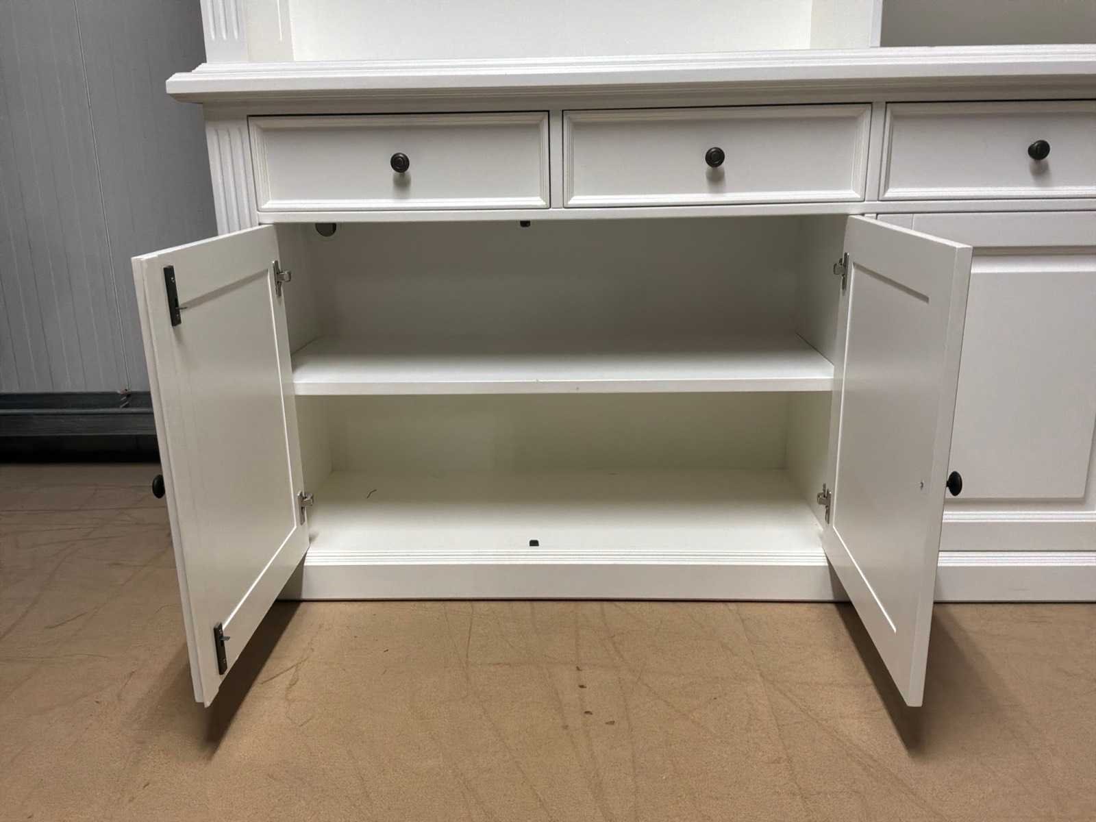 Buffetkast is 2-delig. Inclusief 8 extra schappen. Model: Creta Lengte: 50cm Breedte: 225cm Hoogte: 220cm
