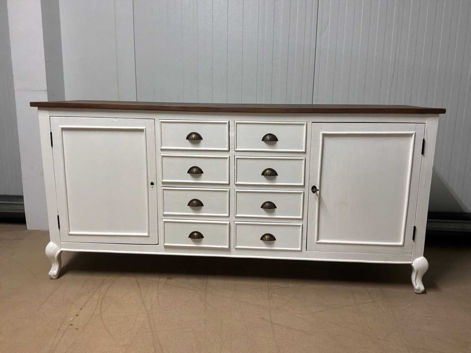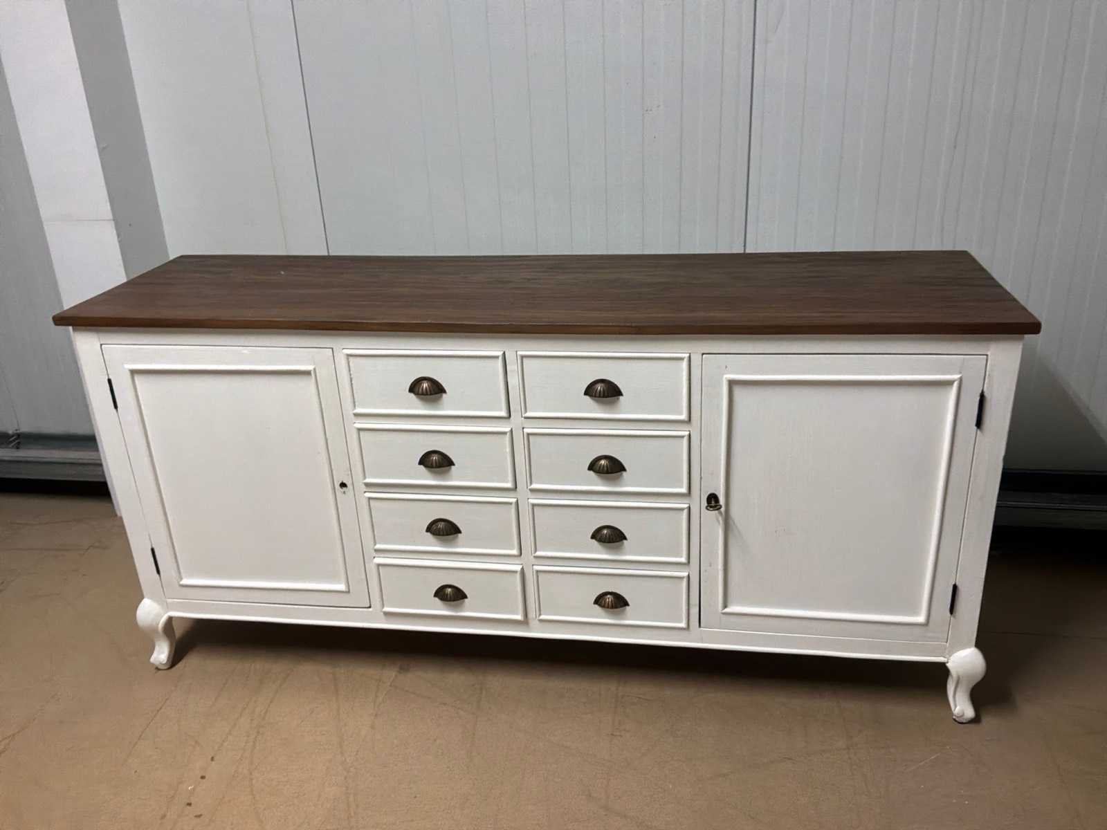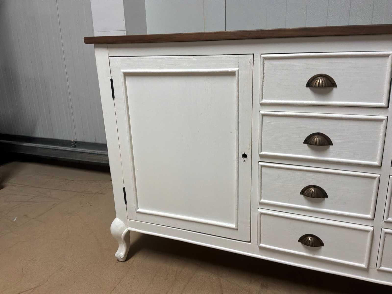 Showroommodel. Sloten van het dressoir dienen vervangen te worden. Linker deurtje gaat niet open. Model: Creta Lengte: 50cm Breedte: 180cm Hoogte: 85cm Materiaal: Hout
