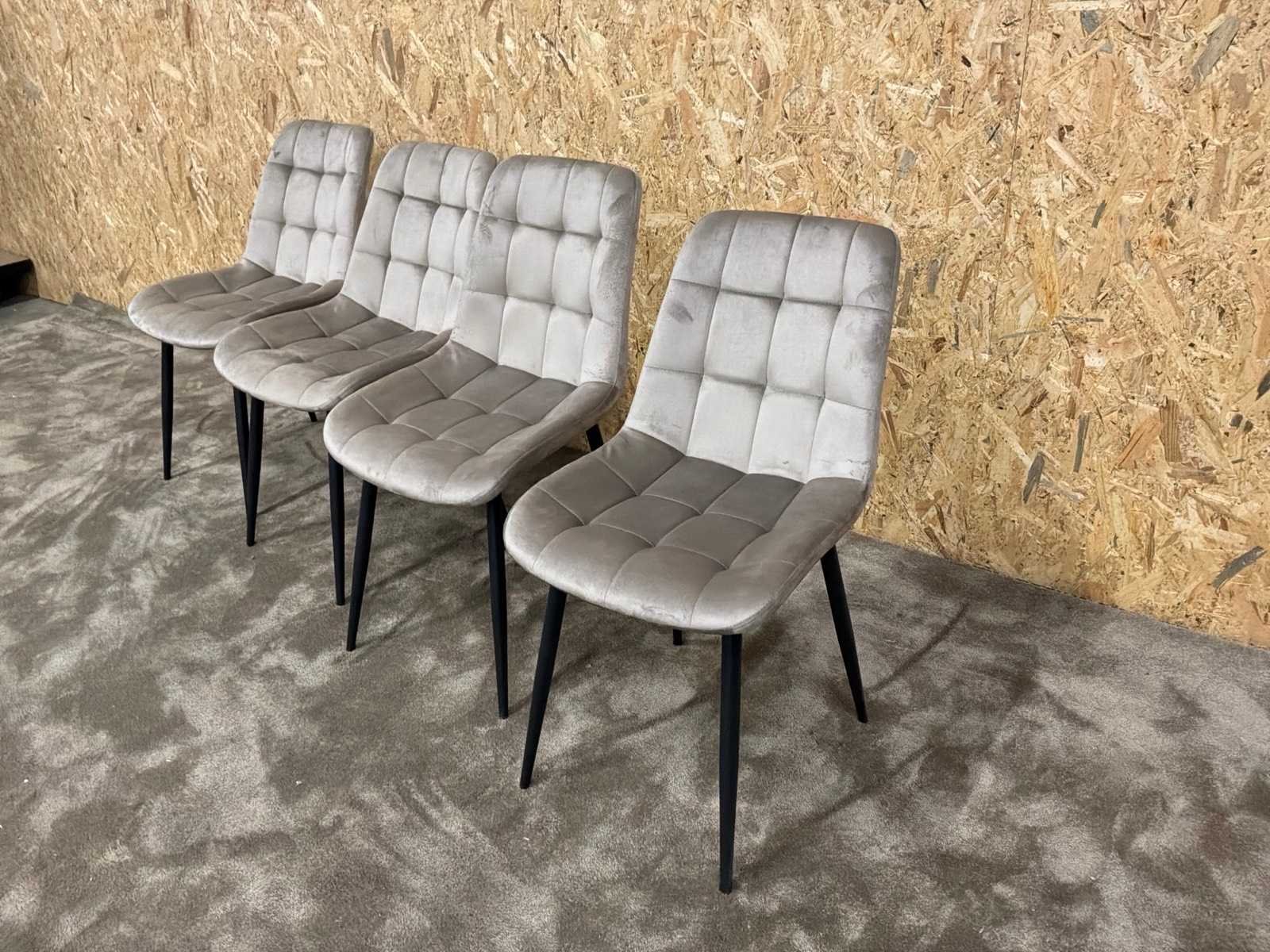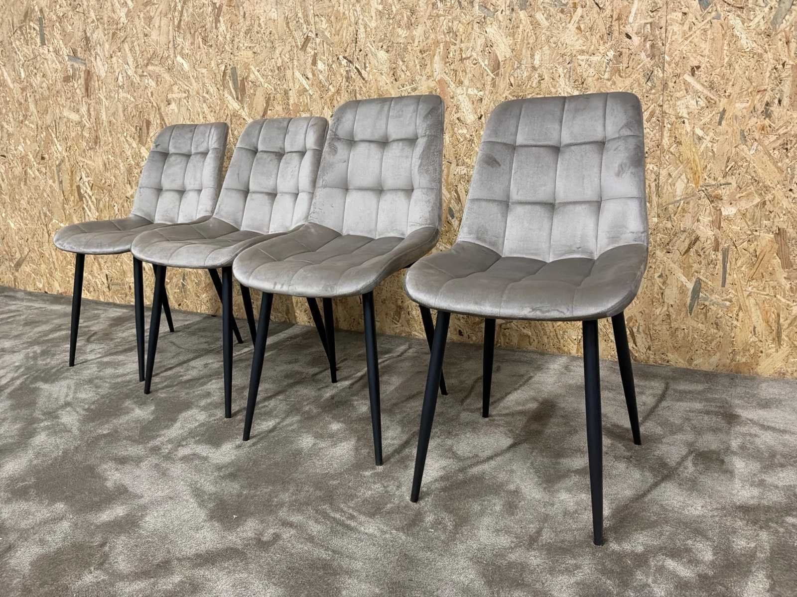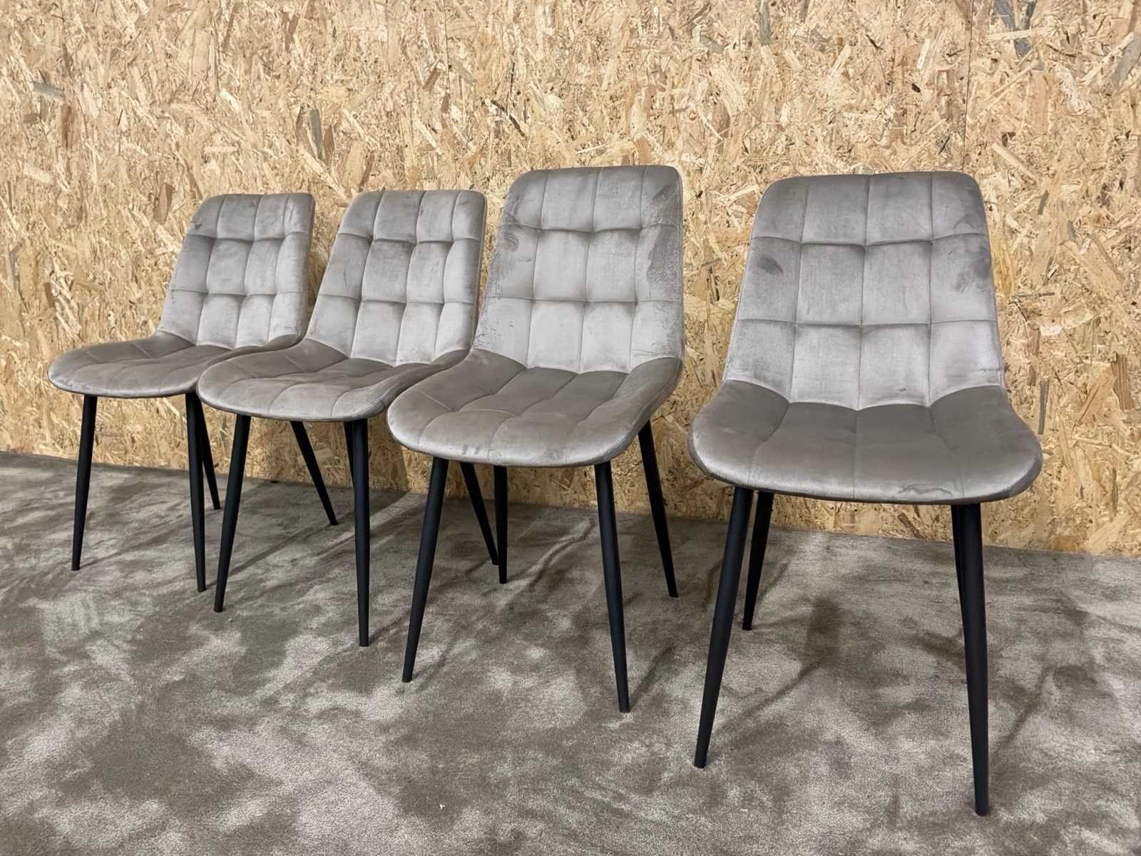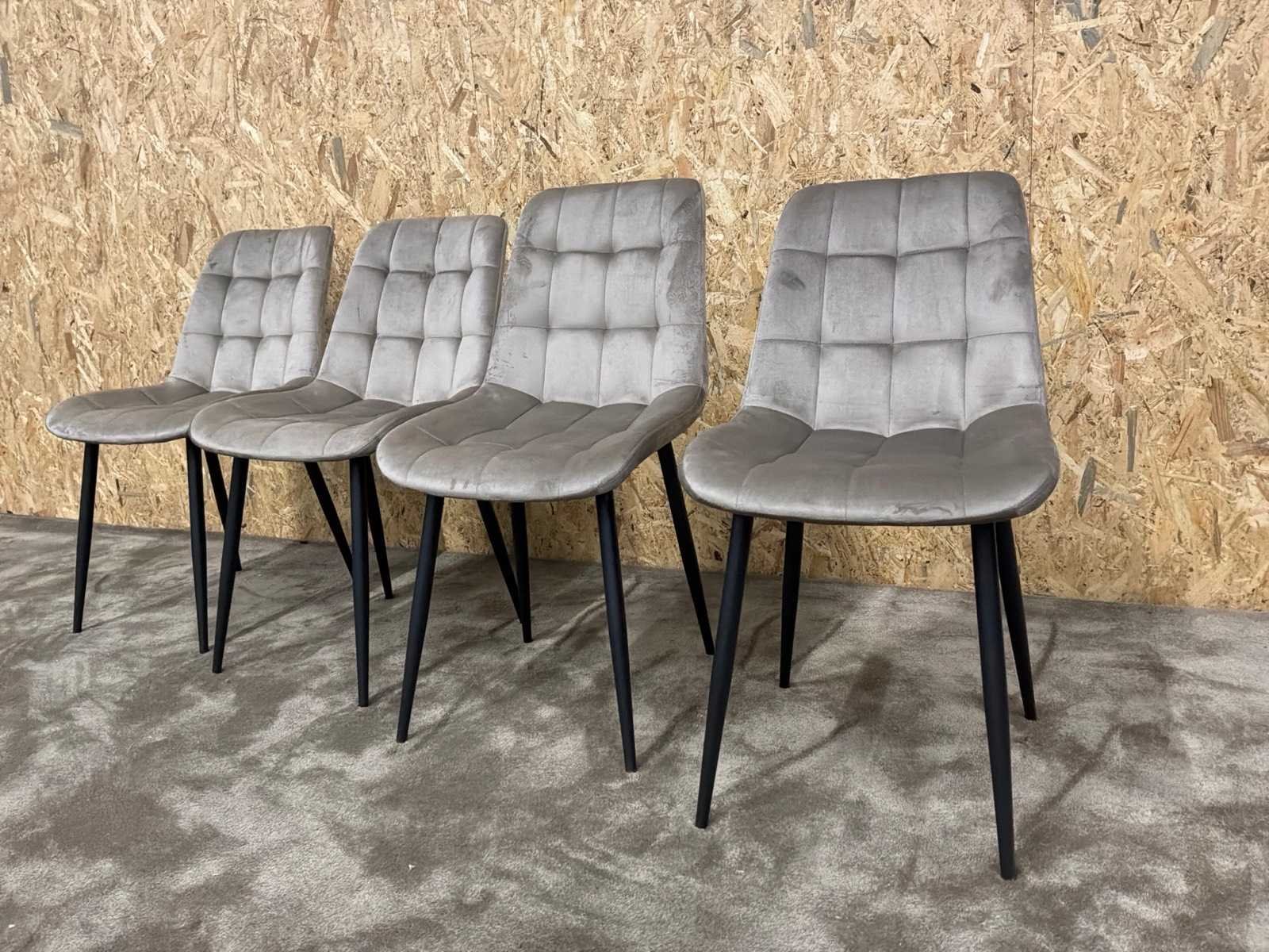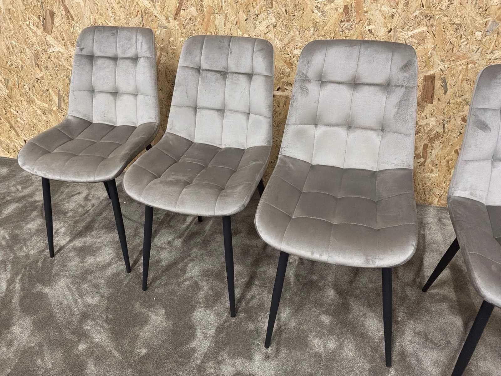 Eetkamerstoelen bevinden zich in doos. 2 per doos, totaal 3 dozen. Model: Raven Kleur: Grijs-bruin Lengte: 47cm Breedte: 61cm Hoogte: 86cm Materiaal: Stof