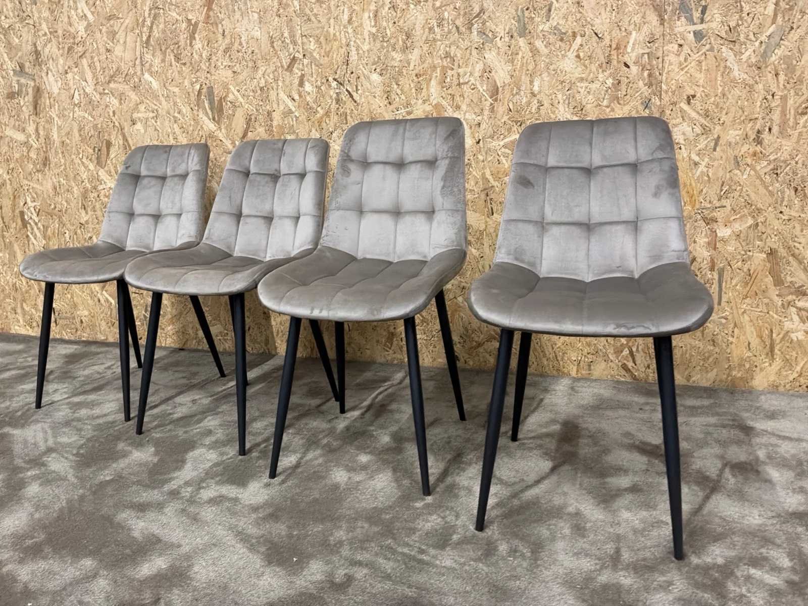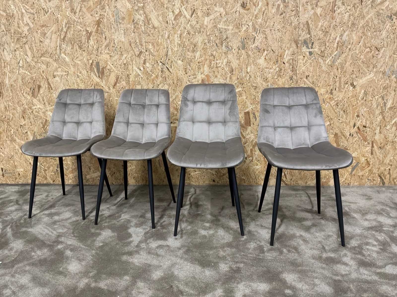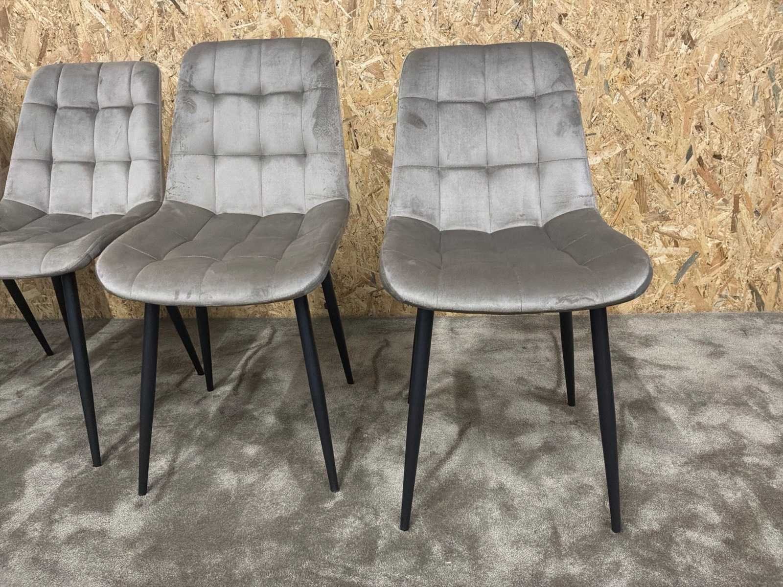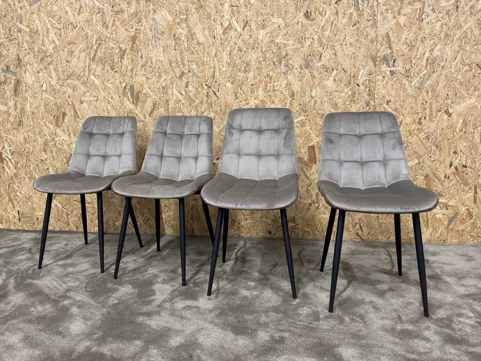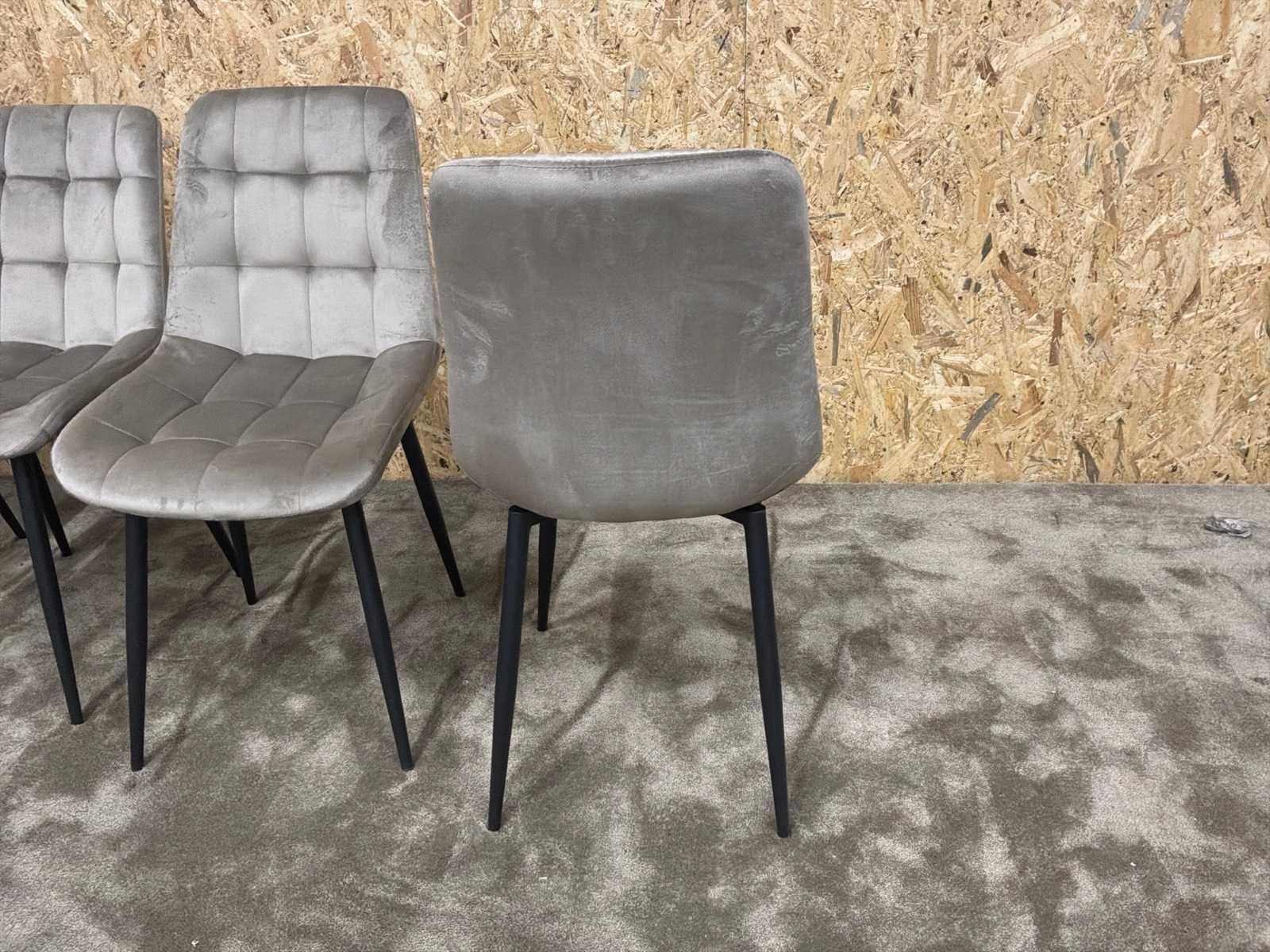 Eetkamerstoelen bevinden zich in doos. 2 per doos, totaal 3 dozen. Model: Raven Kleur: Grijs-bruin Lengte: 47cm Breedte: 61cm Hoogte: 86cm Materiaal: Stof