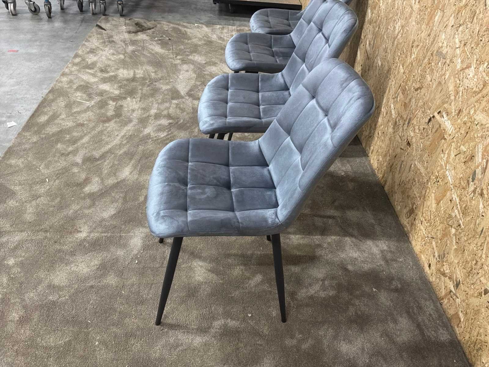 Eetkamerstoelen bevinden zich in doos. 2 per doos, totaal 2 dozen. Model: Nowy Kleur: Grijs Lengte: 47cm Breedte: 61cm Hoogte: 86cm