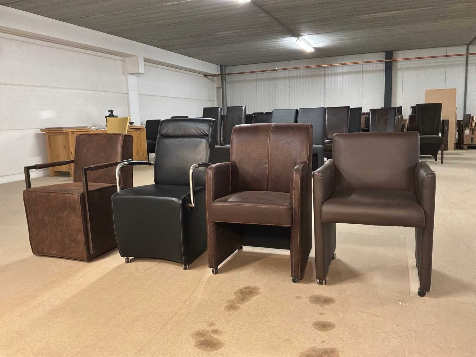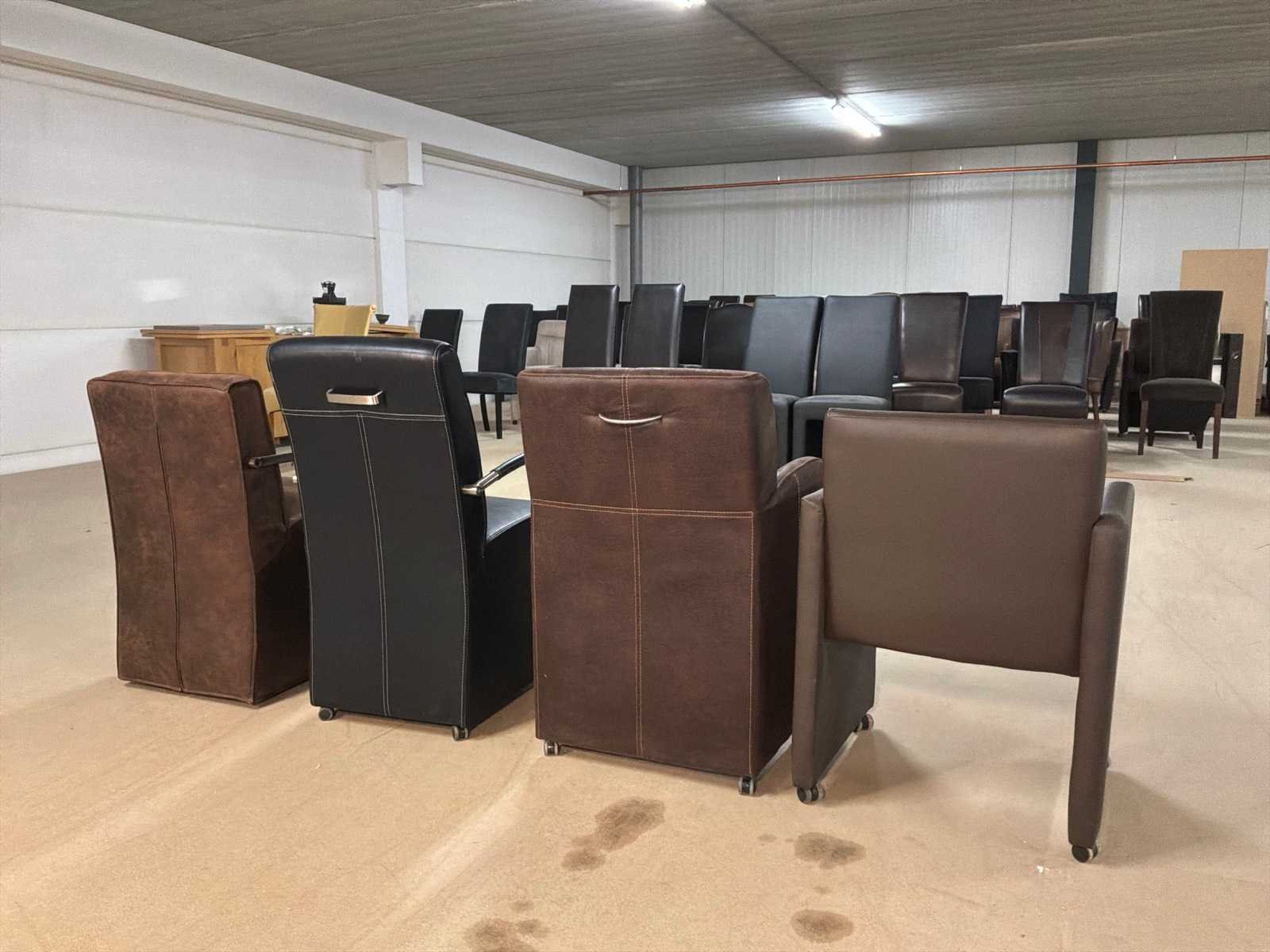 Verrijdbare leren eetkamerstoelen (4x)