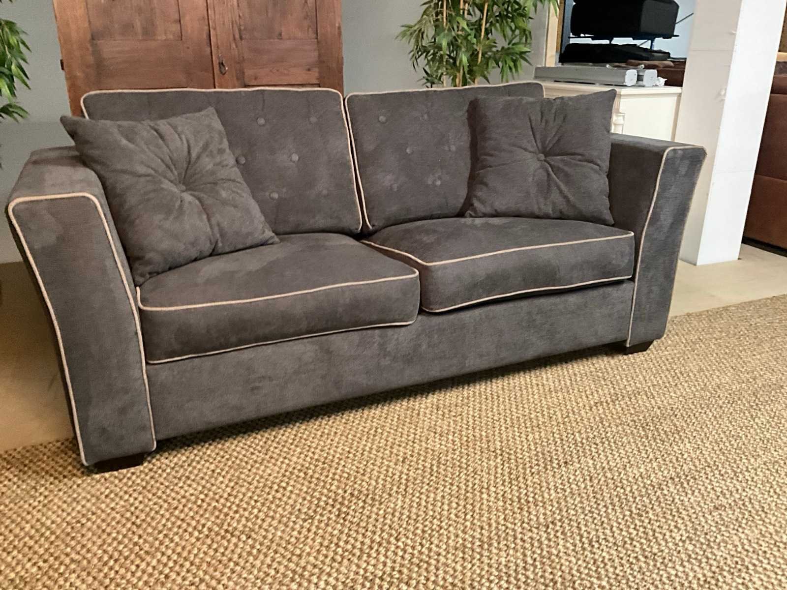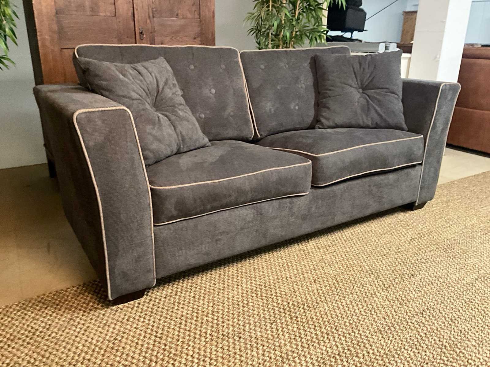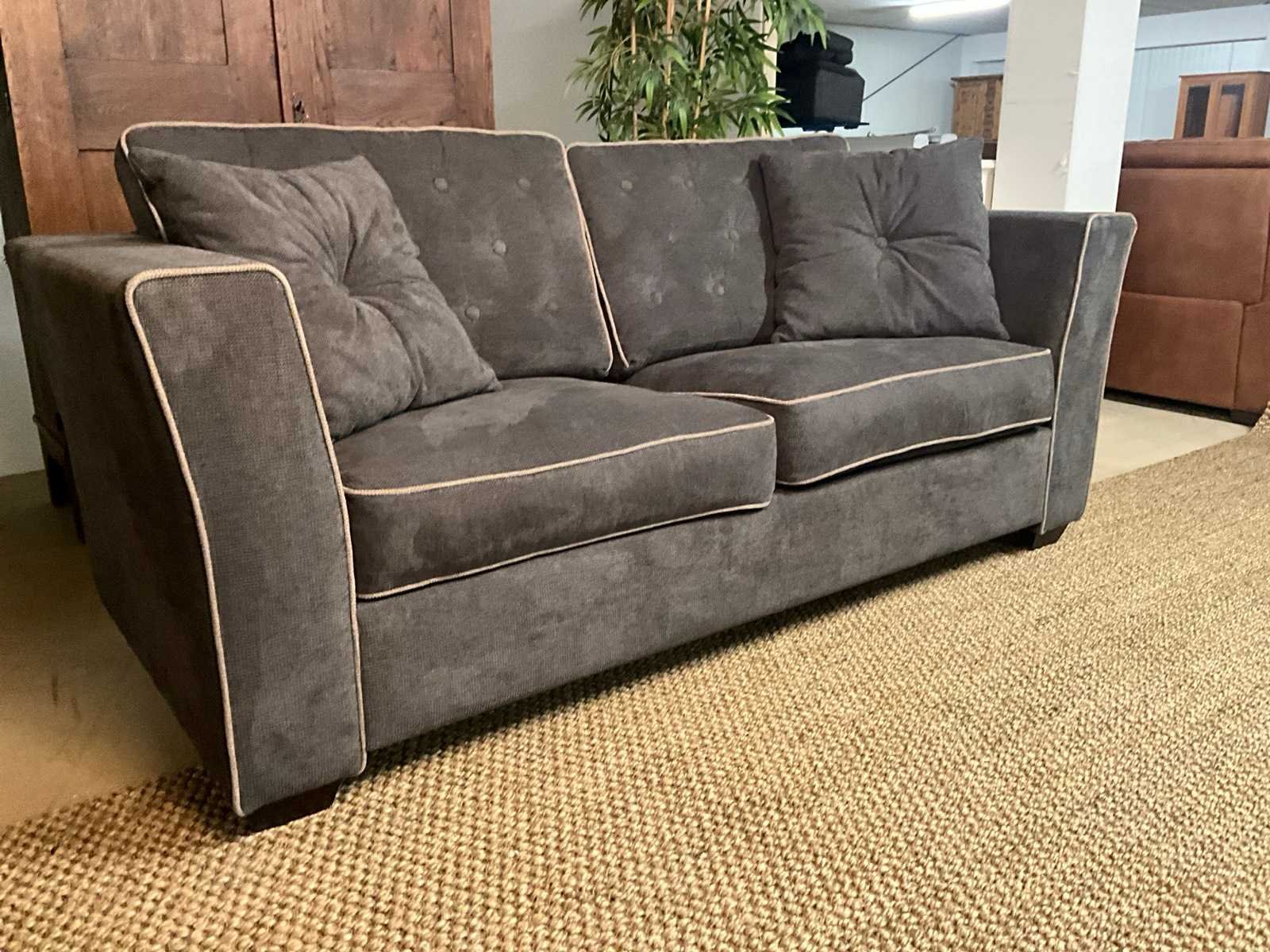 Stof beschadigd aan zijkant Model: Motown Zitplaatsen: 3 Breedte: 210cm Hoogte: 100cm Zithoogte: 48cm Diepte: 92cm