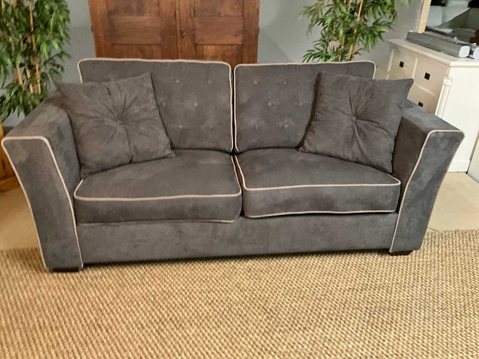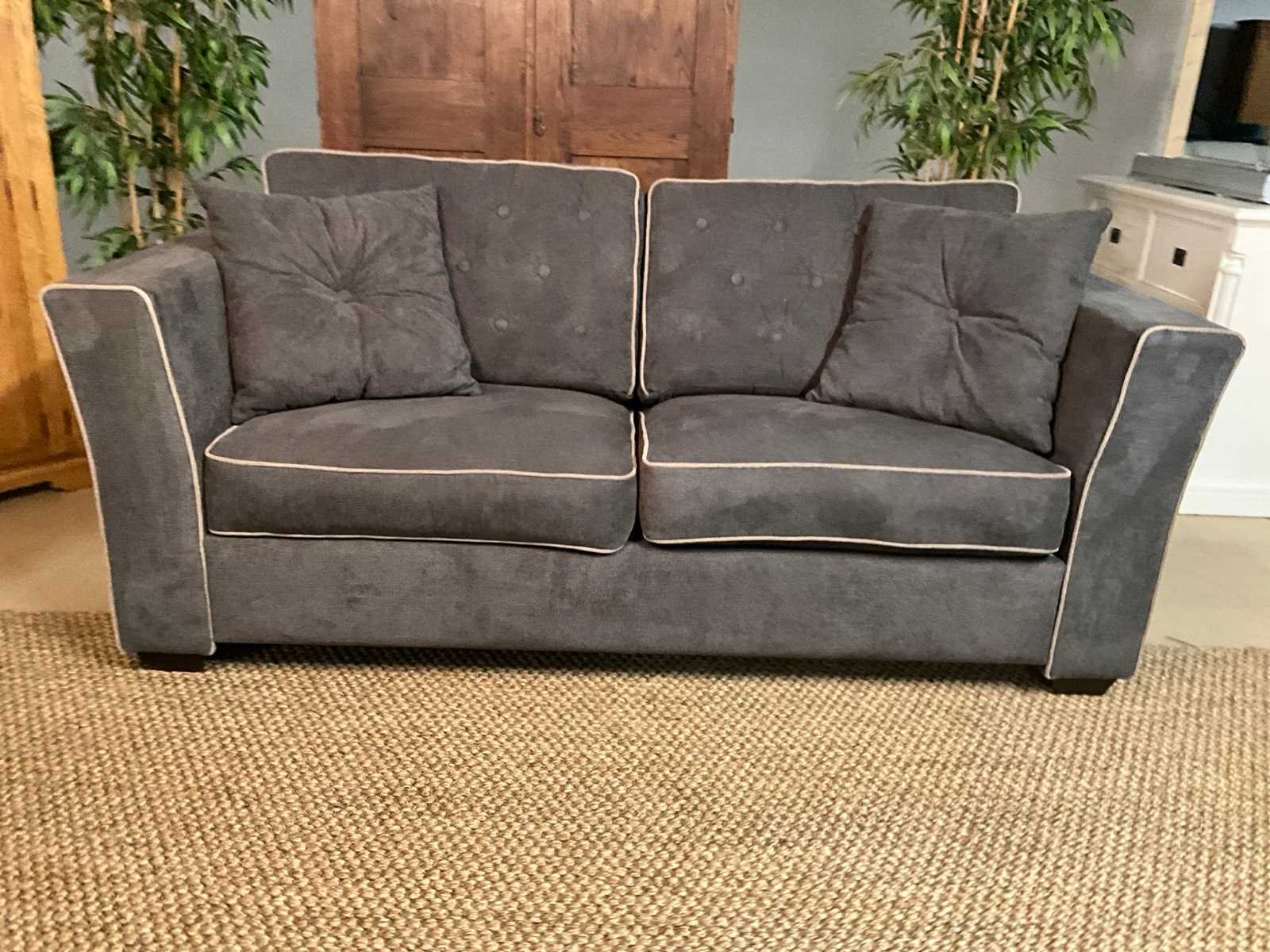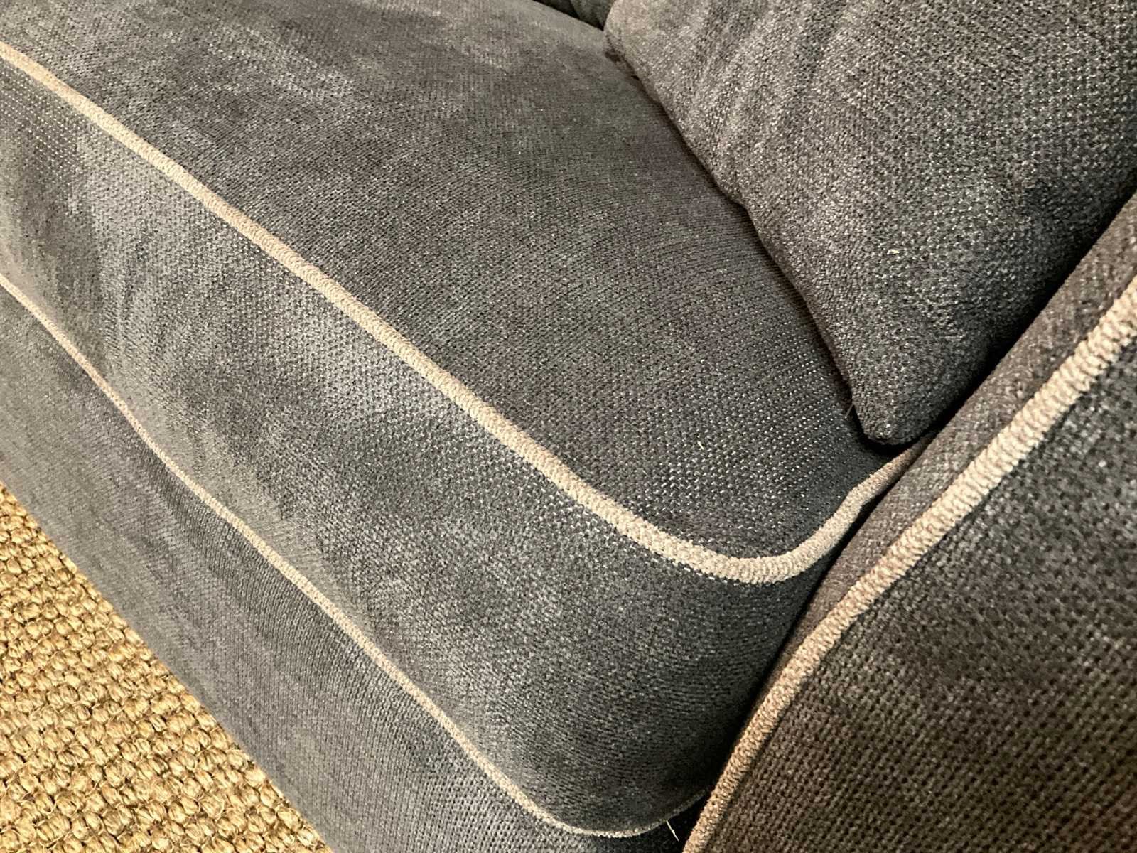 Stof beschadigd aan zijkant Model: Motown Zitplaatsen: 3 Breedte: 210cm Hoogte: 100cm Zithoogte: 48cm Diepte: 92cm