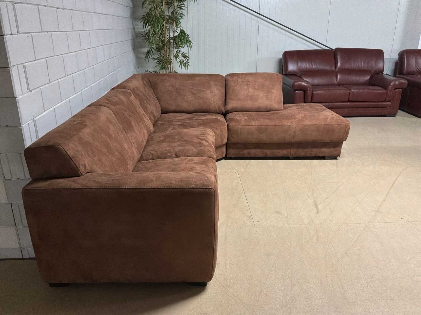Model: Florance Lengte: 230cm Breedte: 275cm Hoogte: 77cm Zithoogte: 42cm Diepte: 55cm Materiaal: Geborsteld leer