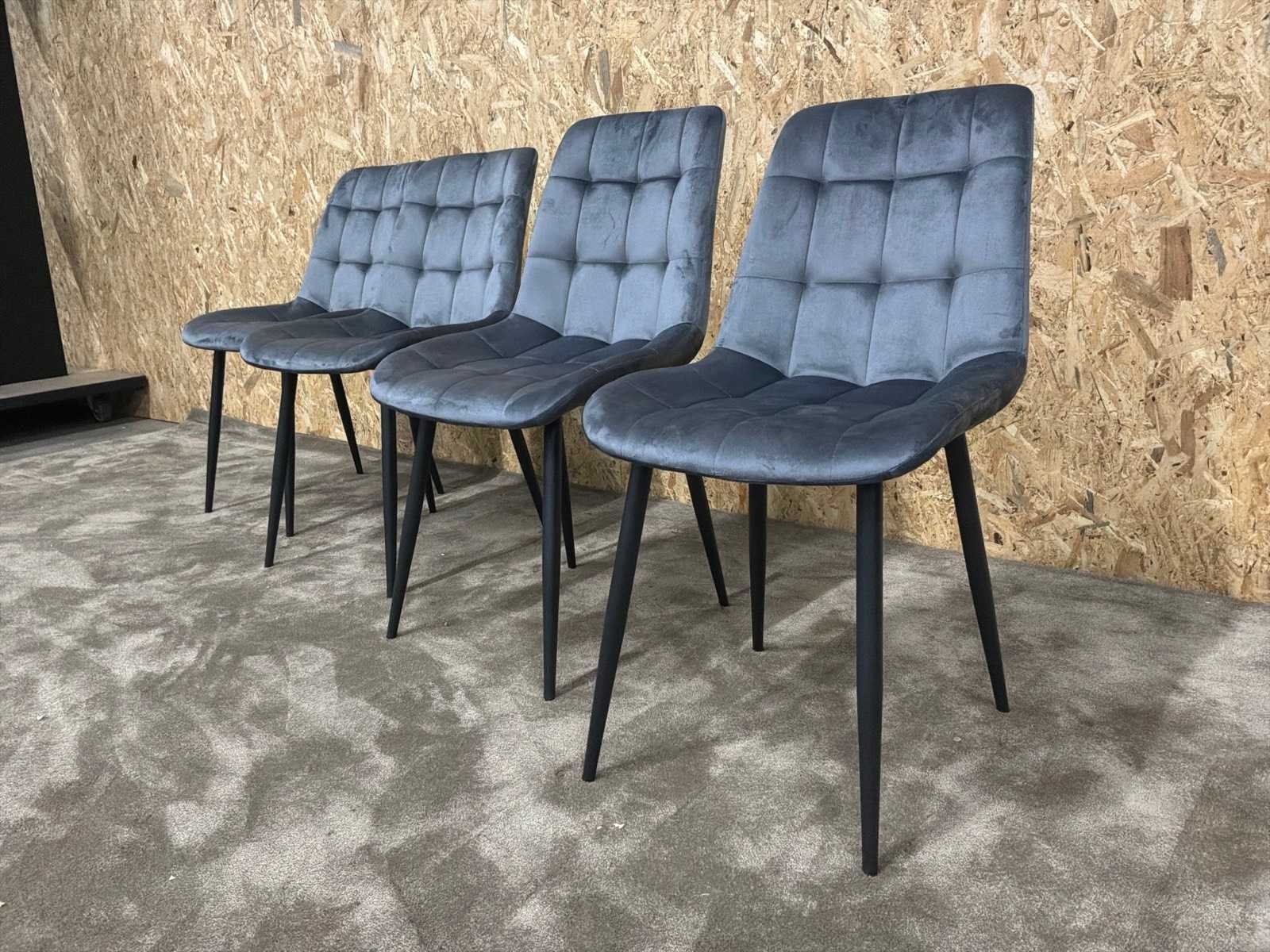 Eetkamerstoelen bevinden zich in doos. 2 per doos, totaal 2 dozen. Model: Nowy Kleur: Grijs Lengte: 47cm Breedte: 61cm Hoogte: 86cm