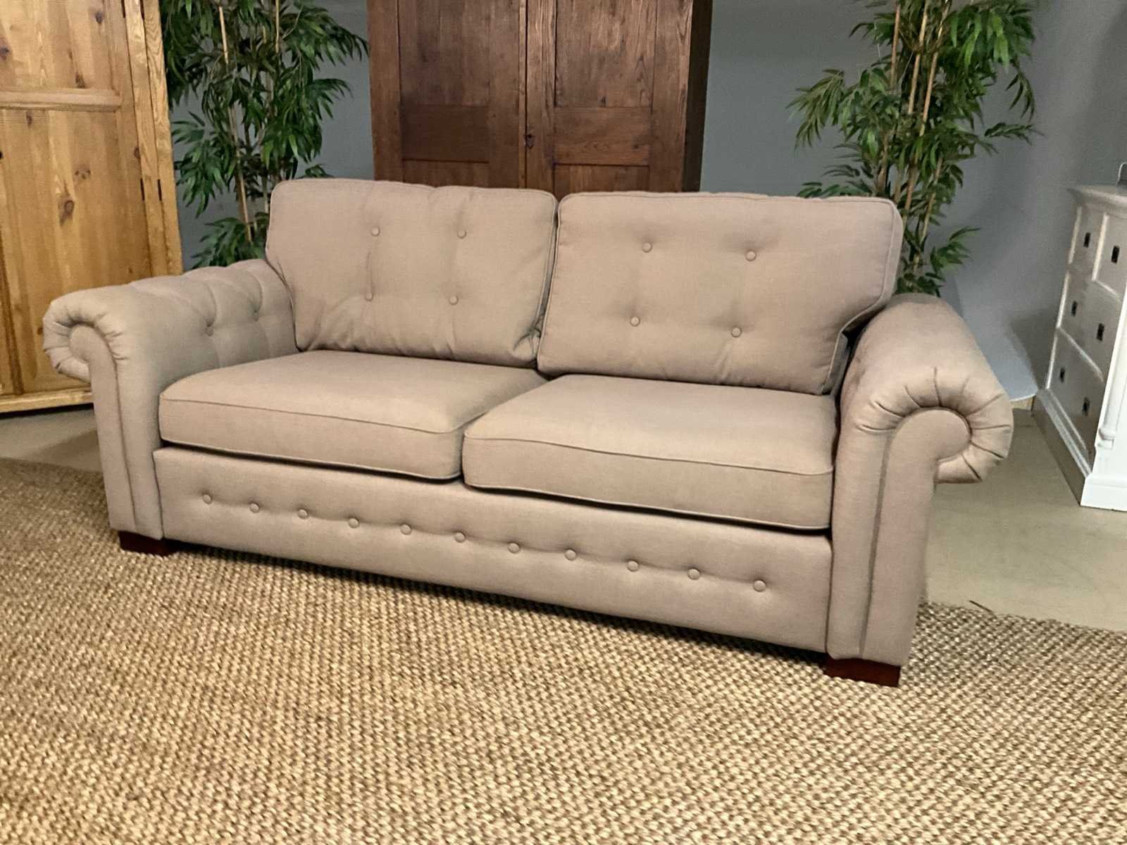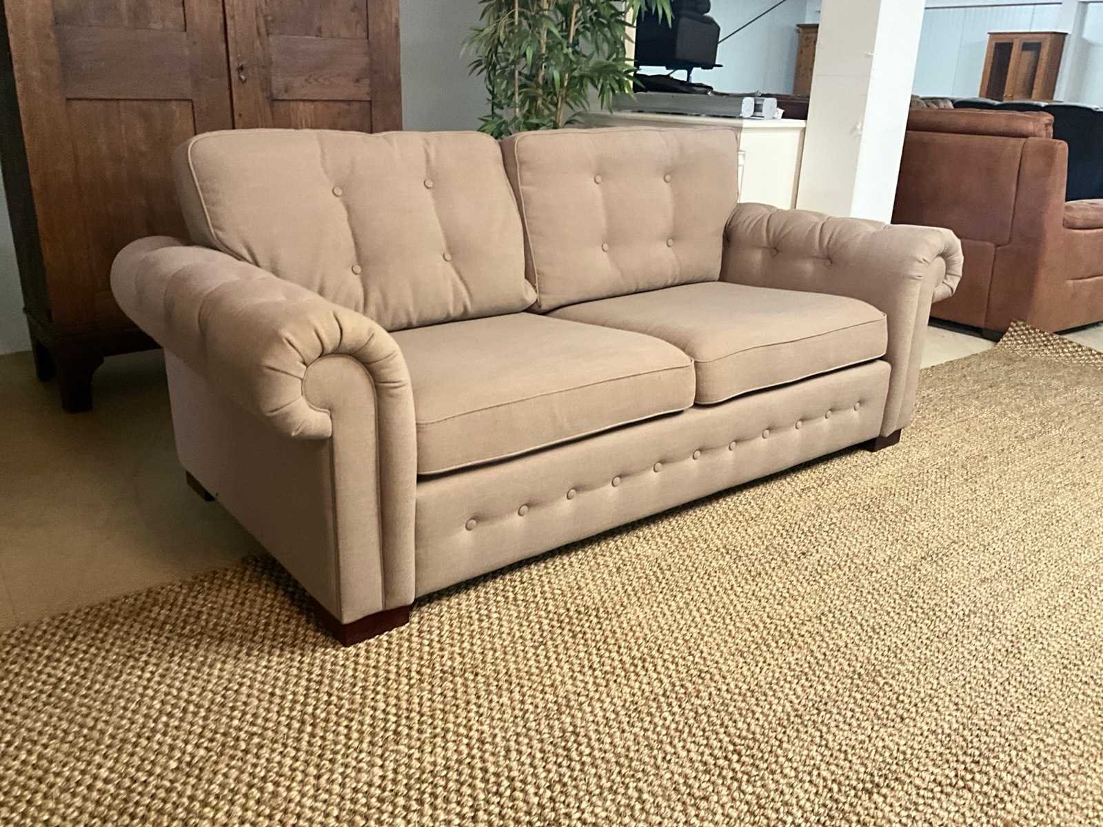 Model: Montona Zitplaatsen: 3 Kleur: Lichtbruin Breedte: 214cm Hoogte: 74cm Zithoogte: 47cm Diepte: 98cm