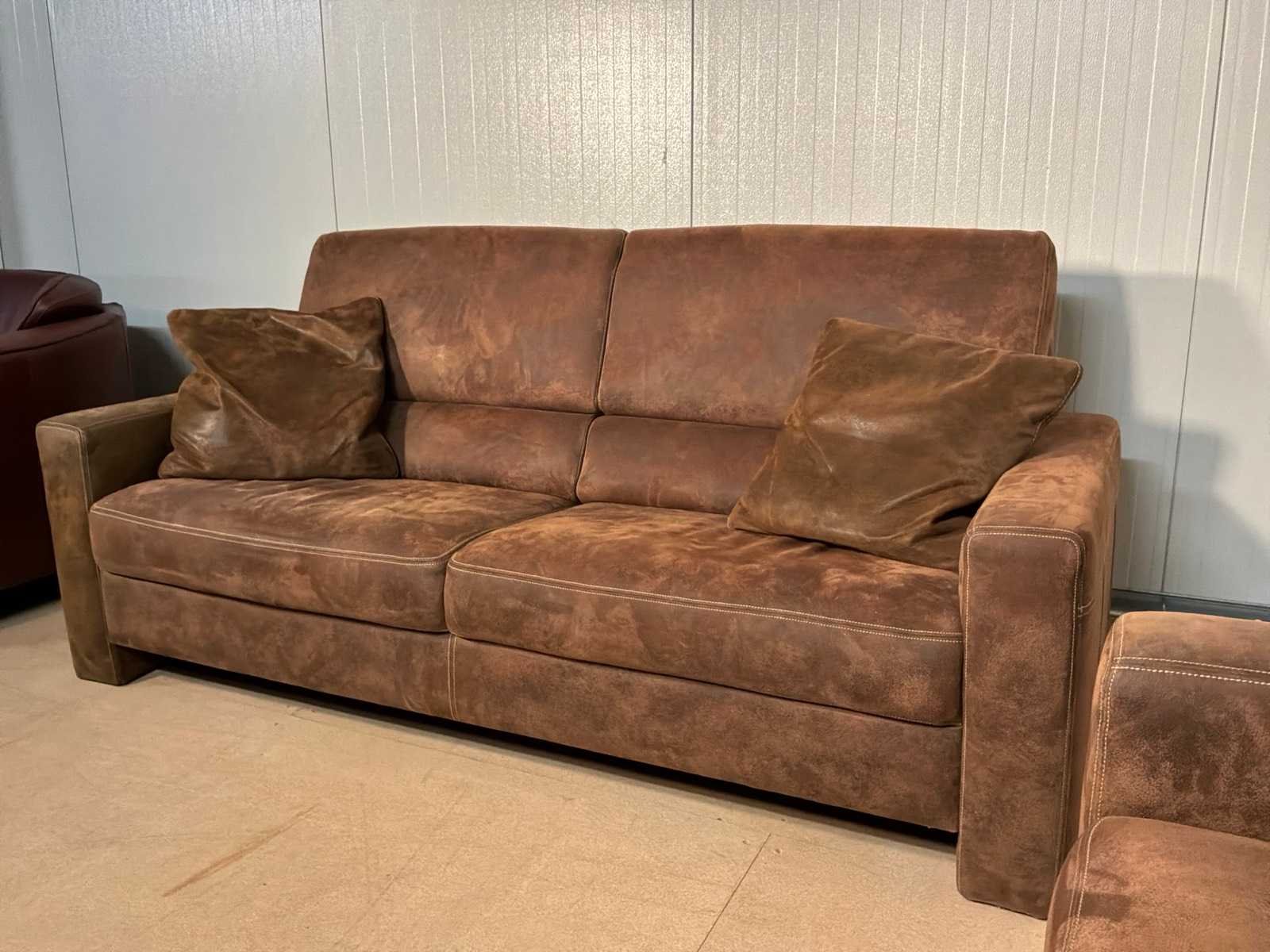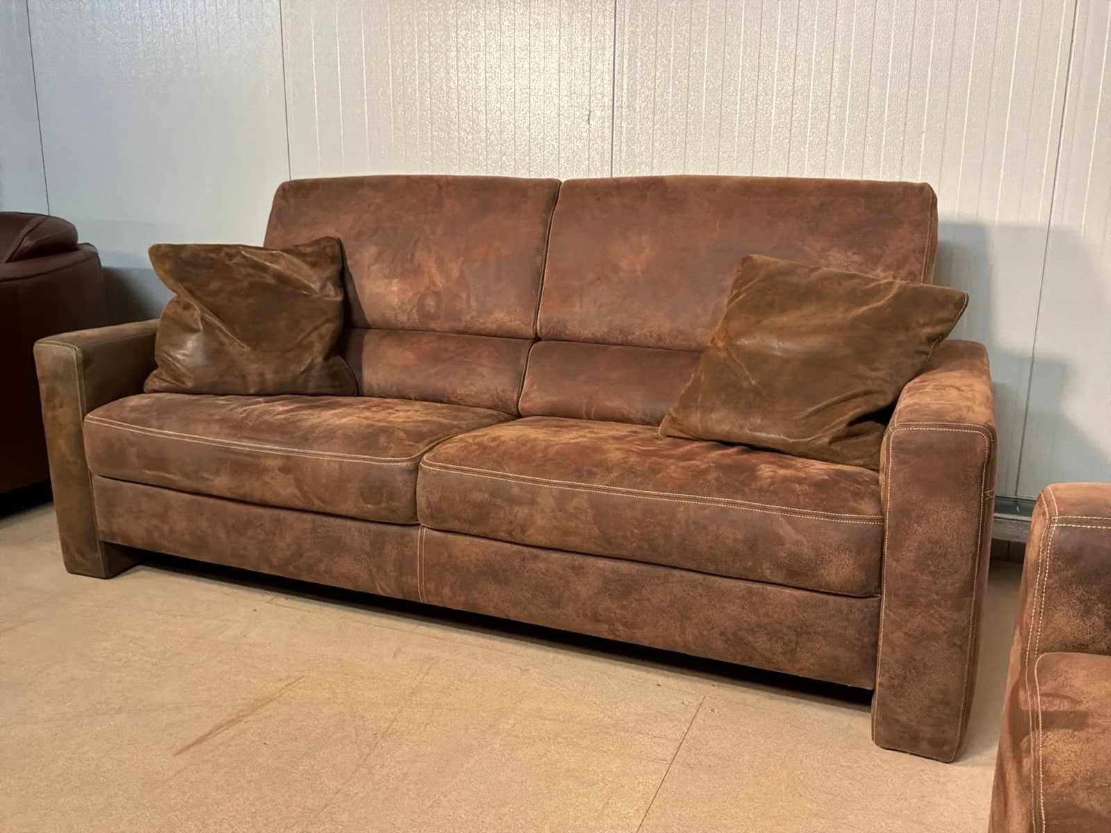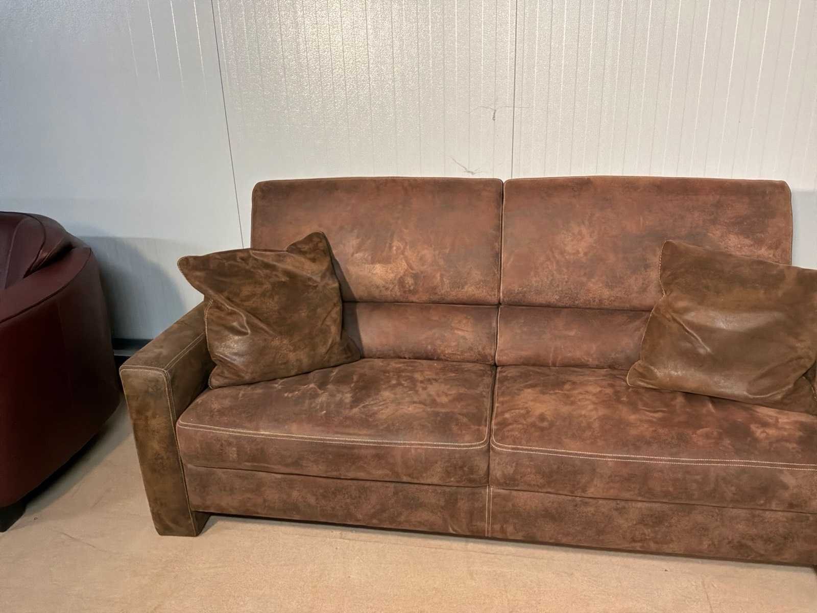 Model: Fuiji Kleur: Bruin Lengte: 90cm Breedte: 210cm Hoogte: 95cm Zithoogte: 44cm Diepte: 53cm Materiaal: Leer
