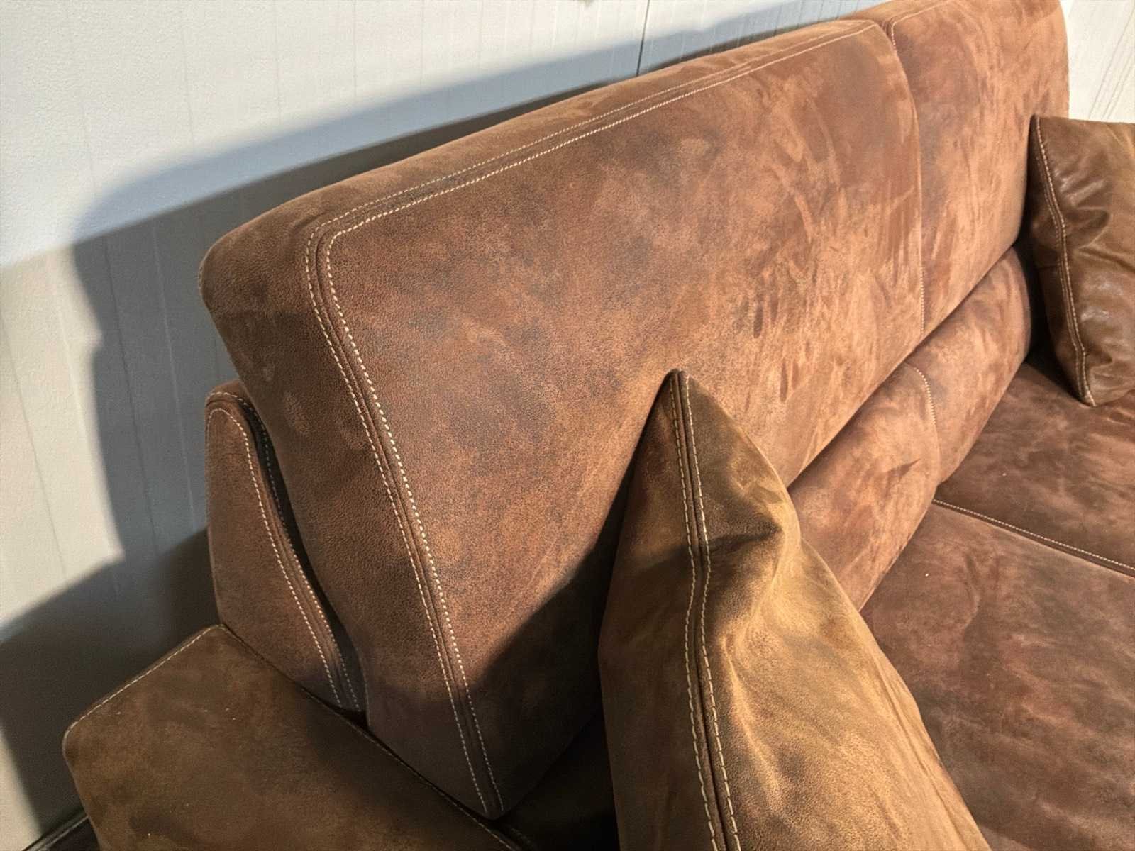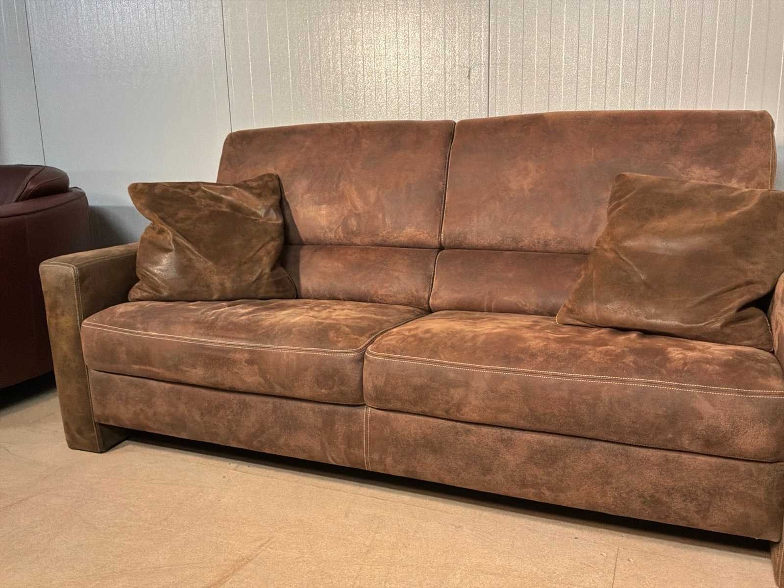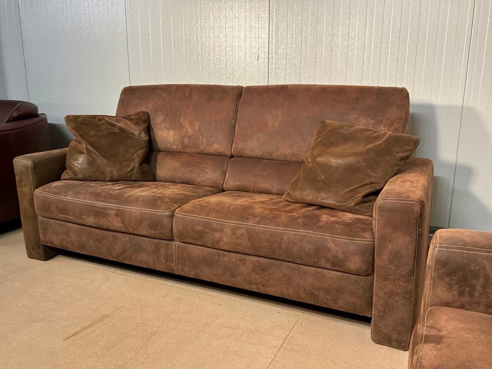Model: Fuiji Kleur: Bruin Lengte: 90cm Breedte: 210cm Hoogte: 95cm Zithoogte: 44cm Diepte: 53cm Materiaal: Leer