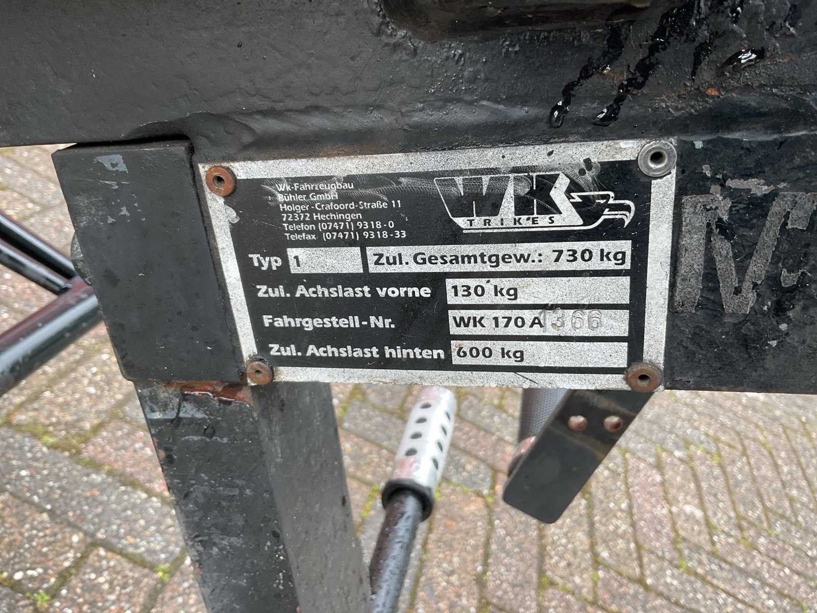 Merk: wk-trike Model: HIGHWAY Chassisnummer: wk170A1366 Gewicht: 730kg Aantal zitplaatsen: 2 Bruto BPM (NL): 2181€ Datum eerste toelating: 1994-06-28 APK vervaldatum: 2027-06-13 Vermogen (kW): 25kW Vermogen (pk): 34hp Cilinderinhoud: 1192cc Brandstof: benzine Kenteken: 25-GGZ-9 Aantal deuren: 0 Kleur: niet van toepassing