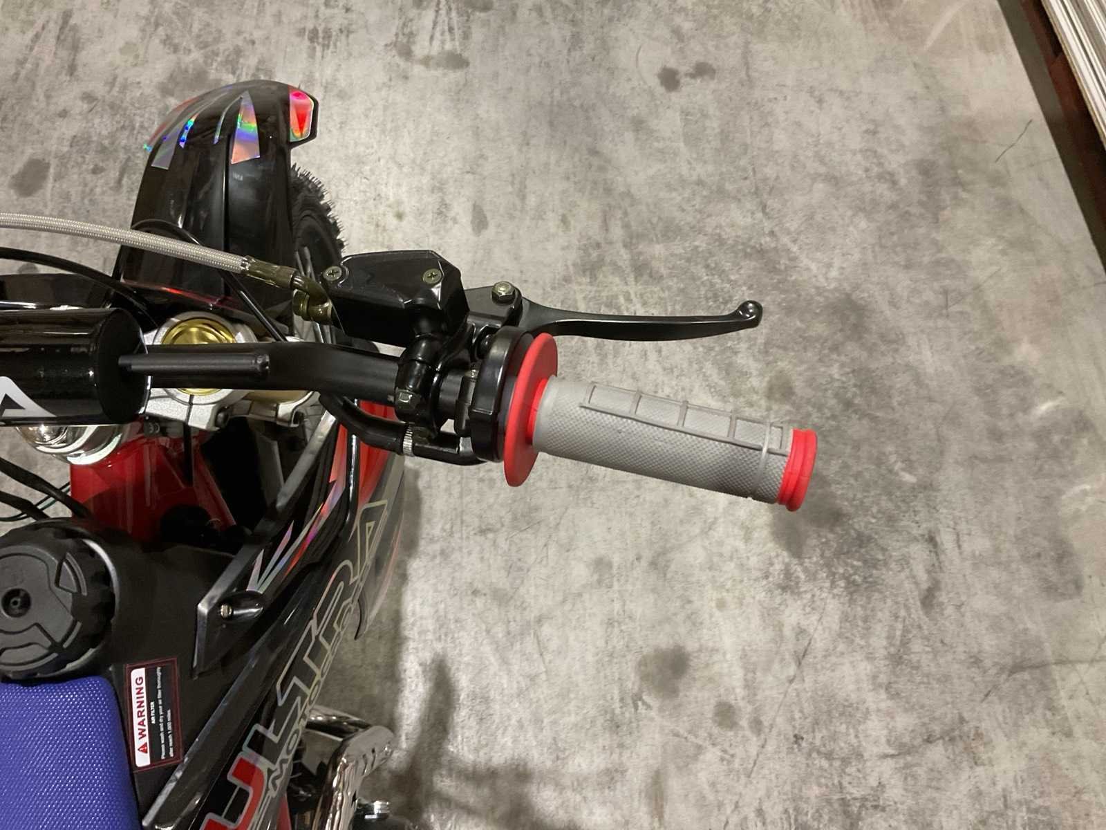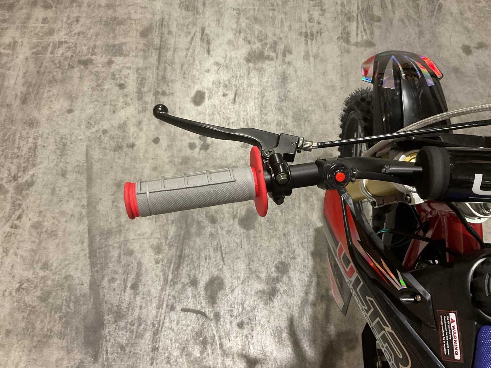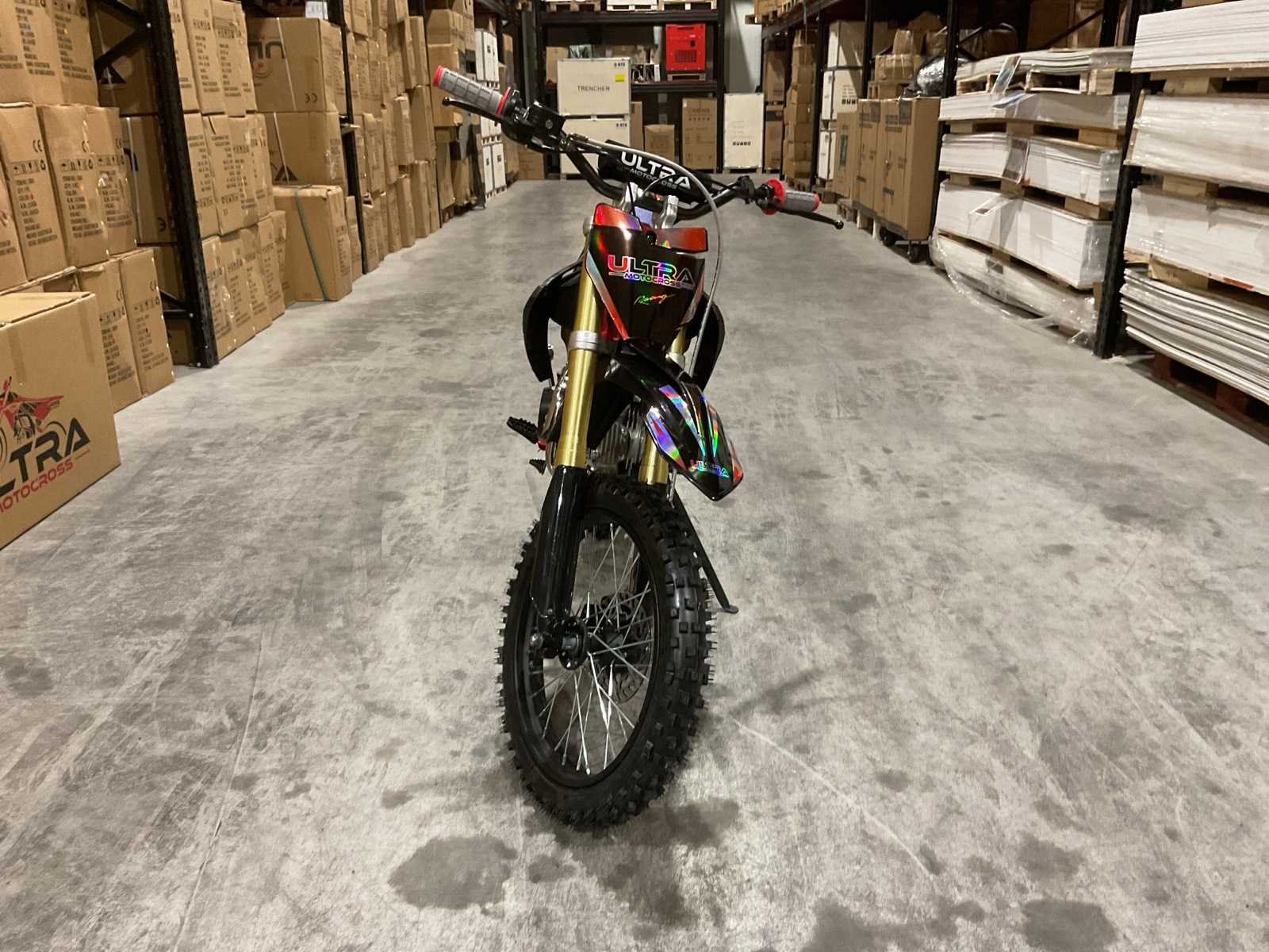 Voorzien van motor: 125 cc, 4-takt, 11 pk; Brandstof: benzine (4-takt); Transmissie: schakel; Remmen: hydraulische schijfremmen; Bandenmaat: voor 17" / achter 14"; Transportafmetingen (in doos): 135 × 45 × 65 cm; Transport gewicht: 78kg; ongebruikt in doos Merk: Ultra Motocross Model: DB003 26DE Type: 125cc Rood Cilinderinhoud: 125cc