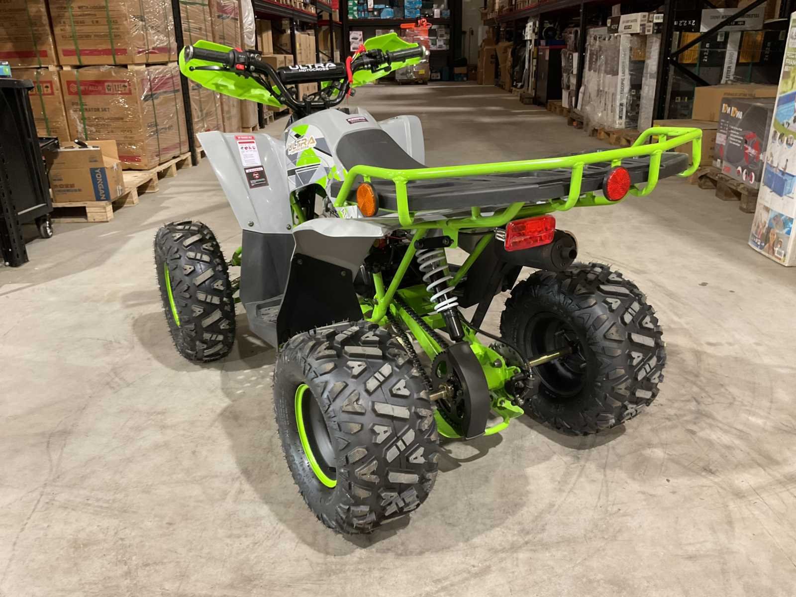 Voorzien van elektrische start; 4 takt; 125 cc; hydraulische schijfremmen; bandenmaat 8” inch; 2 sleutels; ongebruikt in krat (transport afmetingen 135x85x65 cm 118kg) Merk: Ultra Motocross Model: ATV008 Product type: ATX 125 GR Gewicht: 109kg Transmissie: Semi automaat Bouwjaar: 2025 Vermogen (pk): 9hp Cilinderinhoud: 125cc Kleur: Groen