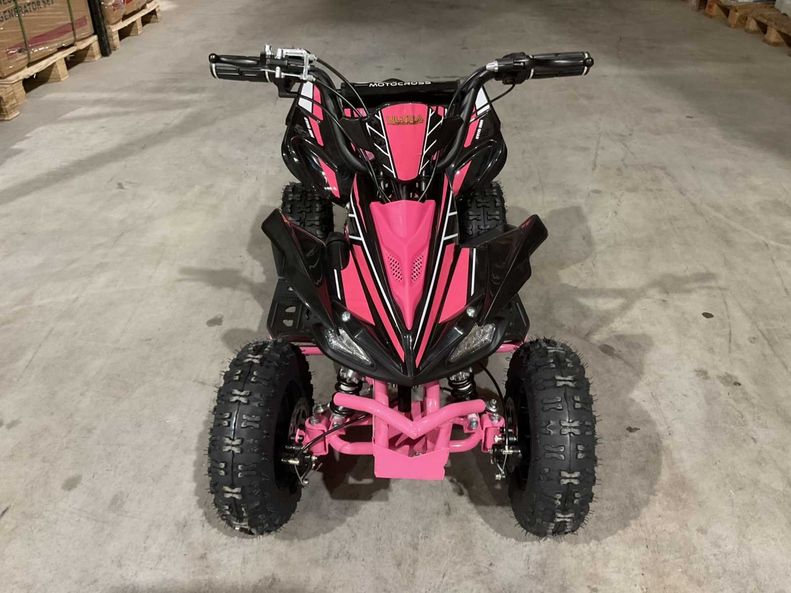 Voorzien van 1000W 36V elektrische motor; ouderen sleutel 3 verschillende snelheden; achterwielaandrijving; bandenmaat 6” inch; 2 sleutels; ongebruikt in doos (transport afmetingen 100x55x45 cm 48kg) Merk: Ultra Motocross Model: MA03E Product type: ATX 1000 RZ Gewicht: 45kg Aantal sleutels: 2 Transmissie: Automaat Bouwjaar: 2025 Vermogen (kW): 1kW Brandstof: Elektrisch Kleur: Roze Lengte: 100cm Breedte: 55cm Hoogte: 45cm