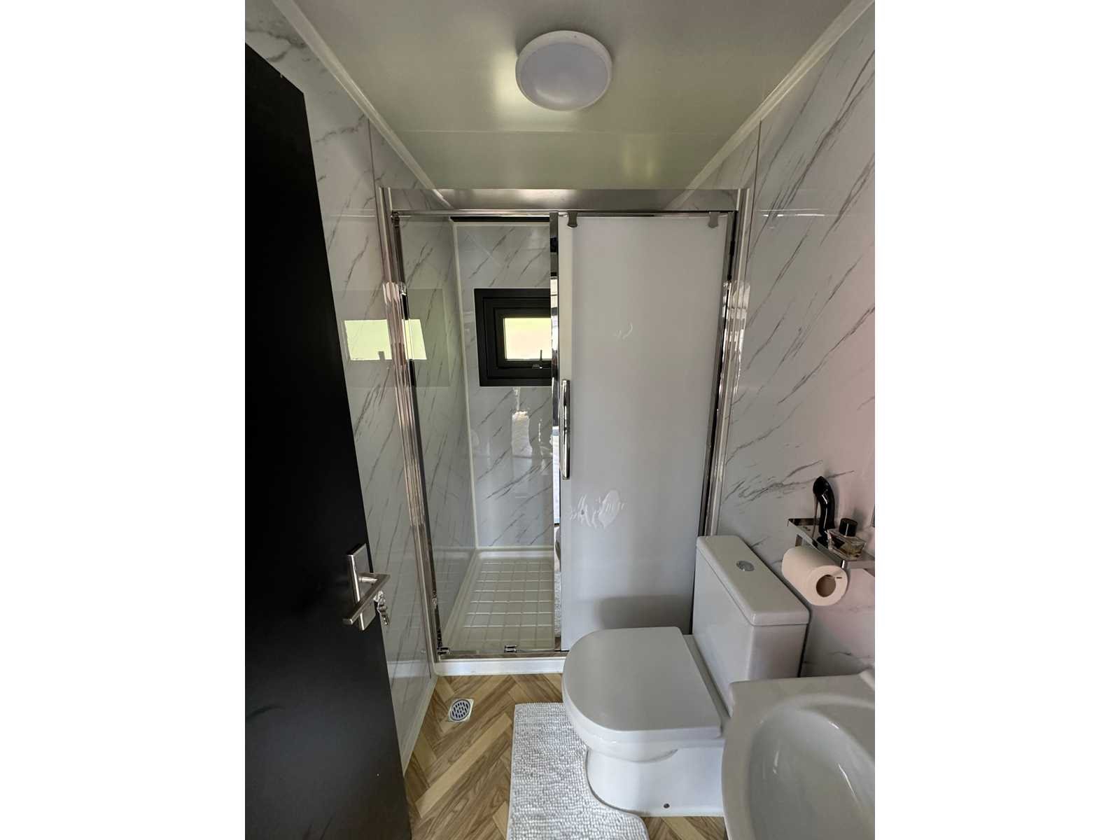 Voorzien van geïsoleerde wanden en dak; 2 slaapkamers; leefruimte met hoekkeuken; badkamer met douche, wc en wastafel; elke ruimte voorzien van verlichting en stopcontacten 230V; meterkast; PVC vloer; aluminium ramen en deuren; afsluitbaar; water, stroom en afvoer kan makkelijk aangesloten worden is voorbereid; ongebruikt en staat transport klaar (let op kleur is steen motief zoals op de eerste foto) (let op meubilair niet inbegrepen) (let op dit model heeft geen glazenwand op de linker zijwand foto’s zijn ter illustratie, van binnen is hij verder exact hetzelfde) (transport afmetingen 590x220x248 cm, gewicht 3500 kg) Merk: Rhino Houses Model: 36,5 m2 Product type: 2 slaapkamers, badkamer en keuken Gewicht: 3500 Lengte: 5900 Breedte: 6200 Hoogte: 2480
