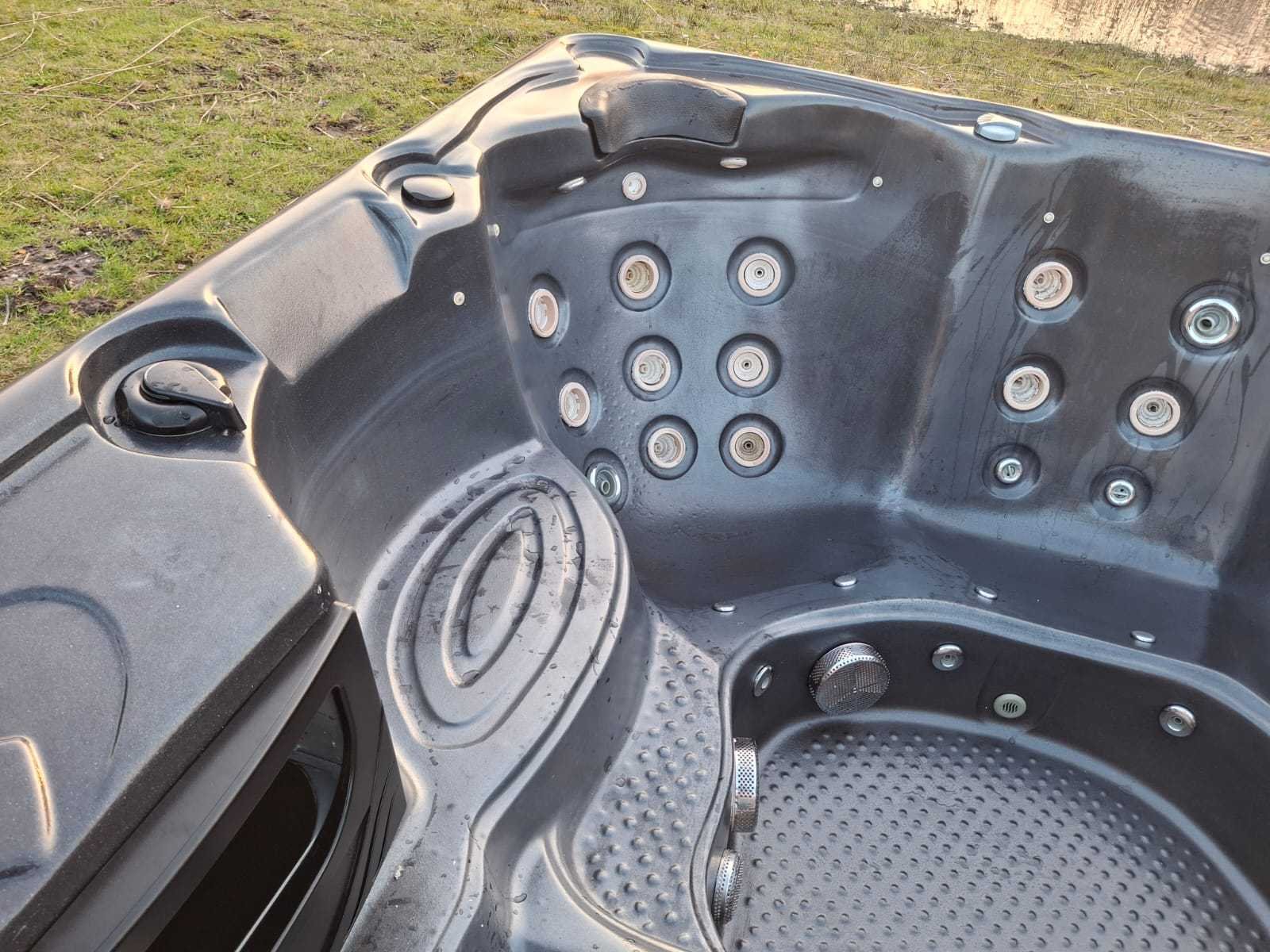 Voorzien van speakers; waterval; hoofdkussens; nek/schouder massage; automatisch filtersysteem; 4 zitplaatsen; 1 ligplaats; kunststof omkasting; Niet getest op functioneren (Marge, geen BTW) Merk: Balboa Model: 5 persoons Verlichting: Ja Jets: 52 Aantal personen: 5 Lengte: 220cm Breedte: 210cm Hoogte: 86cm