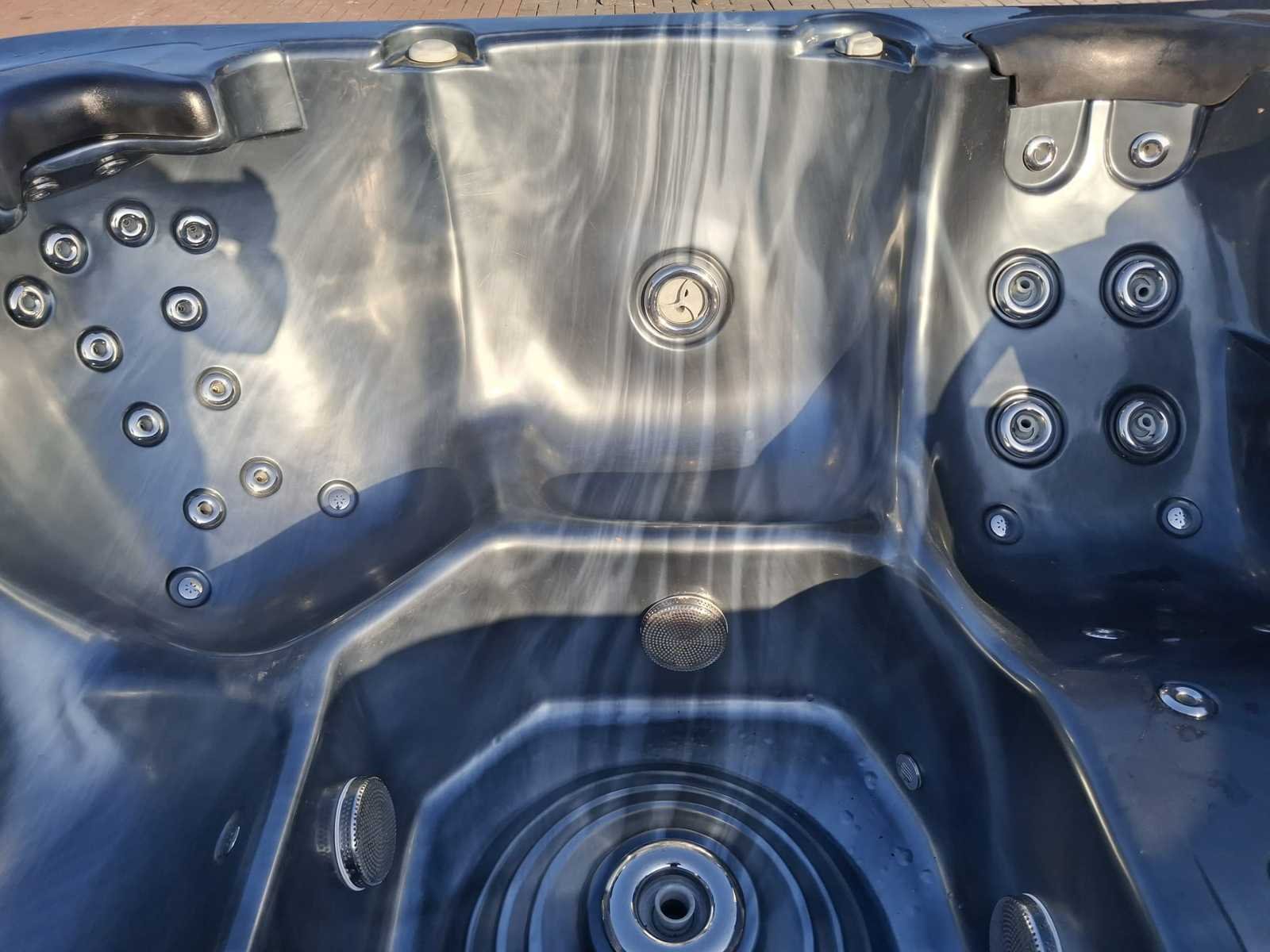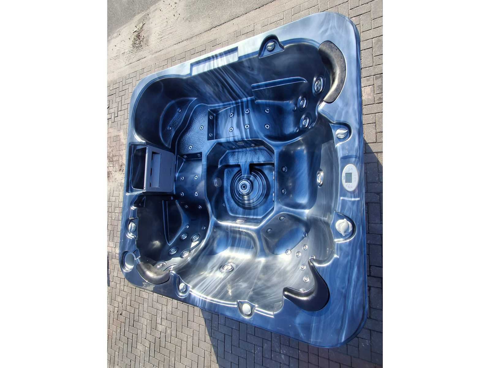 Voorzien van 2 ligplaatsen; 3 zitplaatsen; RVS massage jets; kunststof omkasting; hoofdkussens; automatisch filtersysteem; Niet getest op functioneren (Marge, geen BTW) Merk: L Spa Model: 5 persoons Verlichting: Ja Jets: 48 Aantal personen: 5 Lengte: 230cm Breedte: 230cm Hoogte: 92cm