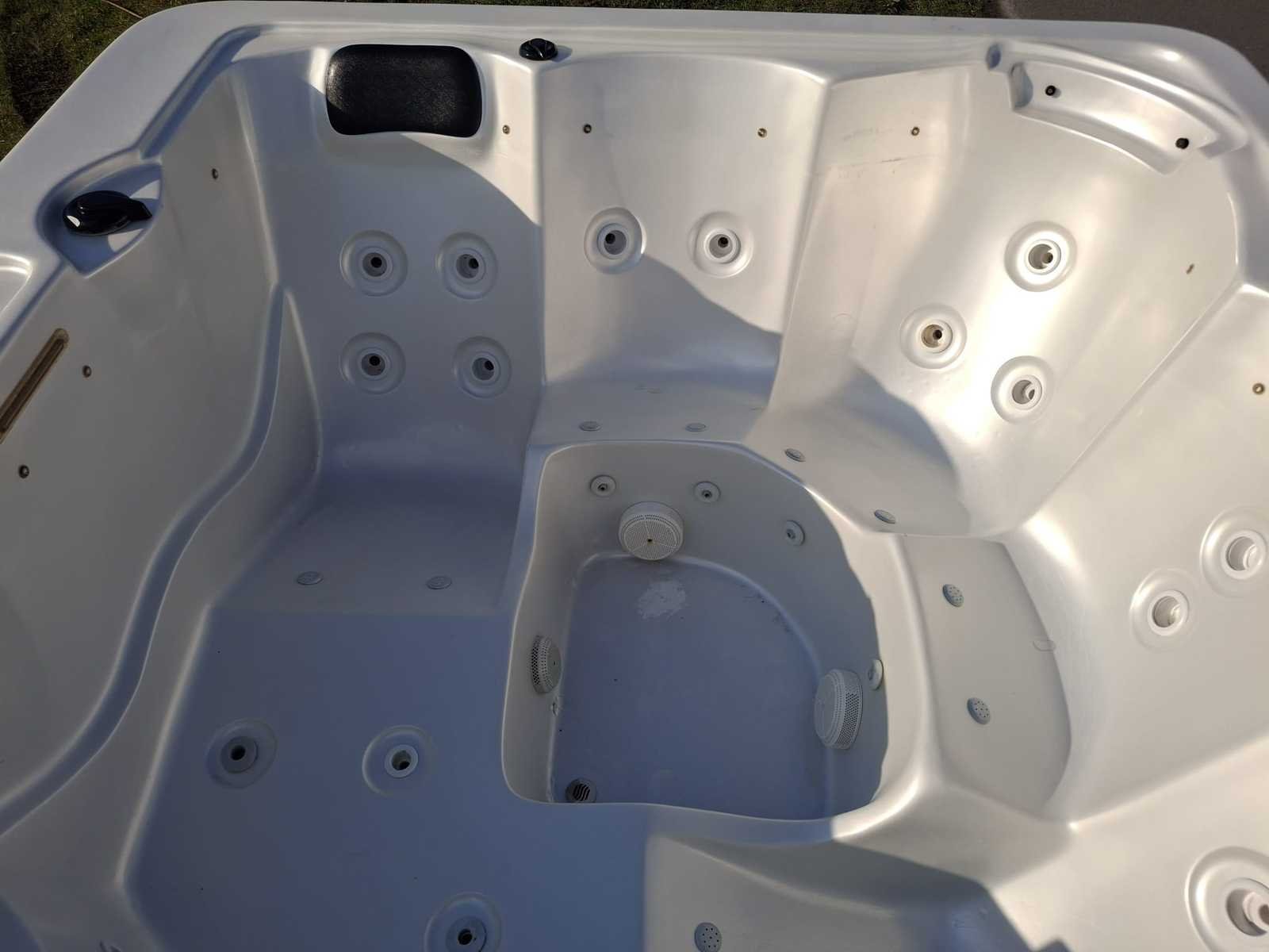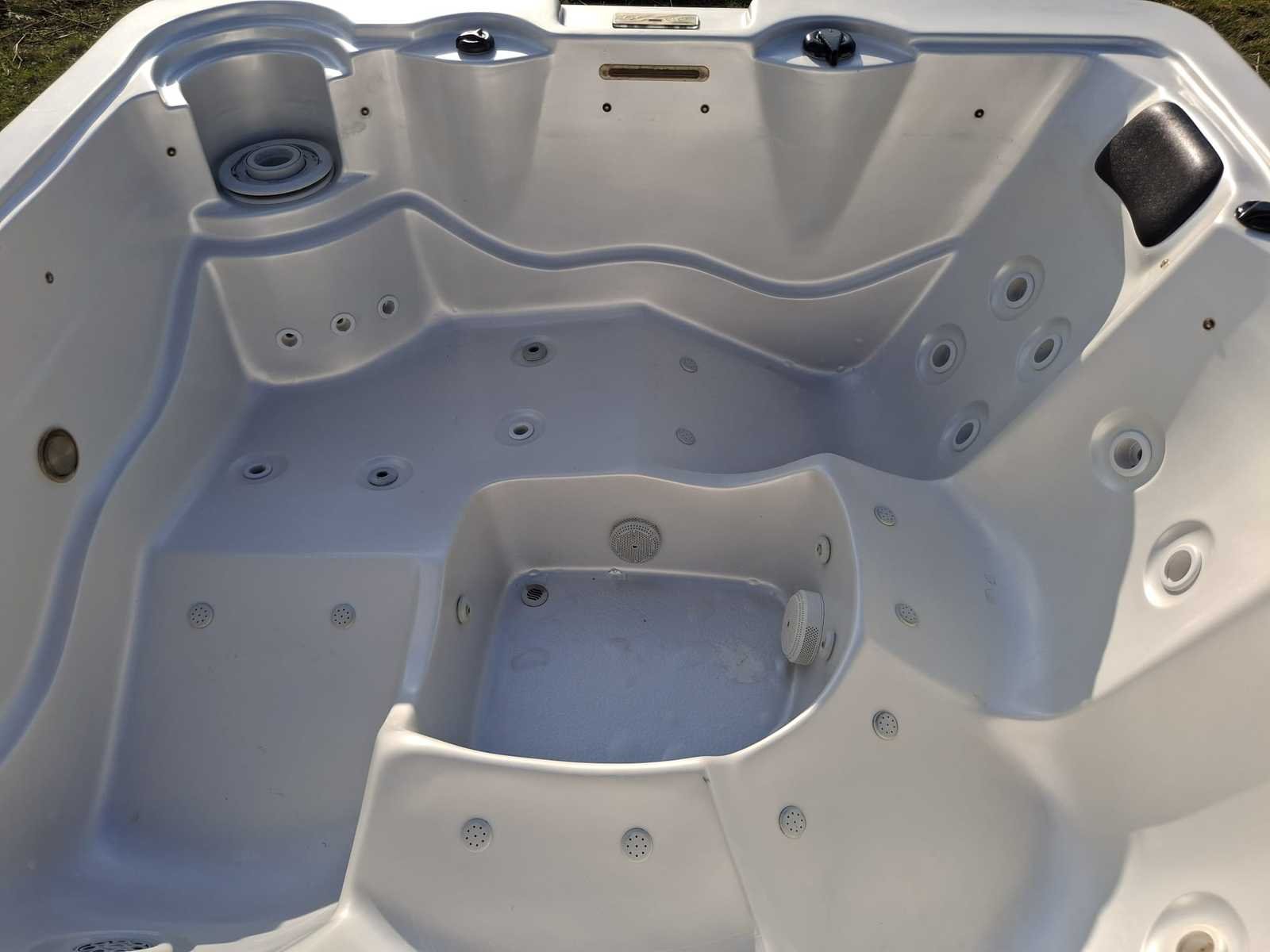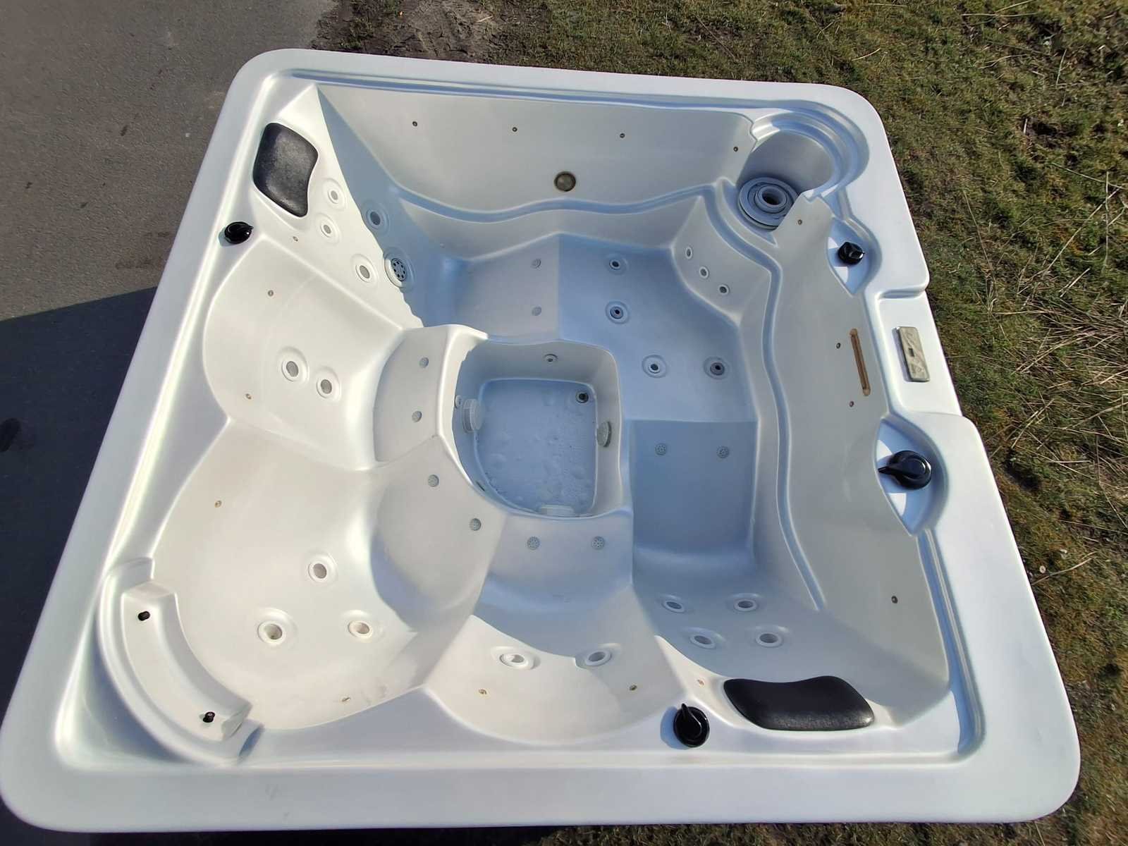 Voorzien van 2 ligplaatsen; 3 zitplaatsen; kunststof omkasting; waterval; inclusief cover; automatisch filtersysteem; Niet getest op functioneren (Marge, geen BTW) Merk: Balboa Model: 5 persoons Verlichting: Ja Aantal personen: 5 Lengte: 200cm Breedte: 200cm Hoogte: 85cm