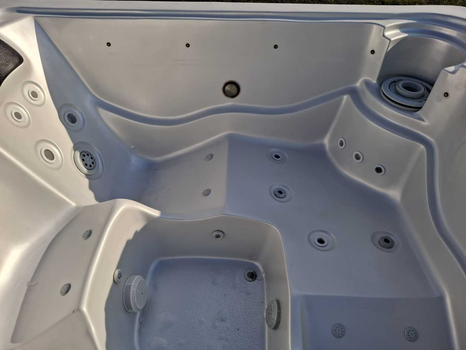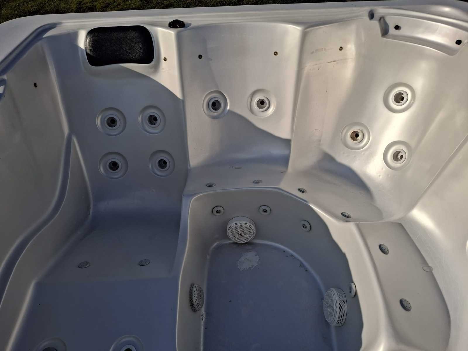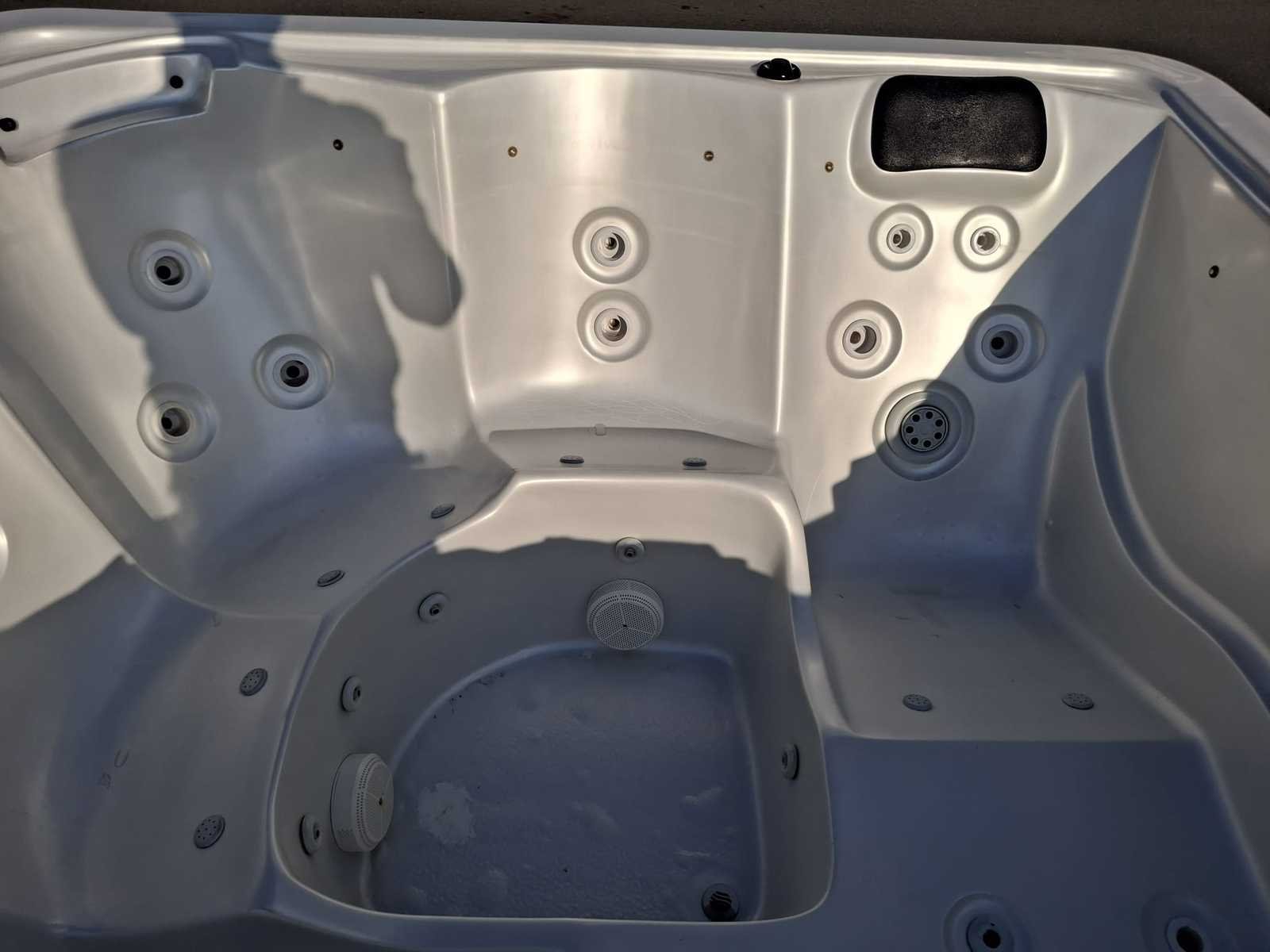 Voorzien van 2 ligplaatsen; 3 zitplaatsen; kunststof omkasting; waterval; inclusief cover; automatisch filtersysteem; Niet getest op functioneren (Marge, geen BTW) Merk: Balboa Model: 5 persoons Verlichting: Ja Aantal personen: 5 Lengte: 200cm Breedte: 200cm Hoogte: 85cm