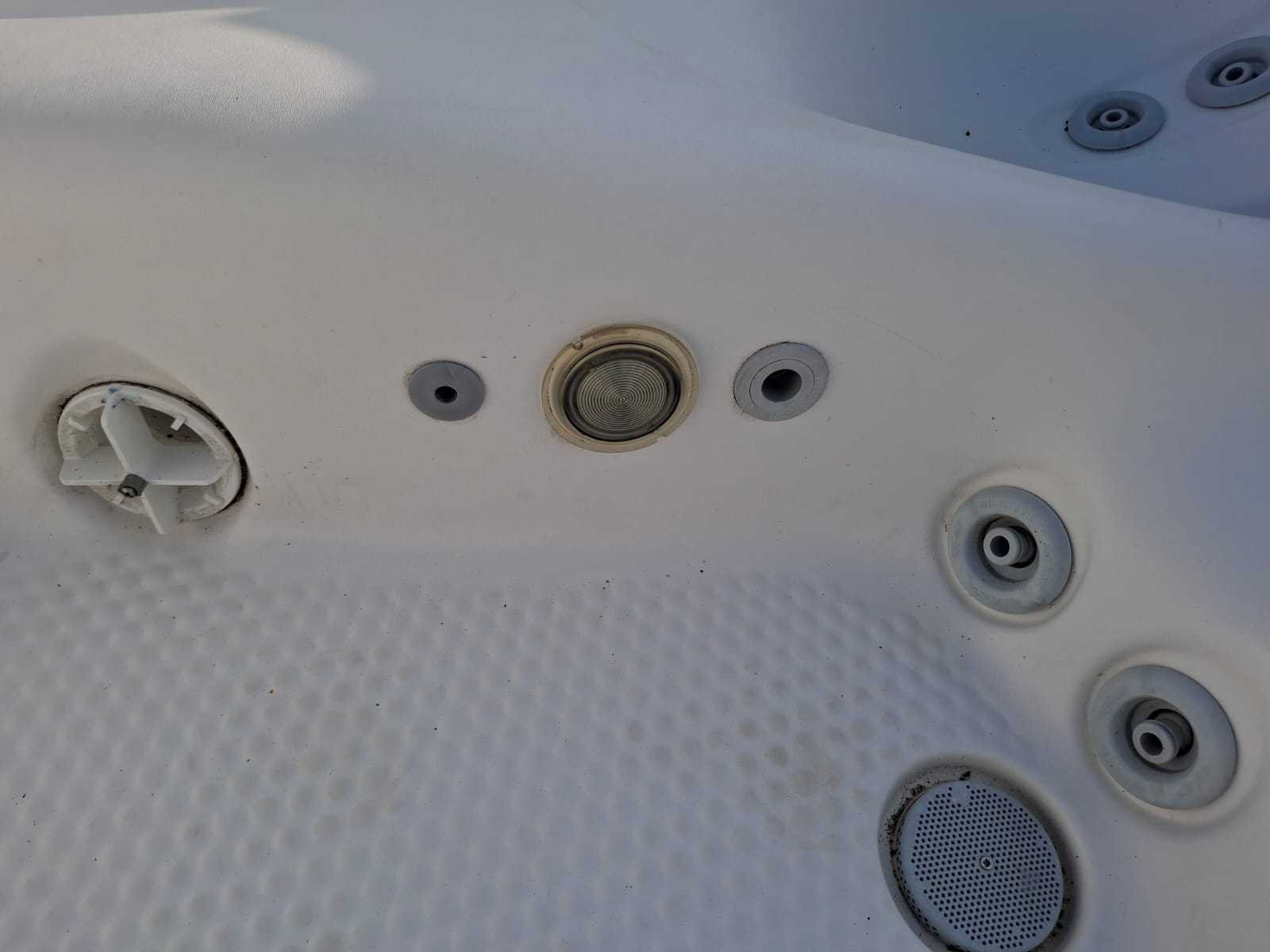 Voorzien van 1 ligplaatsen; 5 zitplaatsen; nek/schouder massage; kunststof omkasting; dubbel automatisch filtersysteem; hoofdkussens; Niet getest op functioneren (Marge, geen BTW) Merk: Demension one Model: 6 persoons Verlichting: Ja Jets: 40 Aantal personen: 6 Lengte: 200cm Breedte: 210cm Hoogte: 72cm