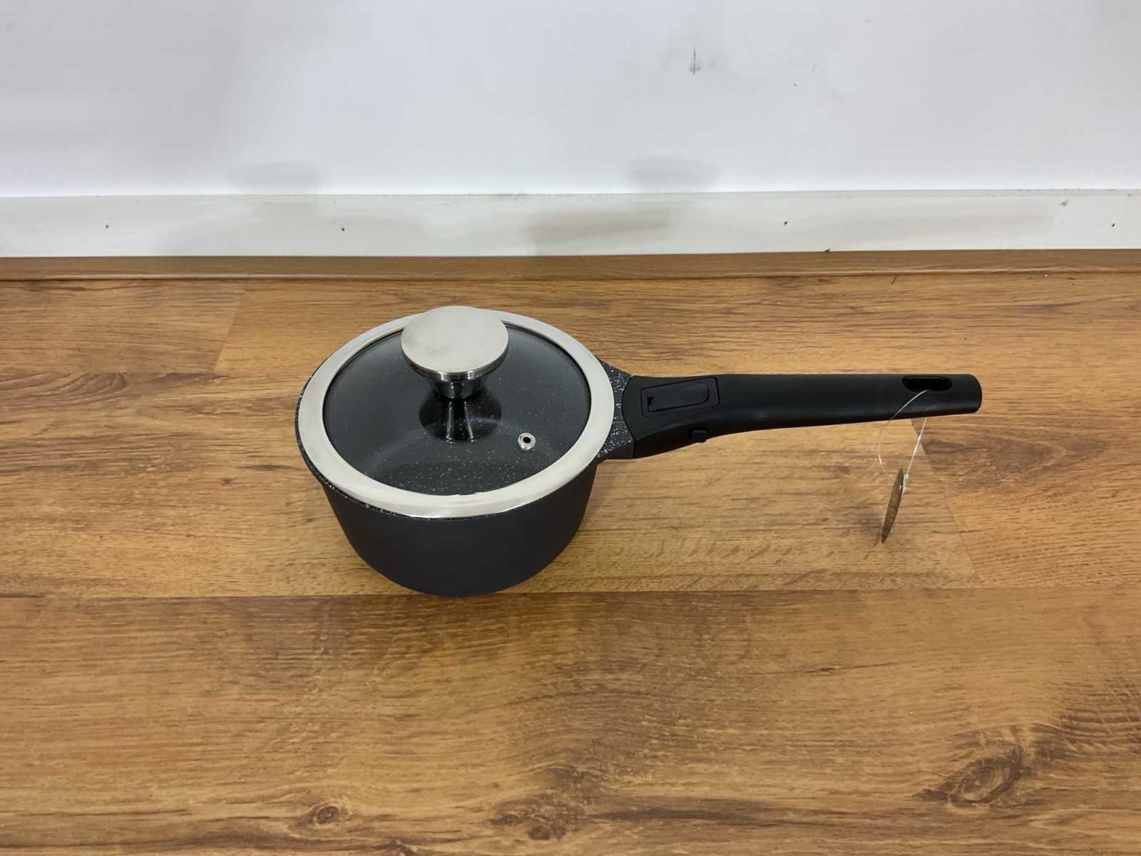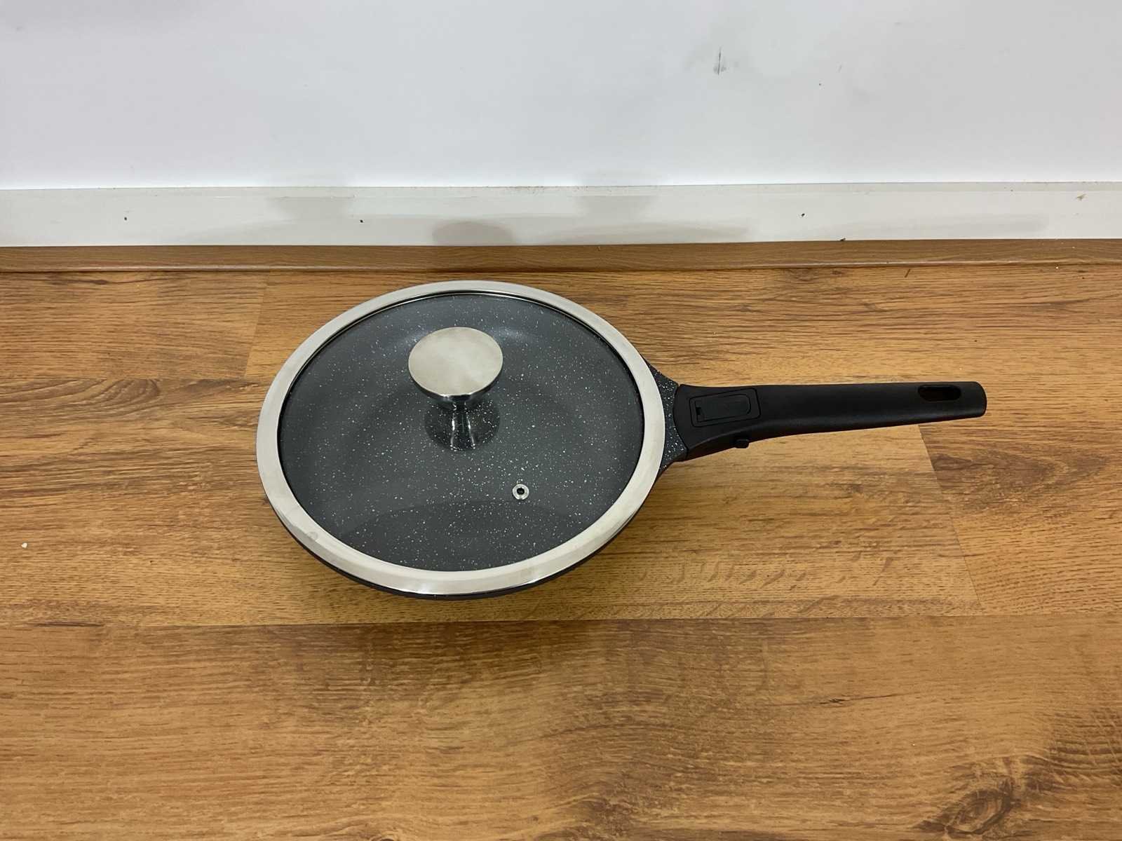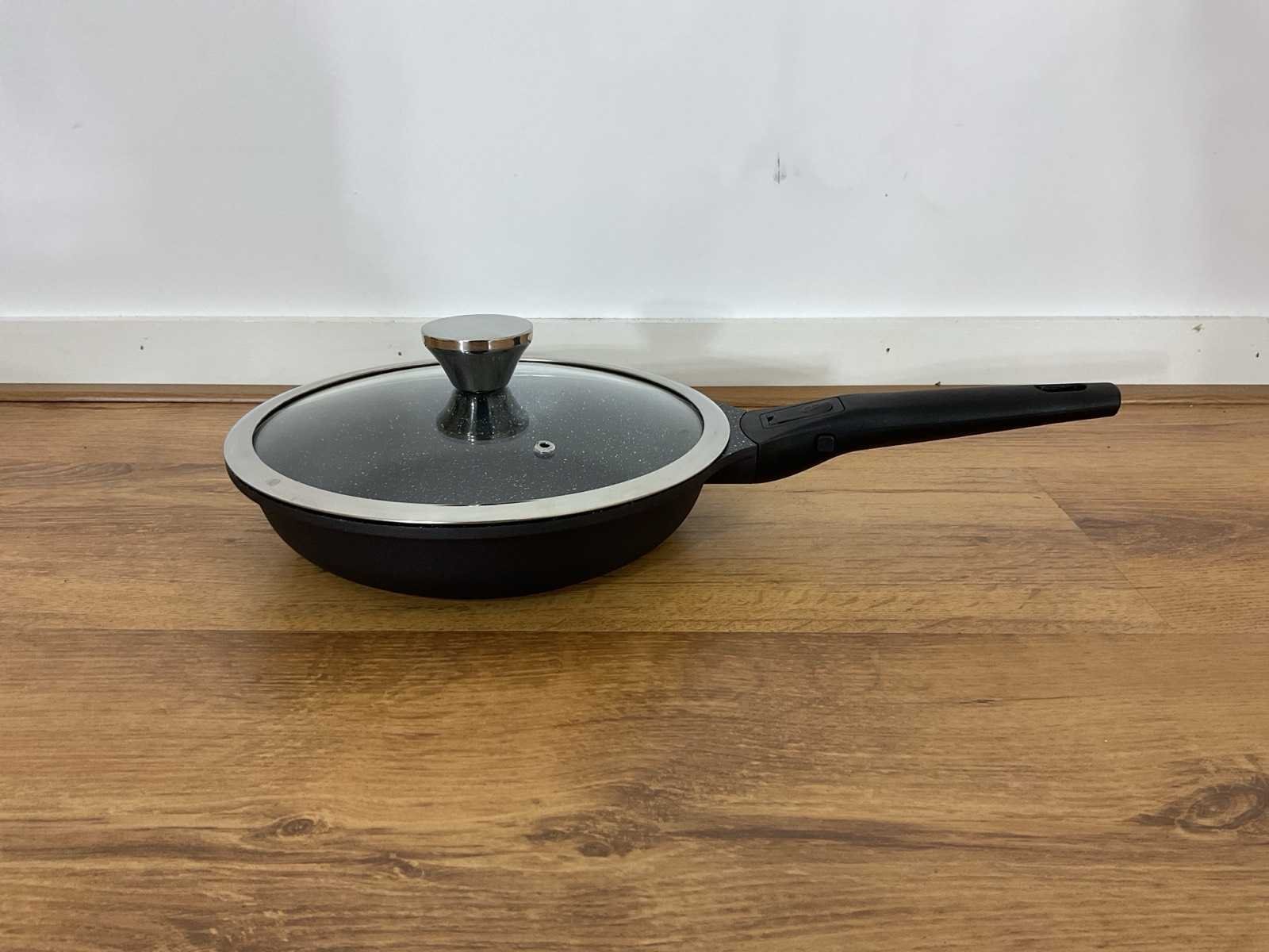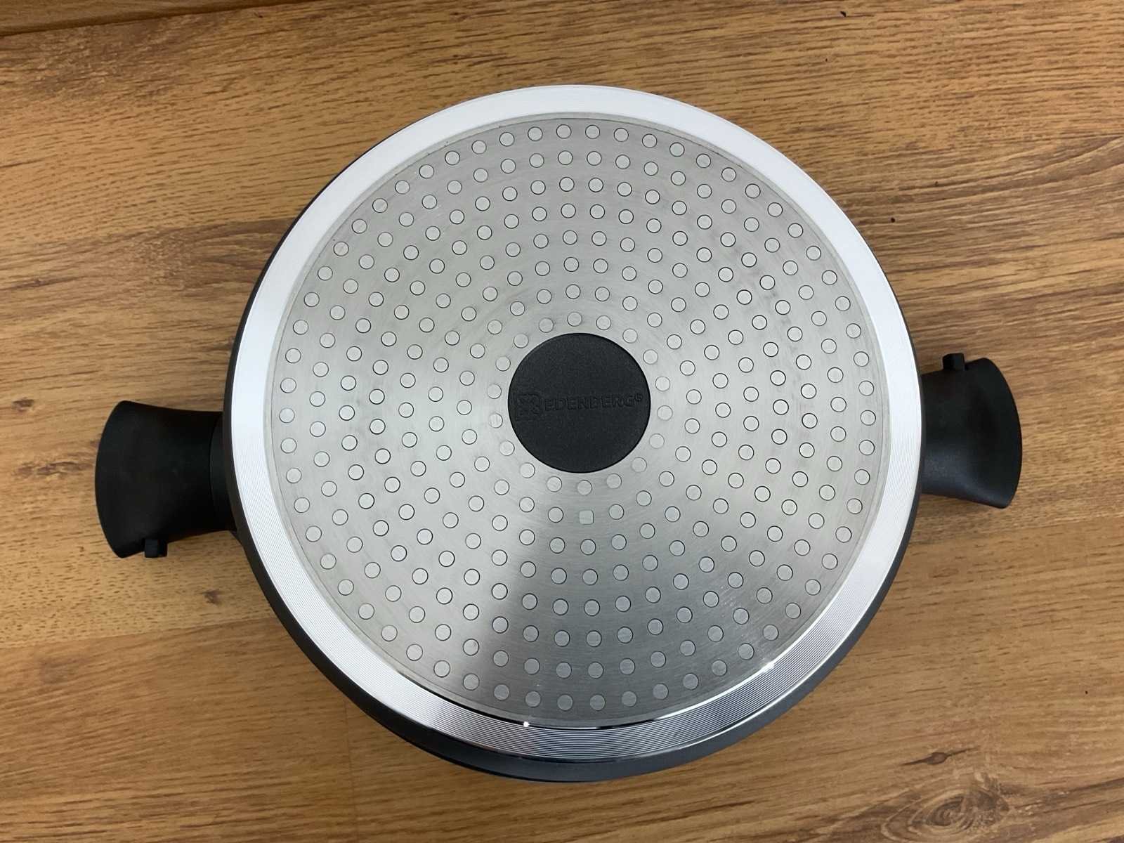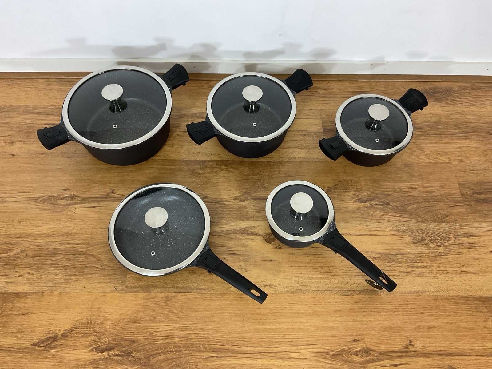 Merk: Edenberg Type: EB-5632 Serie: Premium Line Aantal delen: 10-delig Toepassing: Dagelijks koken / professioneel gebruik Materiaal: Gesmeed aluminium Coating: 3-laags marmer / keramische antiaanbaklaag Bodem: Inductie sandwichbodem (optimale warmteverdeling) Handgrepen: Ergonomisch, hittebestendig Deksel: Gehard glas met RVS rand Antiaanbaklaag: Ja (slijtvast en duurzaam) Vetarm koken mogelijk: Ja Geschikt voor alle warmtebronnen: Ja (gas, elektrisch, keramisch, inductie) Kookpan Ø20 cm – ca. 2,0 liter Kookpan Ø24 cm – ca. 4,0 liter Kookpan Ø28 cm – ca. 6,5 liter Steelpan Ø16 cm – ca. 1,5 liter Hapjespan / braadpan Ø24 cm – ca. 2,5 liter Inclusief bijpassende glazen deksels Vaatwasserbestendig: Ja Krasbestendig: Ja nieuw in verpakking Merk: Edenberg Model: EB-5632