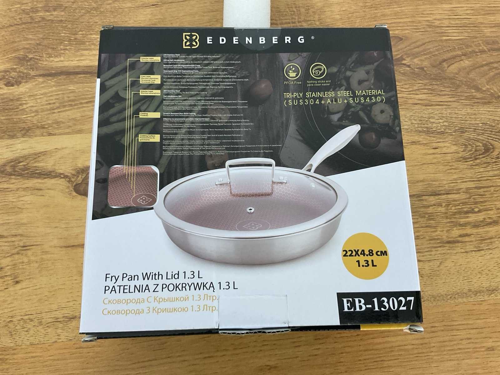 Perfecte antiaanbaklaag Sterke, krasbestendige coating Geschikt voor vetarm koken Verbeterde warmtegeleiding: wordt snel heet Gelijkmatige warmteverdeling Gemakkelijk schoon te maken Uiterst duurzaam Nieuw in doos Merk: Edenberg Model: EB-13027