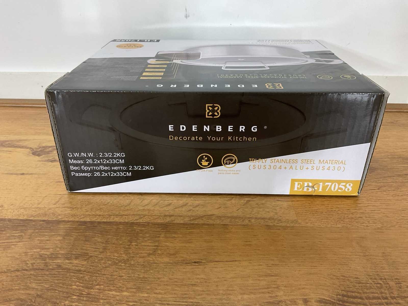 Geschikt voor alle warmtebronnen Inclusief deksel: Ja Kleur: Zilverkleurig Materiaal: RVS Vorm: Rond Cool touch handgreep: Ja Materiaal deksel: Glas MPN: EB-17058 Diameter: 24 cm Product breedte: 24 cm Product hoogte: 10.5 cm Product lengte: 24 cm Volume in liters: 4.3 Type anti-aanbaklaag: Keramisch Type handgreep: Ergonomisch Type pan bodem: Antiaanbaklaag Type deksel: Losse deksel Vaatwasserbestendig: Ja PFAS-vrij: ja Materiaal handgreep / handgrepen: RVS Nieuw in doos Merk: Edenberg Model: EB-17058