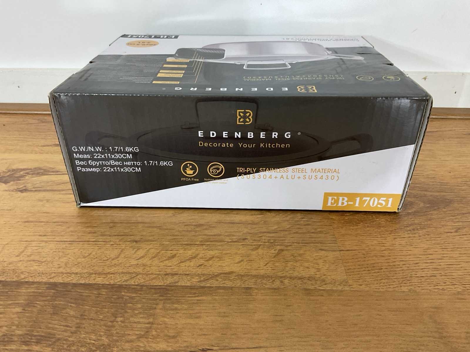 Perfecte antiaanbaklaag Sterke, krasbestendige coating Geschikt voor vetarm koken Verbeterde warmtegeleiding: wordt snel heet Gelijkmatige warmteverdeling Gemakkelijk schoon te maken Uiterst duurzaam Nieuw in doos Merk: Edenberg Model: EB-17051