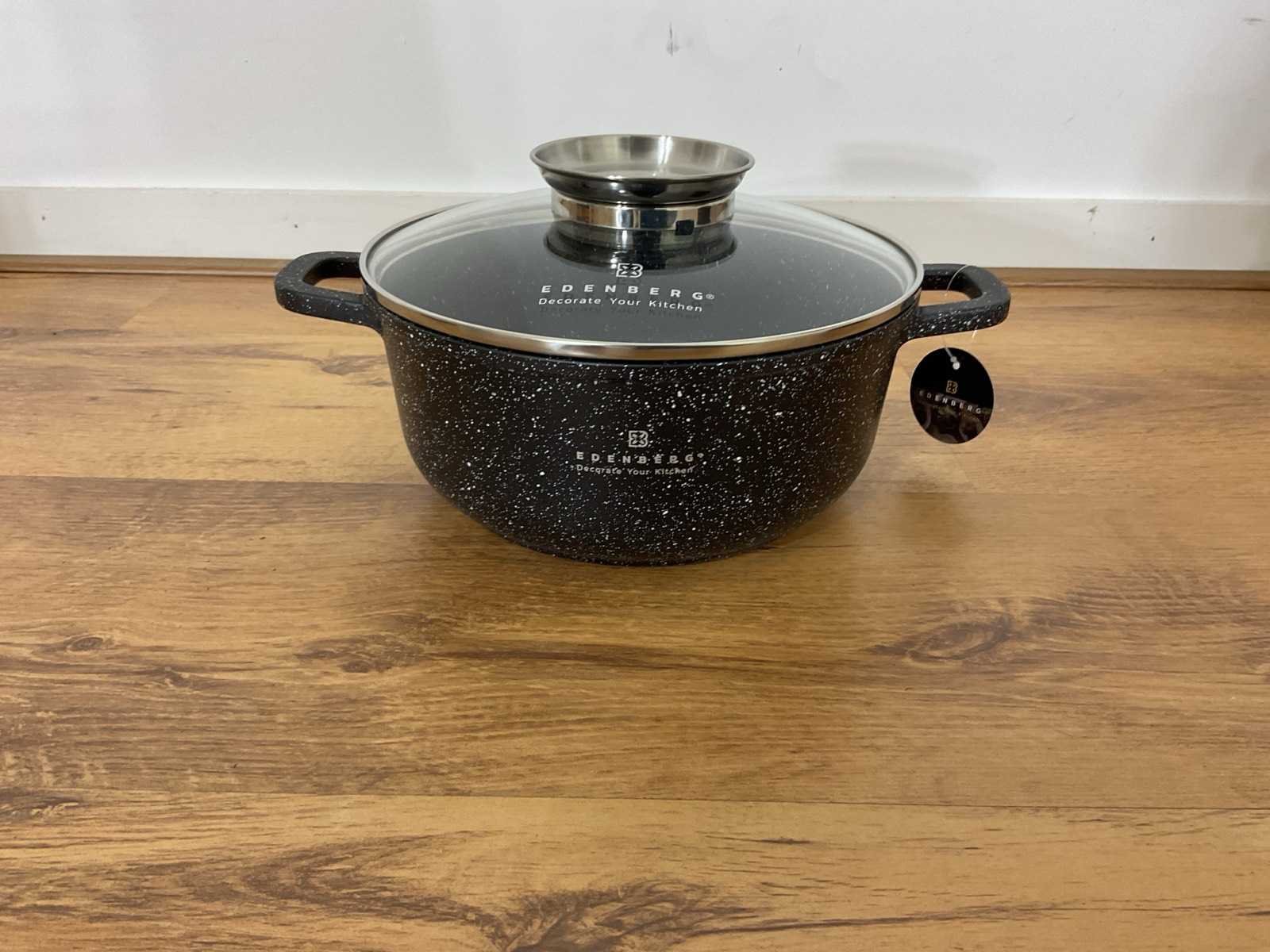 Geschikt voor alle warmtebronnen Inclusief deksel: Ja Kleur: Zwart Materiaal: Gietaluminium Vorm: Rond Cool touch handgreep: Ja Materiaal deksel: Glas MPN: EB-8117 Diameter: 22 cm Product breedte: 22 cm Product hoogte: 15 cm Product lengte: 22 cm Volume in liters: 3.3 Type anti-aanbaklaag: Keramisch Type handgreep: Ergonomisch Type pan bodem: Antiaanbaklaag Aantal delen: 2 Diameter pan onderzijde: 17 cm Vaatwasserbestendig: Ja PFAS-vrij: ja Materiaal handgreep / handgrepen: Aluminium Antiaanbaklaag: Ja Nieuw in doos Merk: Edenberg Model: EB-8117