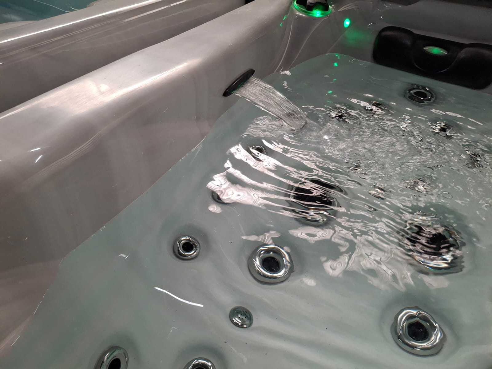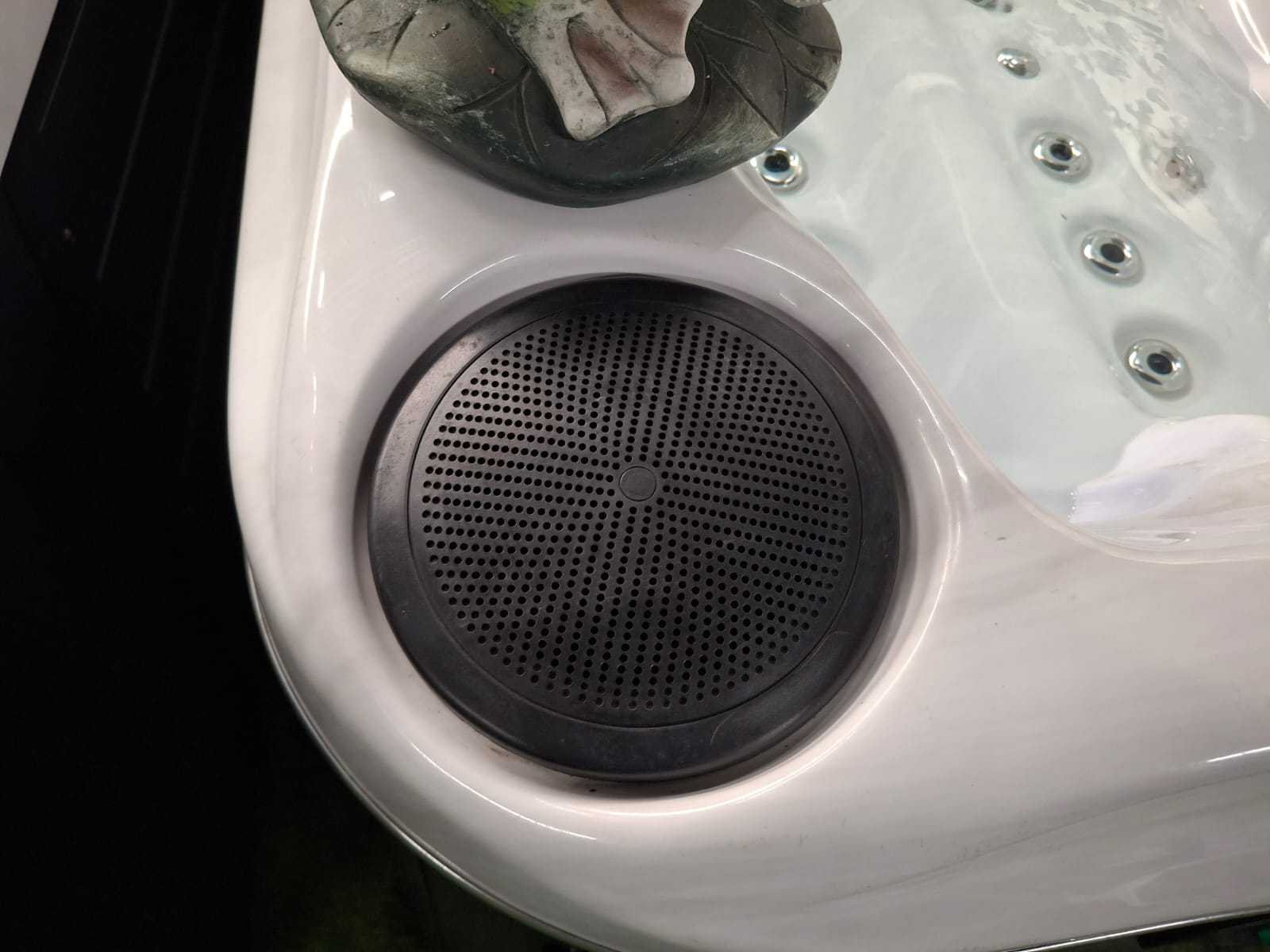 Voorzien van verlichting in hoek panelen; hoofdkussens; waterval; 2 ligplaatsen; 5 zitplaatsen; cover; speakers; kunststof omkasting; bekerhouders; automatisch filtersysteem (Marge, geen BTW) Merk: Balboa Model: 7 persoons Verlichting: Ja Inhoud: 1650l Jets: 150 Aantal personen: 7 Lengte: 305cm Breedte: 228cm Hoogte: 91cm