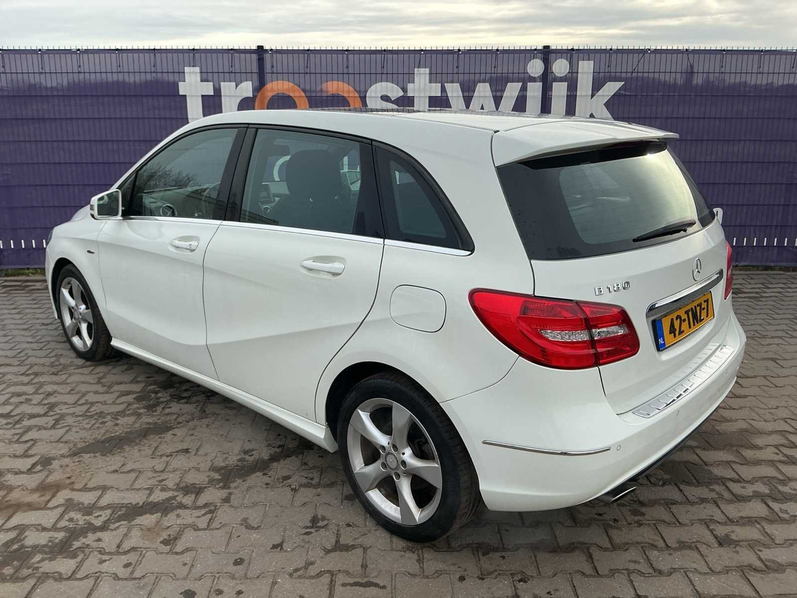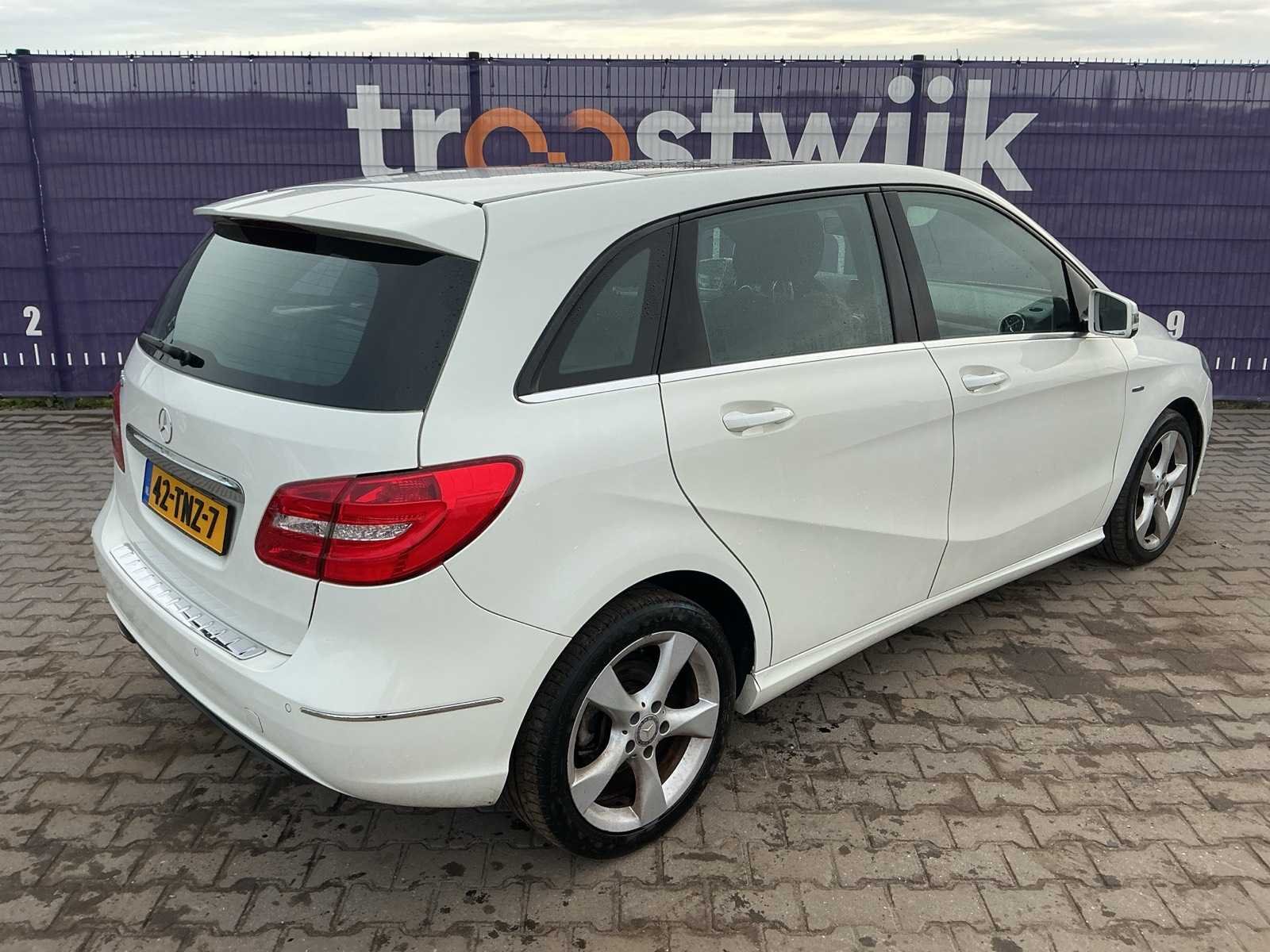 Elektrische ramen; elektrisch verstelbare spiegels; multifunctioneel stuurwiel; Radio/CD; Airco; PDC Kenteken: 42-TNZ-7 Merk: Mercedes-Benz Model: B-klasse Type: 180 Ambition Bouwjaar: 2012 Afgelezen kilometerstand: 180024km Cilinderinhoud: 1595cc Vermogen (kW): 90kW Brandstof: Benzine Chassisnummer: x NAP status: Logical Datum eerste toelating: 2012-03-13 APK vervaldatum: 2026-09-04 Vermogen (pk): 121hp Energielabel: B Aandrijving: FWD Aantal zitplaatsen: 5 Maximaal trekgewicht ongeremd: 1200kg Maximaal trekgewicht geremd: 710kg Kleur: wit Transmissie: Semi-Automatisch (7) Drive type: Front wheel Emissieklasse: 5 Aantal deuren: 4 Ledig gewicht: 1325kg Bruto BPM (NL): 4810€ Rest BPM: 403€ Aantal cilinders: 4 Carrosserie: Stationwagen CO2-uitstoot NEDC: 137 Carfax Link: https://was.carfax.eu/v0/api/ccdid/5100016408/svc/201/vinreg/42TNZ7/checksum/eyJhbGciOiJIUzI1NiIsInR5cCI6IkpXVCJ9.eyJleHAiOjE3ODEzNDk3Njh9.eKXQ2yKWvSVkkV-sDyirkymO-3pAyJx7RWwsNHXyrfY