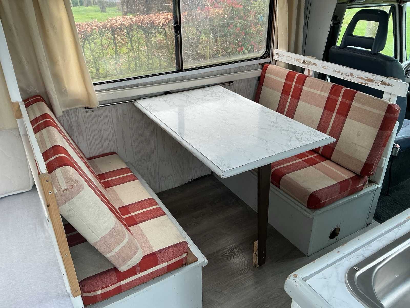 V.v. toilet; keukenblok; 2-pits gasfornuis; wasbak; opbergvakken; luifel; zithoek, ombouw mogelijkheid tot bed; bank achter; dakluik Kenteken: VZ-NS-94 Merk: peugeot Model: 280 H52C Handelsbenaming: 280 H52C Datum eerste toelating: 1989-09-01 APK vervaldatum: 2027-01-09 Afgelezen kilometerstand: 131069km NAP status: Illogical Vermogen (kW): 55kW Vermogen (pk): 74hp Emissieklasse: 0 Brandstof: diesel Kleur: niet van toepassing Carrosserie: Kampeerwagen Ledig gewicht: 2360