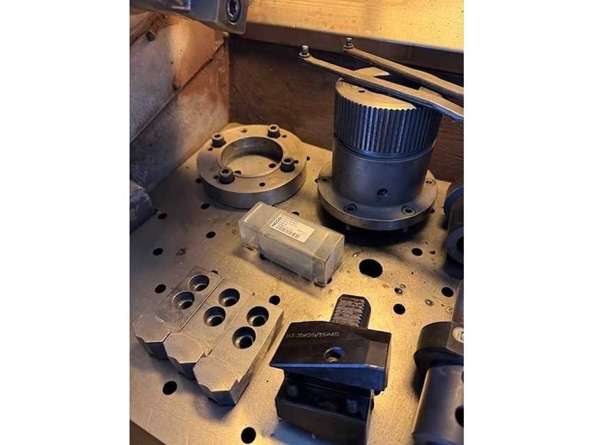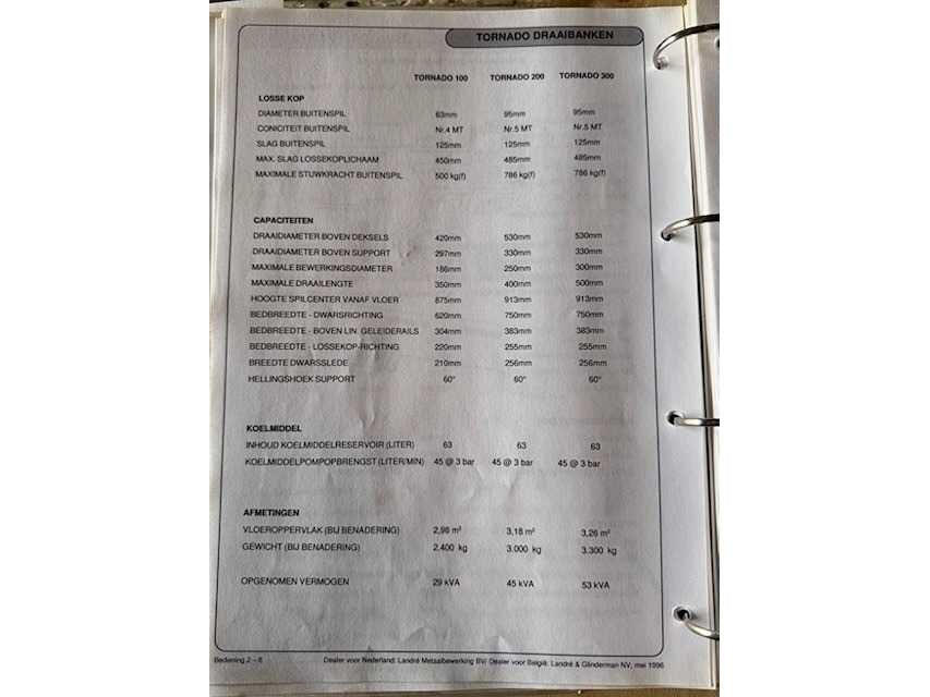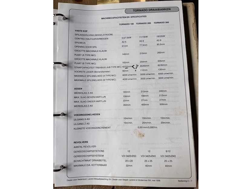 12 voudige VDI gereedschapswisselaar met wisselhouders (excl. gereedschap) Merk: Colchester Type: Tornado 100 Bouwjaar: 1995 Serienummer: C10292 Draai: 297mm Draailengte: 350mm Holle spil Ø: 61mm CNC-besturing, merk, type: Fanuc O-T Aansluiting: 400V