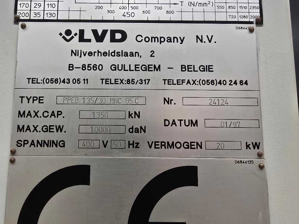 Inclusief diverse gereedschappen Merk: LVD Type: PPEB 135/30 MNC 95C Bouwjaar: 1997 Serienummer: 24124 Capaciteit.: 135t Werklengte: 3100mm Aantal assen: 6 CNC-besturing, merk, type: MNC 95/C Aansluiting: 400V