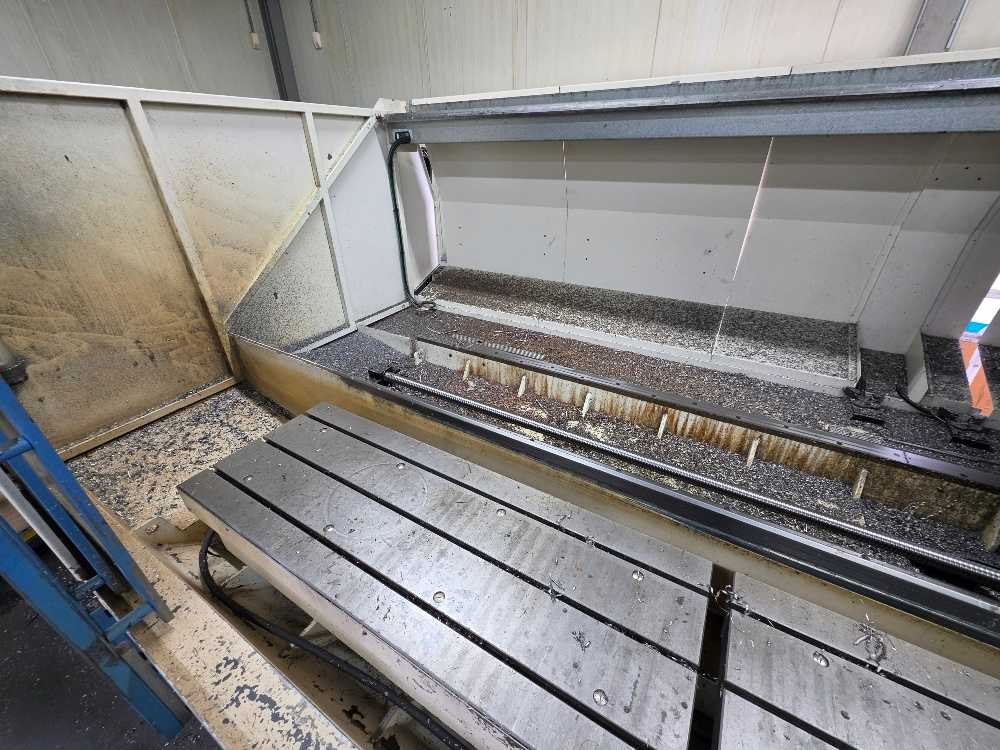 Excl. gereedschappen; voorzien van Heidenhain CNC besturing; machine is goed werkend maar heeft geringe speling op de X as Merk: AXA Type: VSC-1-4000-M/E Bouwjaar: 2000 Serienummer: 85871 Verplaatsing x-as: 4000mm Verplaatsing y-as: 550mm Verplaatsing z-as: 600mm Opname iso: 40 Spanentransporteur: true Aansluiting: 400V Machinegewicht: 12000kg