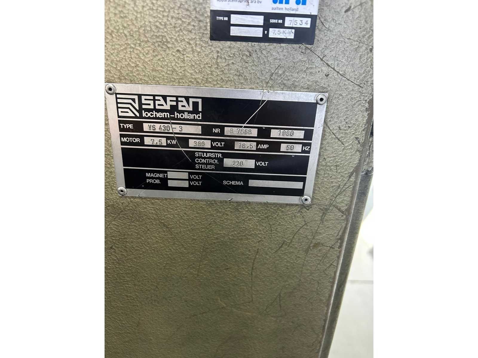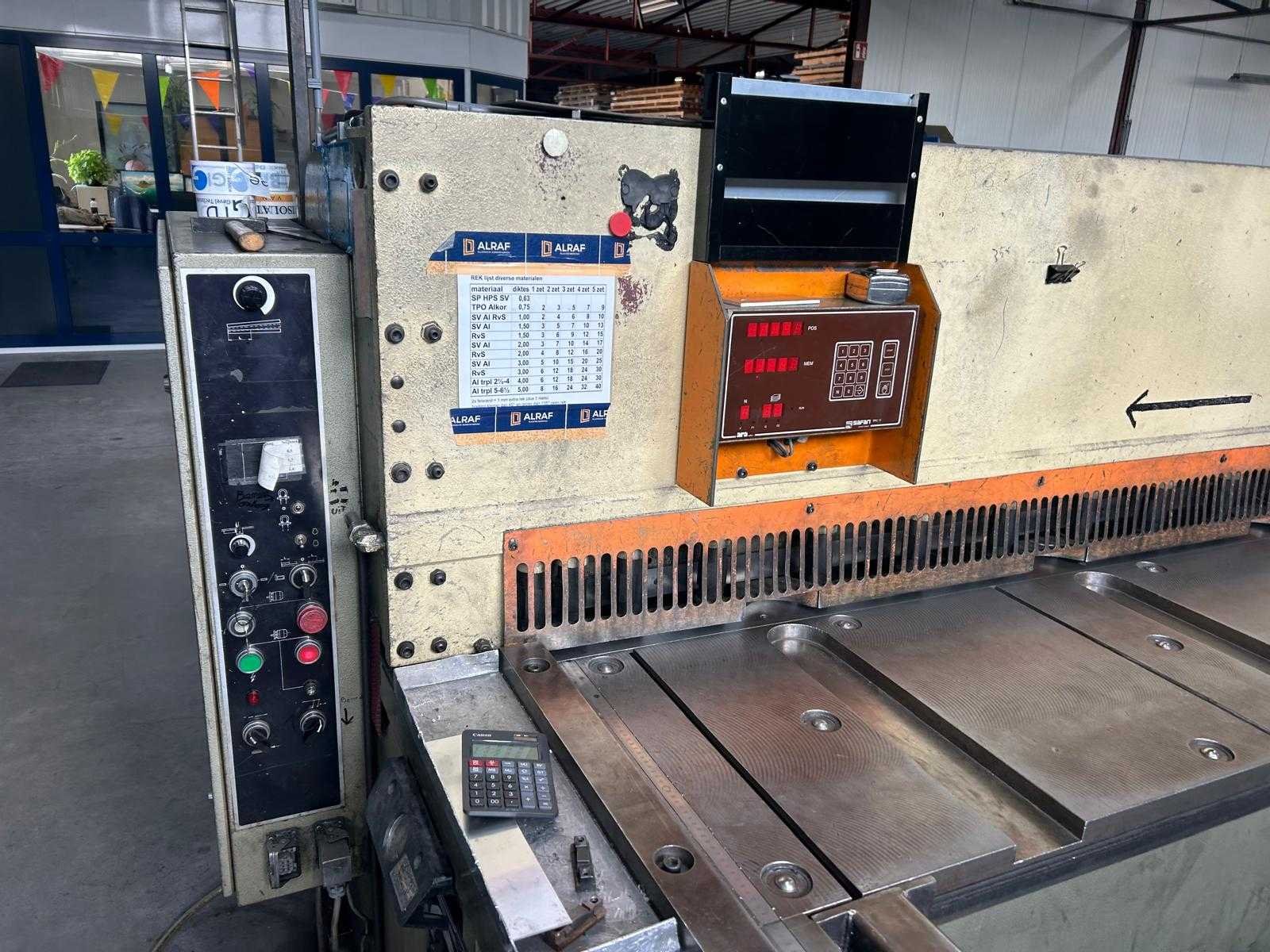 Merk: Safan Type: VS 430 3 Bouwjaar: 1990 Snijlengte: 4300mm Max. plaatdikte: 3mm Aansluiting: 400V
