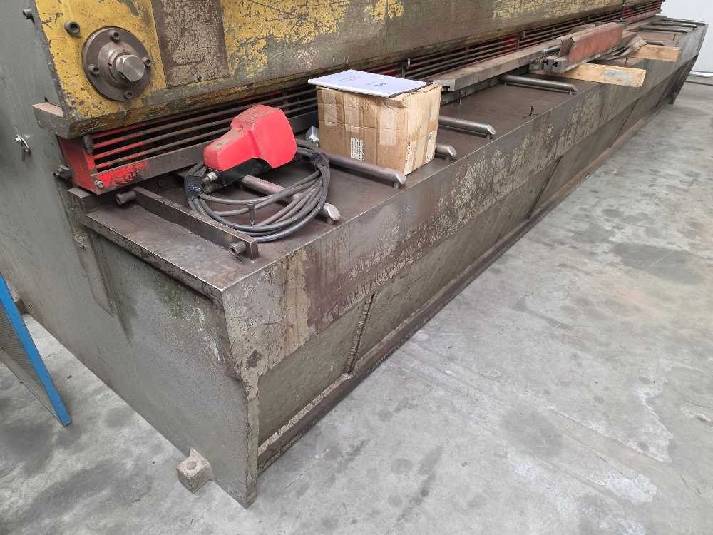 Machine in goed werkende staat; scheur in zijkant Merk: Darley Type: VS 6100 X 8 Bouwjaar: 1993 Serienummer: 11.2023 Snijlengte: 6100mm Max. plaatdikte: 8mm Besturing, merk, type: Luna Aansluiting: 400V