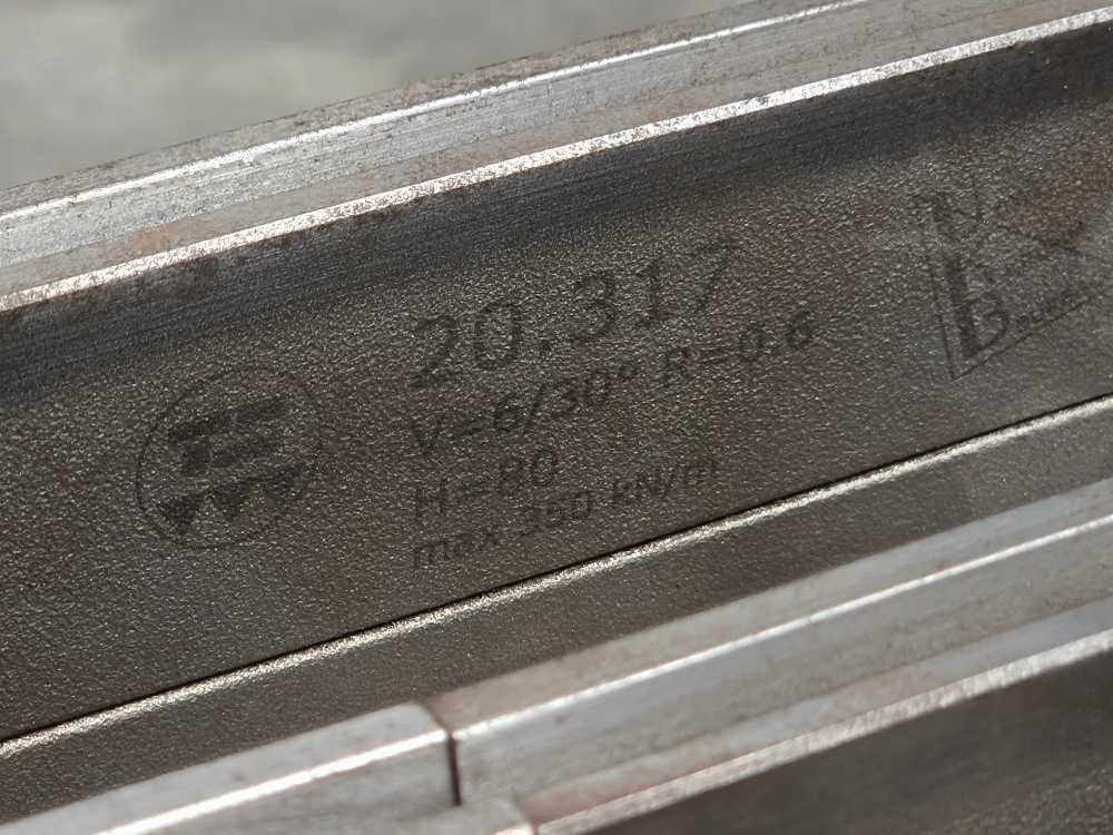 V6 30 graden T matrijs set; lengte ca 3,1 meter Merk: Kantbank Type: Ondergereedschap Serienummer: 20.317 UKB