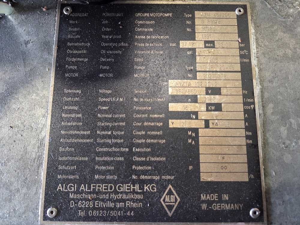 Merk: Algi Alfred Giehl KG Type: AZH 45 206 Bouwjaar: 1991 Aansluiting: 400V