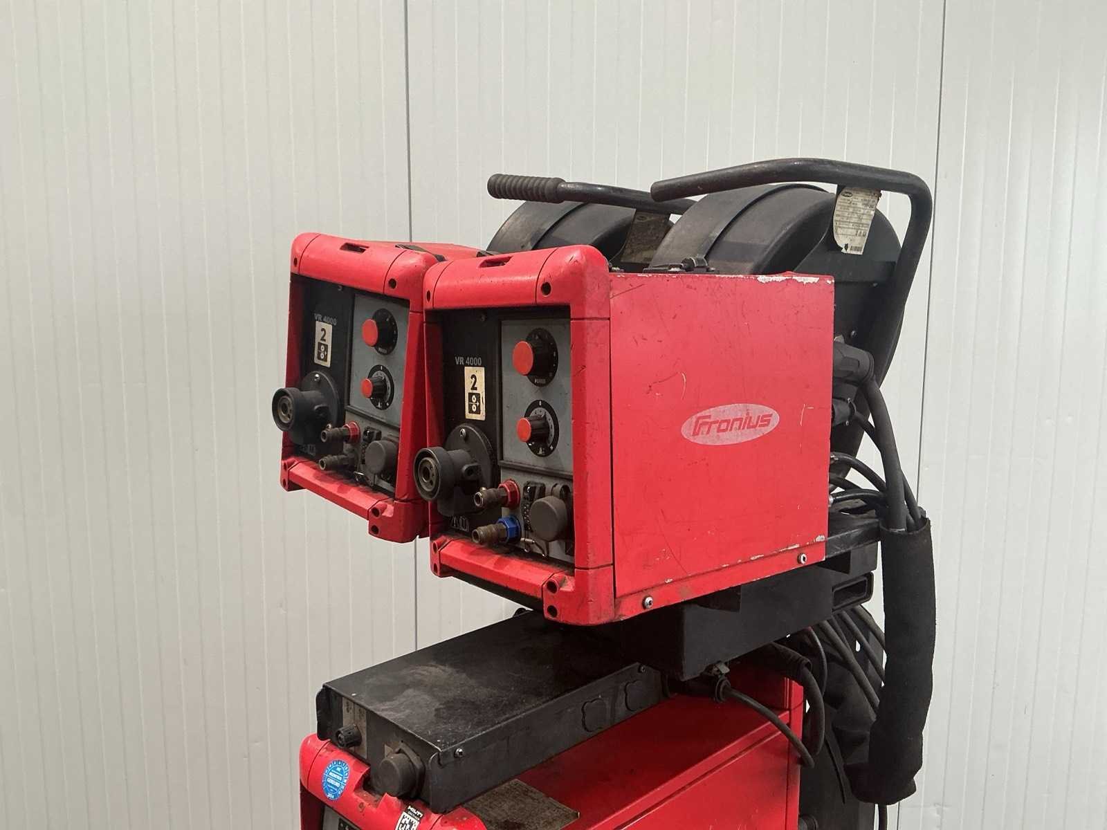 V.v. dubbele koffer Merk: Fronius Type: TransSynergic 4000 Mig type: true Tig type: true Electrode type: true Inverter type: true Ampère belasting: 400A Draadaanvoerunit: true Digitale uitlezing: true