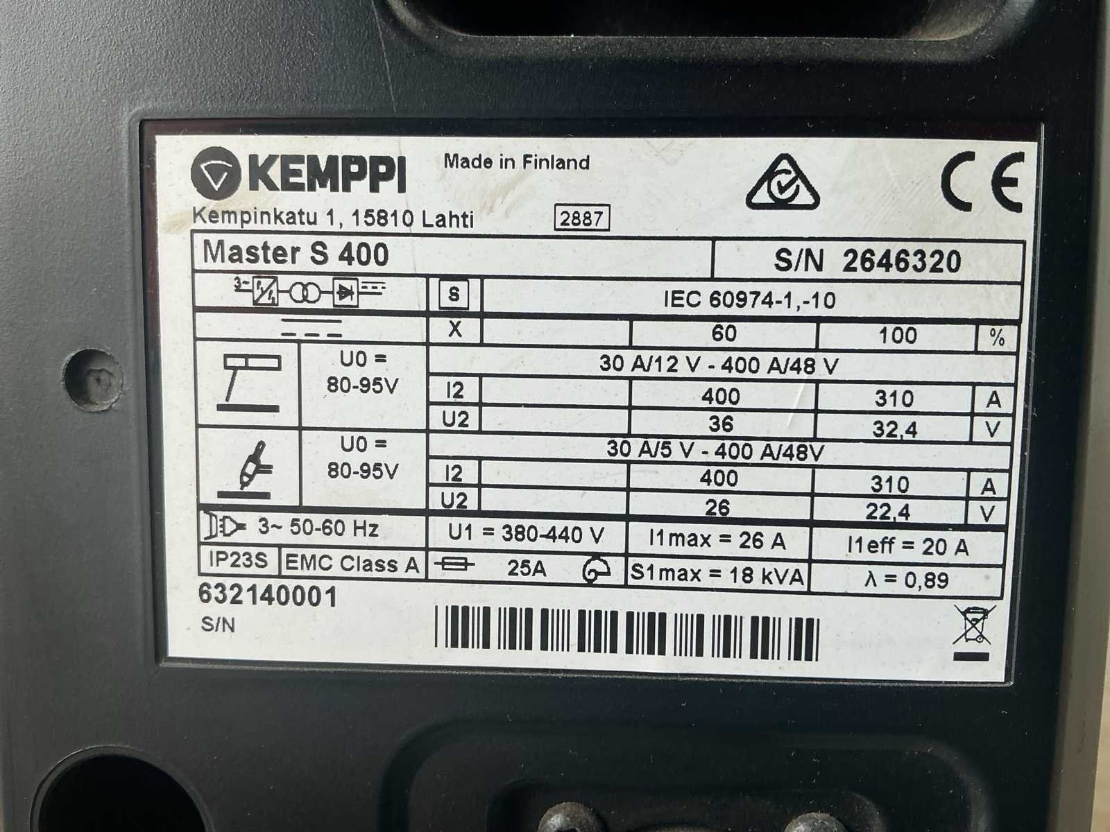 Merk: KEMPPI Type: Master S 400 Electrode type: true Inverter type: true Draagbaar: true Ampère belasting: 400A Digitale uitlezing: true