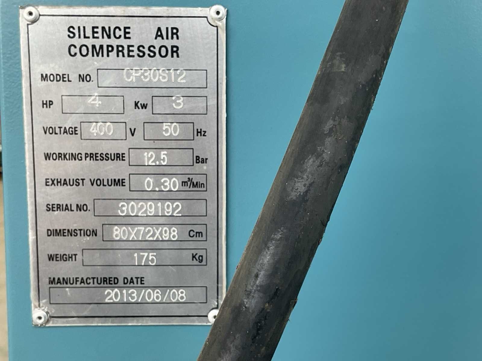 Merk: ZionAir Type: 4HP Capaciteit.: 12.5bar Vermogen: 3kW Aansluiting: 400V