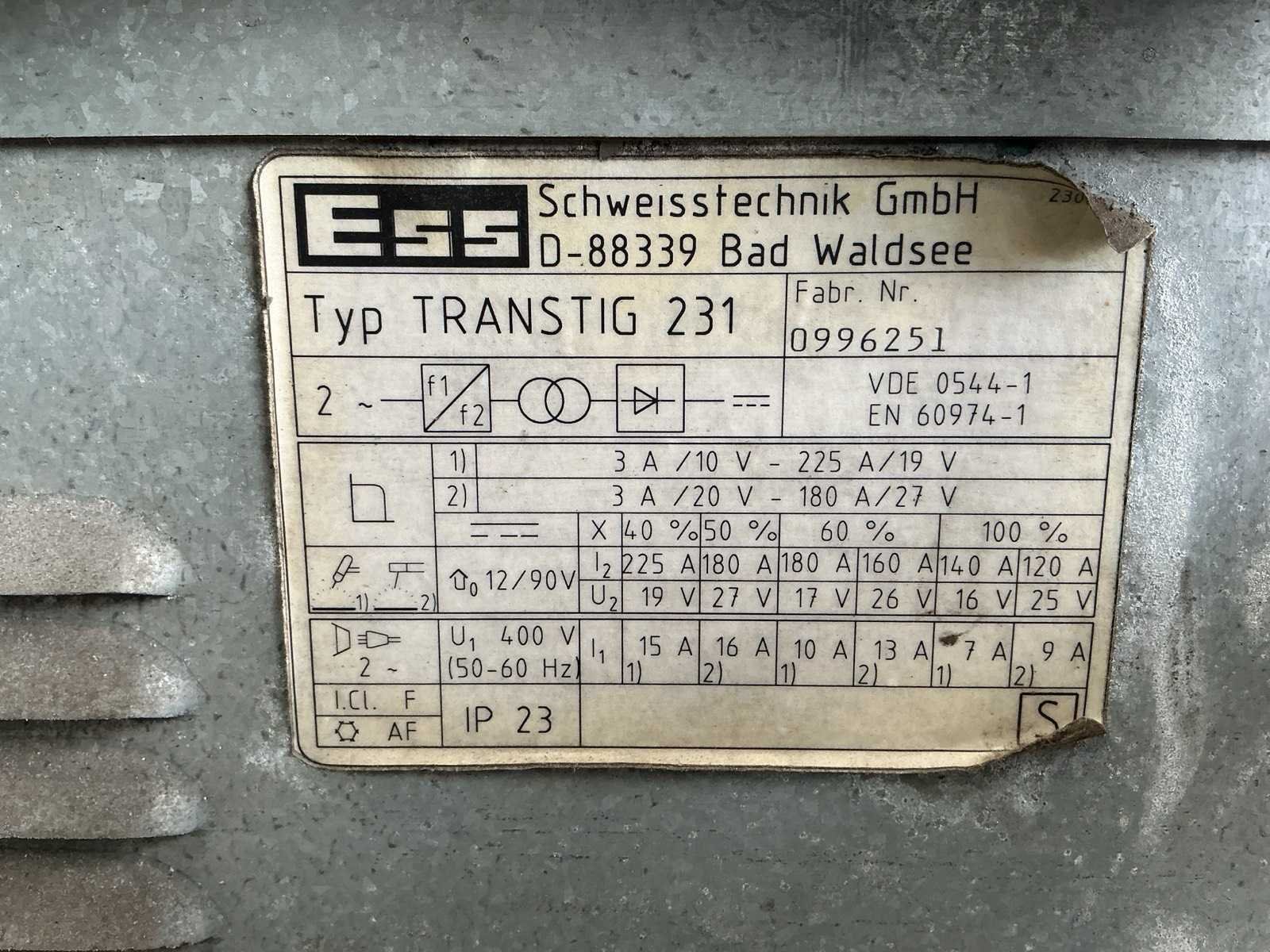 Merk: ESS Type: TransTig 231 Tig type: true Electrode type: true Ampère belasting: 230A Digitale uitlezing: true Aansluiting: 400V