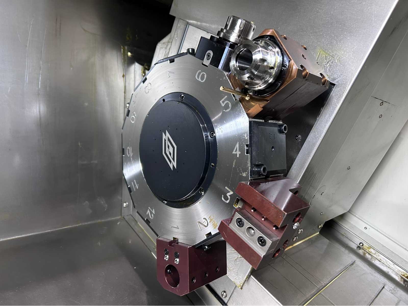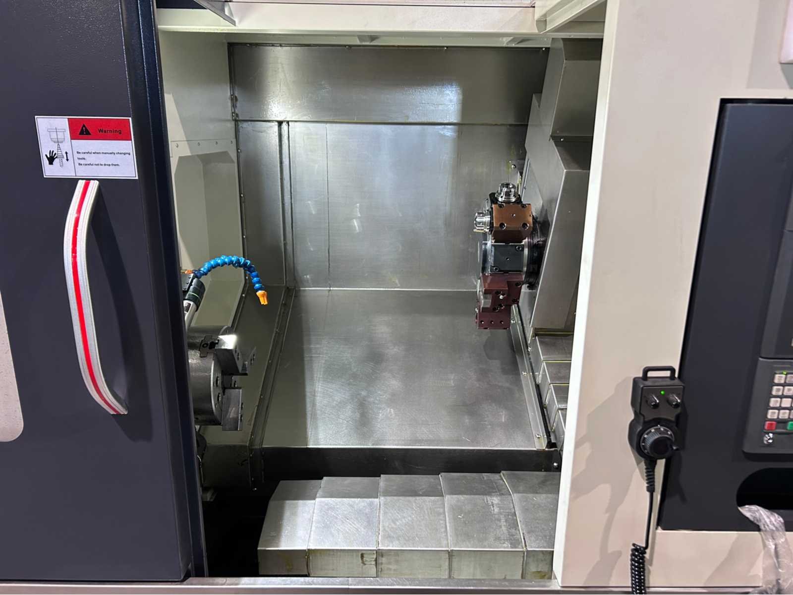 NIEUWE ONGEBRUIKTE MACHINE MET AANGEDREVEN GEREEDSCHAP EN Y-AS!! Specificaties: Spil: - Spoelgatdiameter: 65 mm - Staafkast: 51 mm - Chuck: 10" - Maximale spilsnelheid: 2600 tpm Capaciteit: - Max. Schompeldiameter over het bed: 600 mm - Max. Draaidiameter: 420 mm - Max. Draailengte: 550 mm - X-as: 280mm - Z-as: 650 mm - Y-as: +/- 50mm - C-as: ja Voedingssnelheid: - Snelle traverse X: 20 m/min - Snelle traverse Z: 25 m/min Toren: - Posities op de toren: 12 - Aangedreven gereedschap: ja - Gereedschapsschacht: BMT-55 Staart: - Staartstock ganzenveren: MT-5 - Veerweg: 600mm Nauwkeurigheid: - Positioneringsnauwkeurigheid: 0,008 mm - Nauwkeurigheid van herhaalde positionering: 0,008 mm De machine is uitgerust met: - Chiptransporteur - Gereedschapszetter - Alle gereedschappen in de koepel inbegrepen - Staartstuk - Tooling zoals te zien op foto's Merk: GloryMaQ Type: GM-60HY Bouwjaar: 2025 Serienummer: CR60HY2509071 Draai: 420mm Draailengte: 550mm Holle spil Ø: 52mm Snelheid tot n =: 2500rpm Aantal gereedschapwisselstations: 12 Koelmiddelpomp: true Spanentransporteur: true CNC-besturing, merk, type: Siemens Sinumerik 828D Motorvermogen (kW): 15kW Aansluiting: 400V Handboek aanwezig: true Machinegewicht: 5800kg Afmeting l: 3150mm Afmeting b: 1850mm Afmeting h: 1950mm