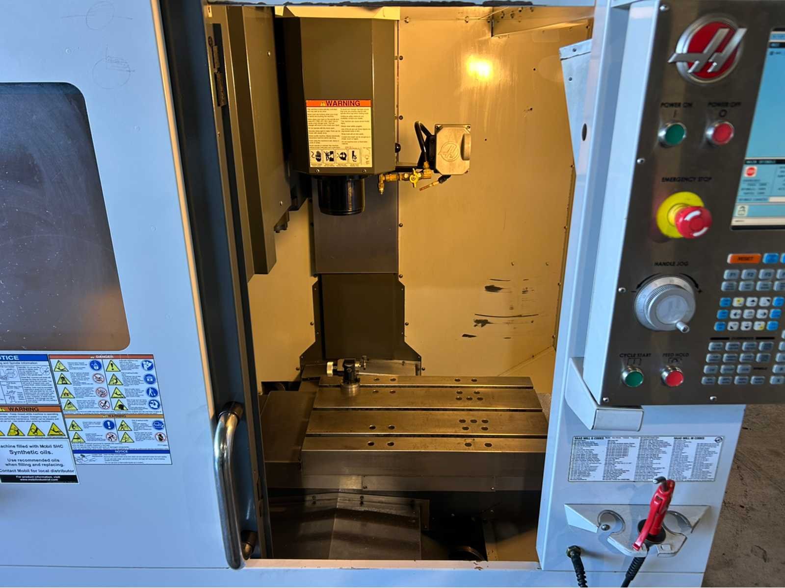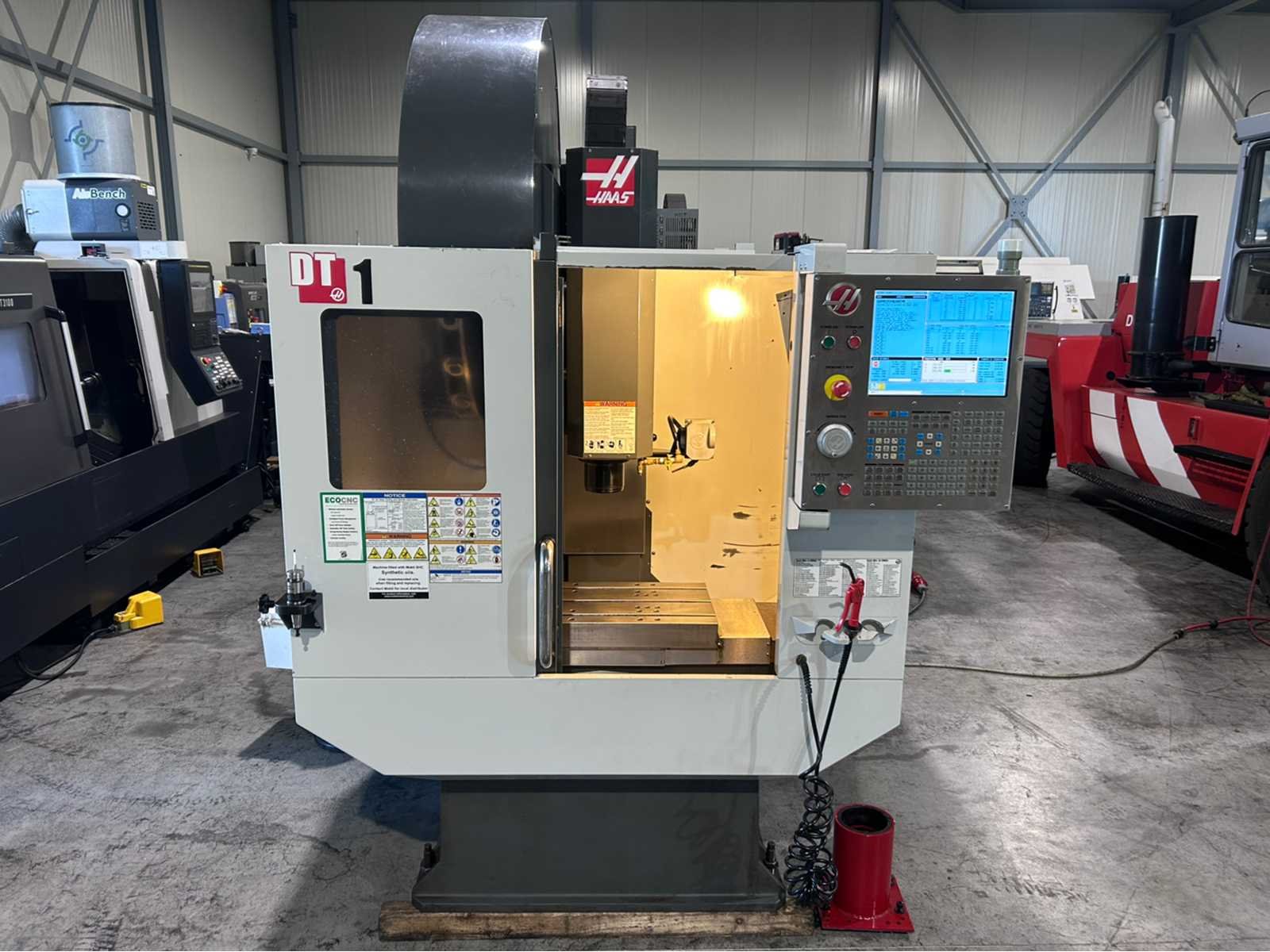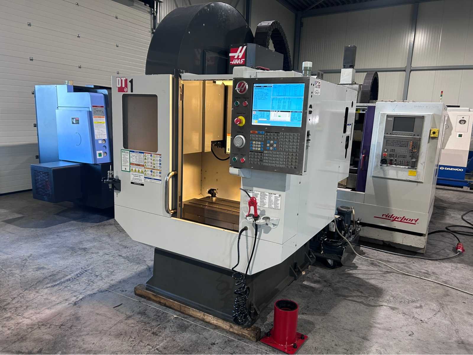 Specificaties: Controle: Haas NGC Openingstijden: 1892 X-as: 508mm Y-as: 406 mm Z-as: 394mm Toevoersnelheid XYZ: 61 m/min Tafelgrootte: 660mm x 381mm Max. Tafelbelasting: 113 kg Spiltaps: BT-30 Spilsnelheid: 15,000 tpm Spilmotorvermogen: 29 kW Posities op ATC: 20 De machine is uitgerust met: - chiptransporteur - Renishaw / Haas OTS-sonde - Renishaw OMP 40-2 sonde - doorspoelkoelmiddel - voorbereid op de 4e en 5e as - extra koelvloeistoffilter Merk: Haas Type: DT-1 Bouwjaar: 2011 Serienummer: 1084259 Opname iso: BT-30 Verplaatsing x-as: 508mm Verplaatsing y-as: 406mm Verplaatsing z-as: 394mm Snelheid van n =: 1rpm Snelheid tot n =: 15000rpm Afgelezen urenstand: 1892 CNC-besturing, merk, type: Haas Spanentransporteur: true Koelmiddelpomp: true Werkstuk gewicht max.: 113kg T-gleuf opspantafelafmeting B: 381mm T-gleuf opspantafelafmeting L: 660mm -assig: 3 Motorvermogen (kW): 29kW Aansluiting: 400V Totale afmeting Hoogte: 2550mm Totale afmeting Breedte: 2200mm Totale afmeting L: 1800mm Machinegewicht: 2400kg