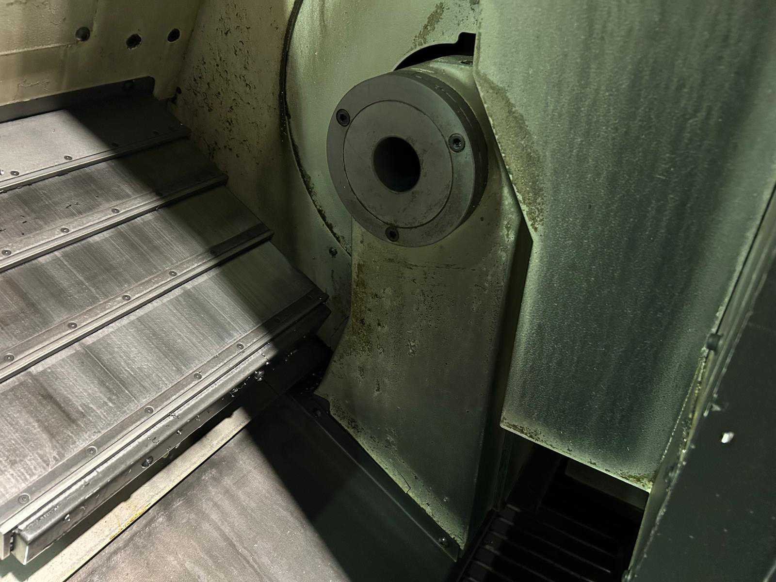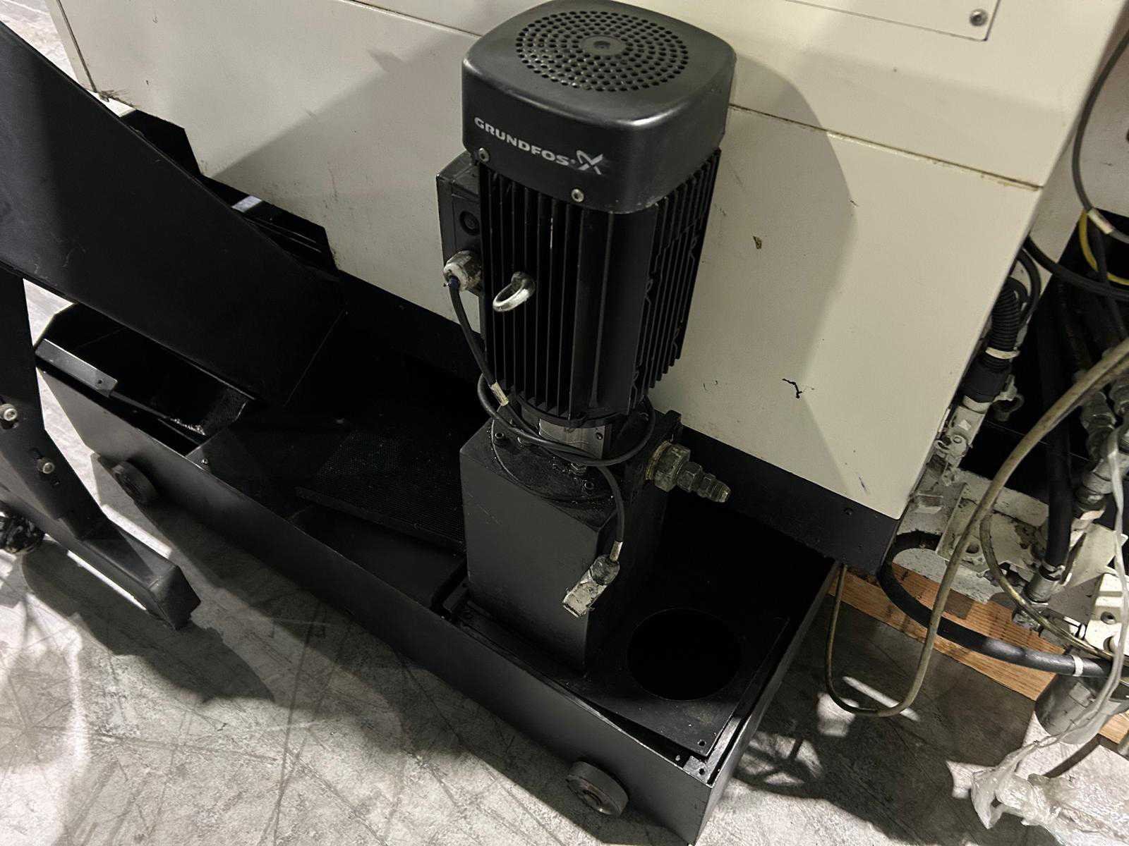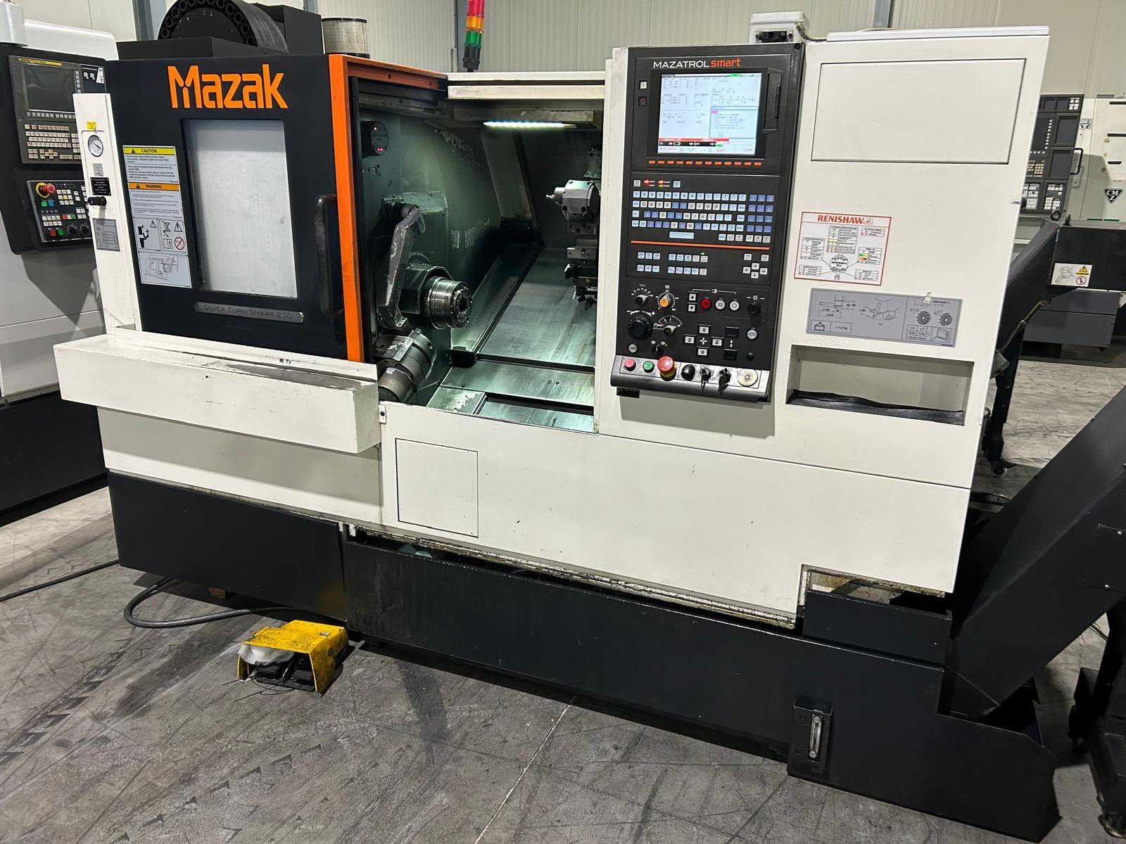 De machine is uitgerust met: - chiptransporteur - Renishaw probe systeem Merk: Mazak Type: Quick Turn Smart 200 Bouwjaar: 2014 Serienummer: 251044 Draai: 350mm Draailengte: 540mm Holle spil Ø: 65mm Snelheid tot n =: 5000rpm Aantal gereedschapwisselstations: 12 Koelmiddelpomp: true Spanentransporteur: true CNC-besturing, merk, type: Mazatrol Smart Motorvermogen (kW): 26kW Aansluiting: 400V Machinegewicht: 4410kg